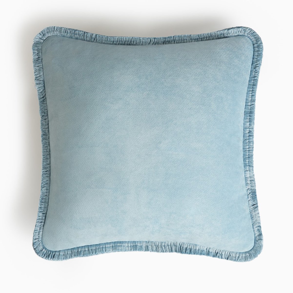 HAPPY PILLOW en azul claro con flecos en azul claro de Lorenza Briola para LO DECOR