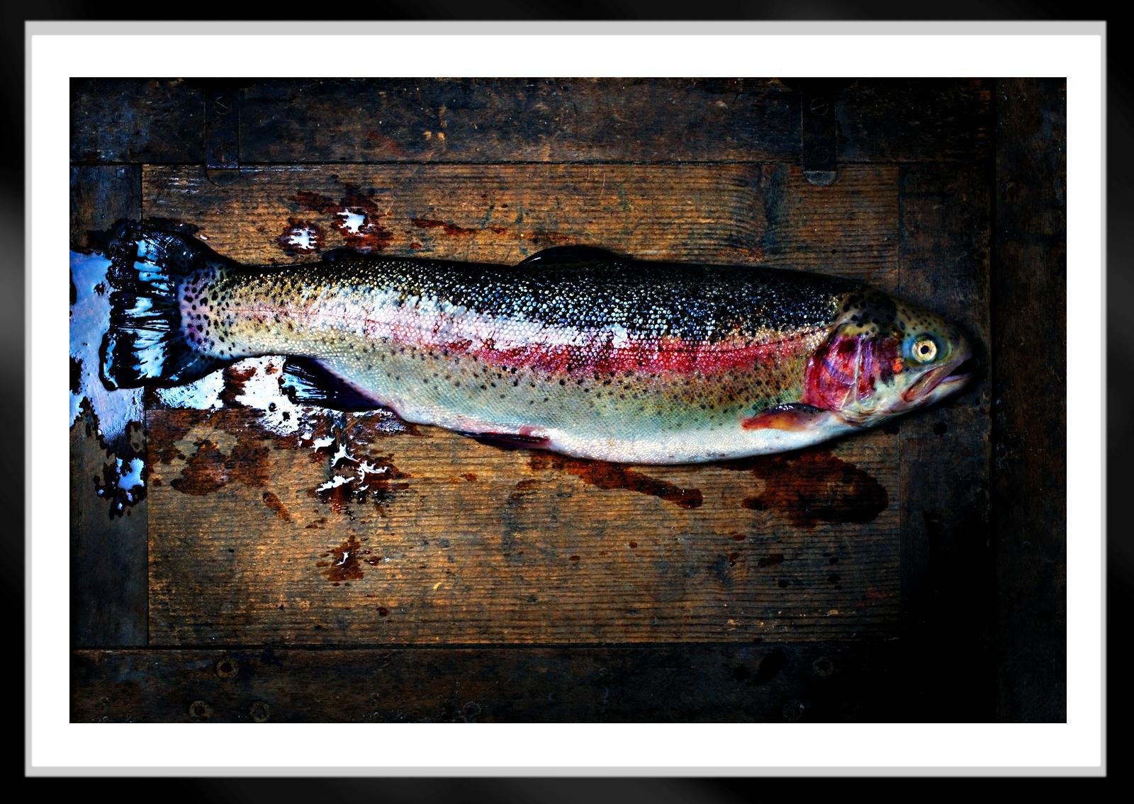 Trout ' - Signed limited edition archival pigment print - Edition of 5 This is an Archival Pigment print on fiber based paper ( Hahnemühle Photo Rag® Baryta 315 gsm , Acid- and lignin-free paper, Museum quality for highest age resistance and a popular alternative to analogue baryta paper). The inks used are also known for their longevity Signed + numbered by artist with certificate of authenticity , unframed Archival pigment print sizes : 35 x 54 cm / 13,78 x 21,26 in. - Edition of 5 50 x 77 cm / 19,68 x 30,31 in. - Edition of 5 75 x 115 cm / 29,53 x 45,27 in. - Edition of 5 Ian Sanderson (born 1951 Scotland, died 2020 Spain) was a Scottish photographer. He produced images over a 35 year career, and in recent years used archival techniques to produce his prints. For most of his career he worked as both a Commercial and Fine Art photographer, and during his last years concentrated on his personal imagery. Towards the end of his life journey, Ian was reviving two 19th century printing techniques, Platinum Palladium and Gum Bichromate ( one-of-a-kind pieces). This culminated in a large retrospective exhibition in Barcelona which was sponsored by the 'Nando and Elsa Peretti Foundation’. The Platinum and Palladium prints are particularly interesting as he printed them onto ‘vellum’, and bonded pure gold or silver to the back of the prints ( every print is therefore a unique and timeless piece of art). Ian created rare and customized pieces, and each piece was totally original and a “one-off”. Ian Sanderson was one of only a handful of artists worldwide producing this type of work. categories : Color Photography, 21st Century, Archival Pigment Print, Fish, Still Life, Nature, Animal
