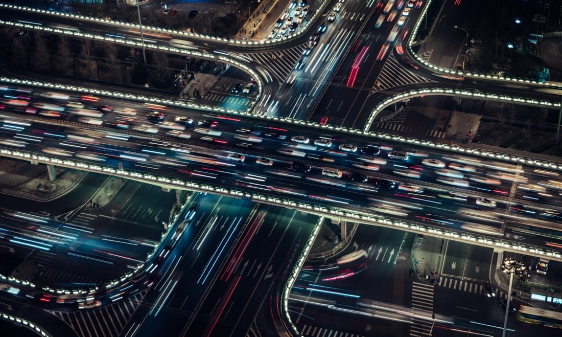 Imágenes de vista aérea, vista de drones del tráfico de la ciudad en la hora punta, fotografía