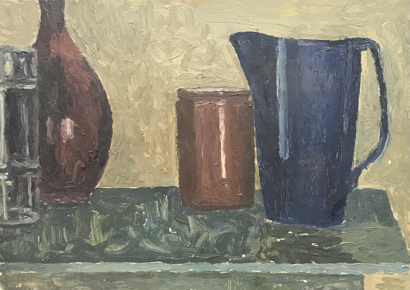 Isaac Charles Goetz, Garrafa, pot et brau, 1937, Óleo sobre cartón