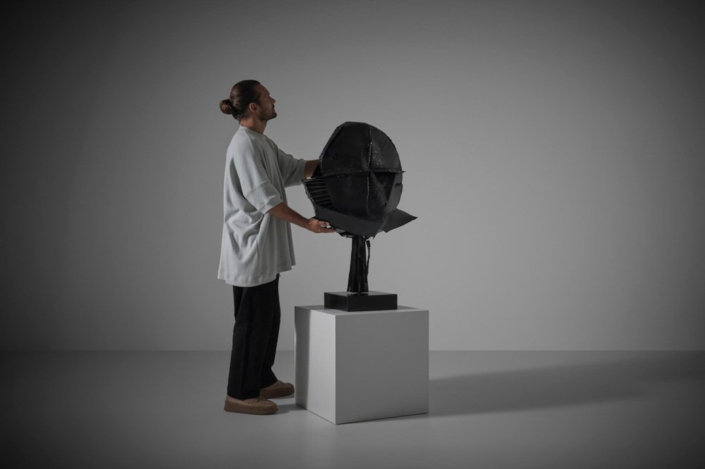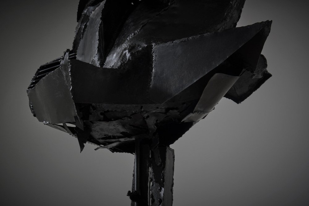 Abstract Metal Sculpture by Jacques Scheepens, The Netherlands 1960s. Scheepens studied at the Royal Academy of art in Den Bosch from 1948 until 1951, he practiced sculptures, paintings, drawings and objects. The sculpture is composed several in shape forced and hammered sheets and rods of metal welded together into this speactacular shape. The welding lines really divides the sculpture into different parts and underline its strong geometric appearance. The surface shows a nice textured surface which is giving the sculpture a unique character. The sculpture stands on a square metal base (loose), beautiful from every angle. The sculpture comes from the art collection of the city of Eindhoven, signed at the bottom. In excellent original condition.