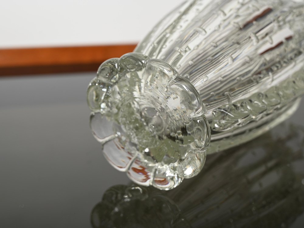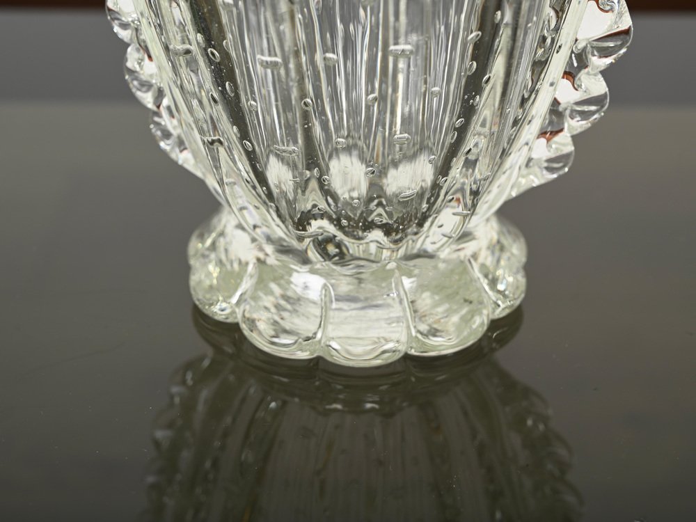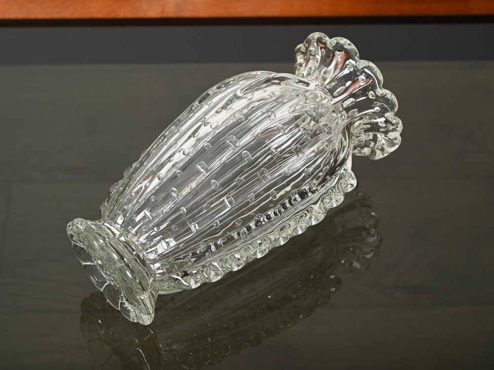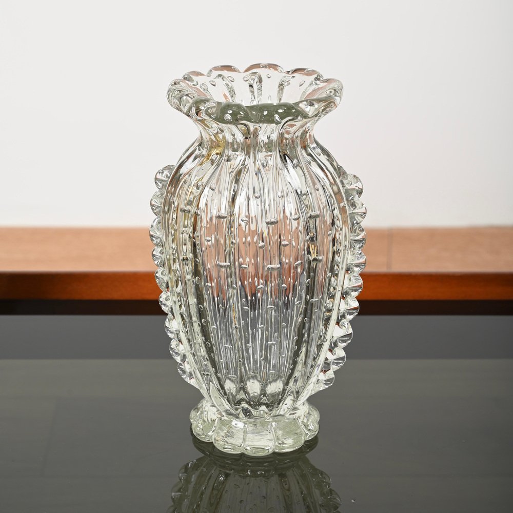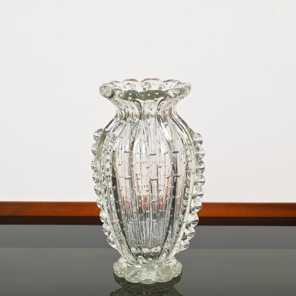 Magnificent rostrato and "bullicante" mouth-blown crystal Murano glass vase made by Ercole Barovier in Italy during the 1950s. In spectacular condition, not missing a single spike, with no chips or cracks, making it a museum piece. This fabulous floral decorative Murano vase is simply spectacular thanks to the pristine condition and mind-blowing quality. This gorgeous vase will match surprisingly with any floral arrangement. An incredible Italian masterpiece. A unique and outstanding vase, perfect to complete a Mid-Century Modern project.