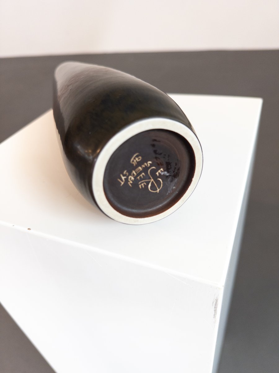 Born in 1920 in Mariestad, Sweden, Stålhane began working at Rörstrand in 1939 as a decorative painter, assisting Danish-Finnish ceramic artist, designer, and sculptor Gunnar Nylund (1904-1997). During this time, Stålhane decorated various ceramic pieces, most notably Nylund’s Flambé range (1939s), quickly establishing himself as a talented ceramic artist. Inspired by the desire for new products during the postwar economic boom, Stålhane went from being a talented decorator to an exceptional ceramic artist.