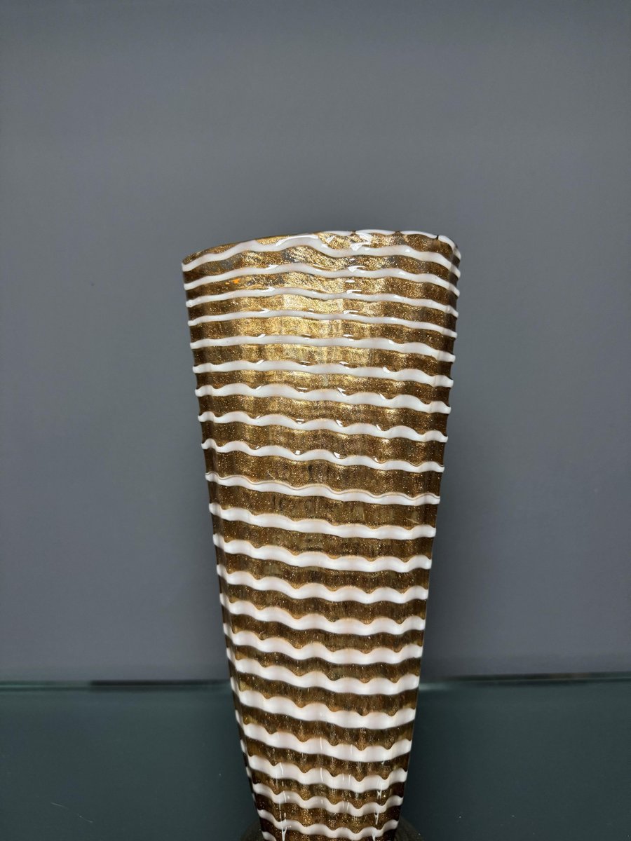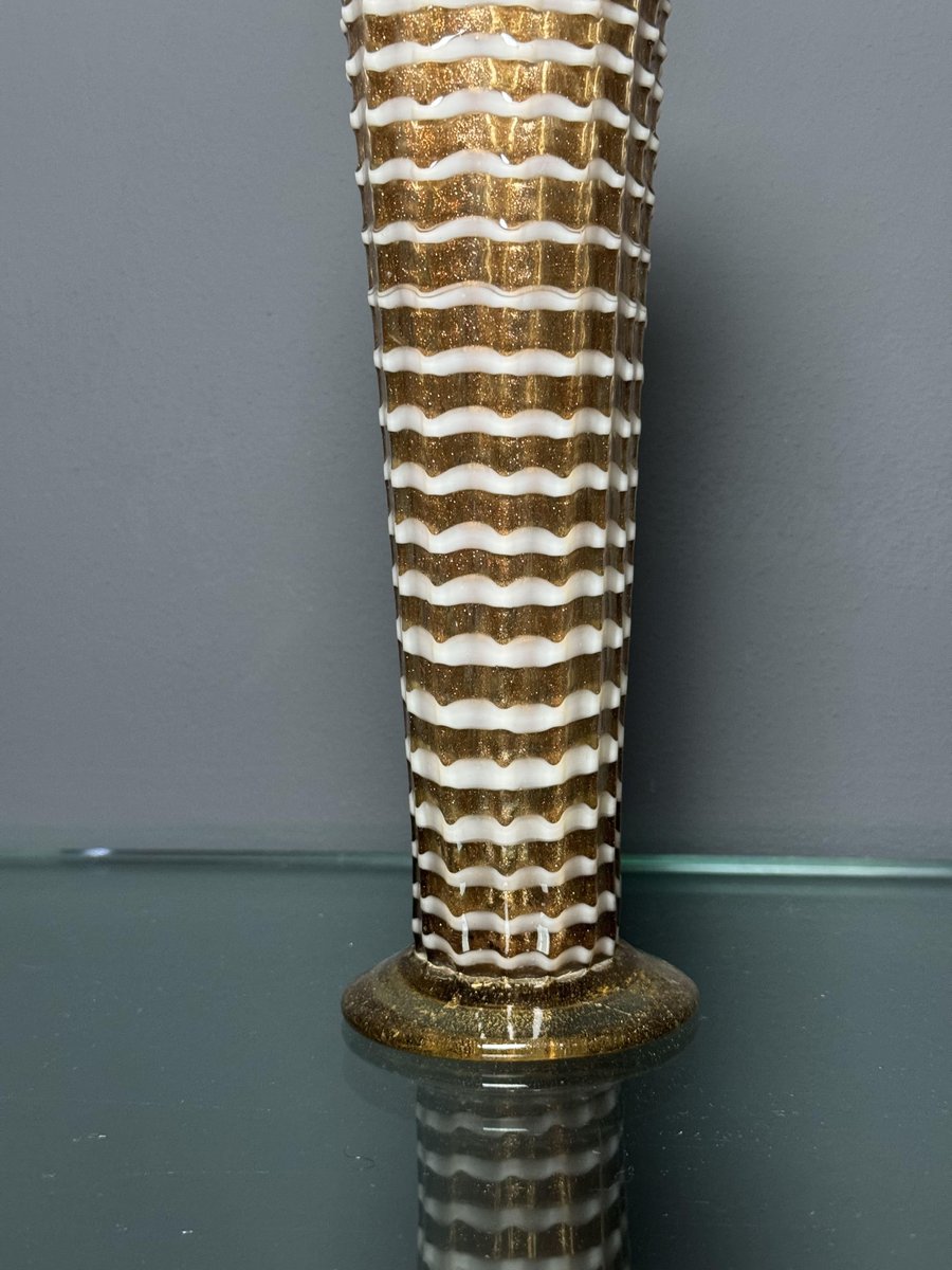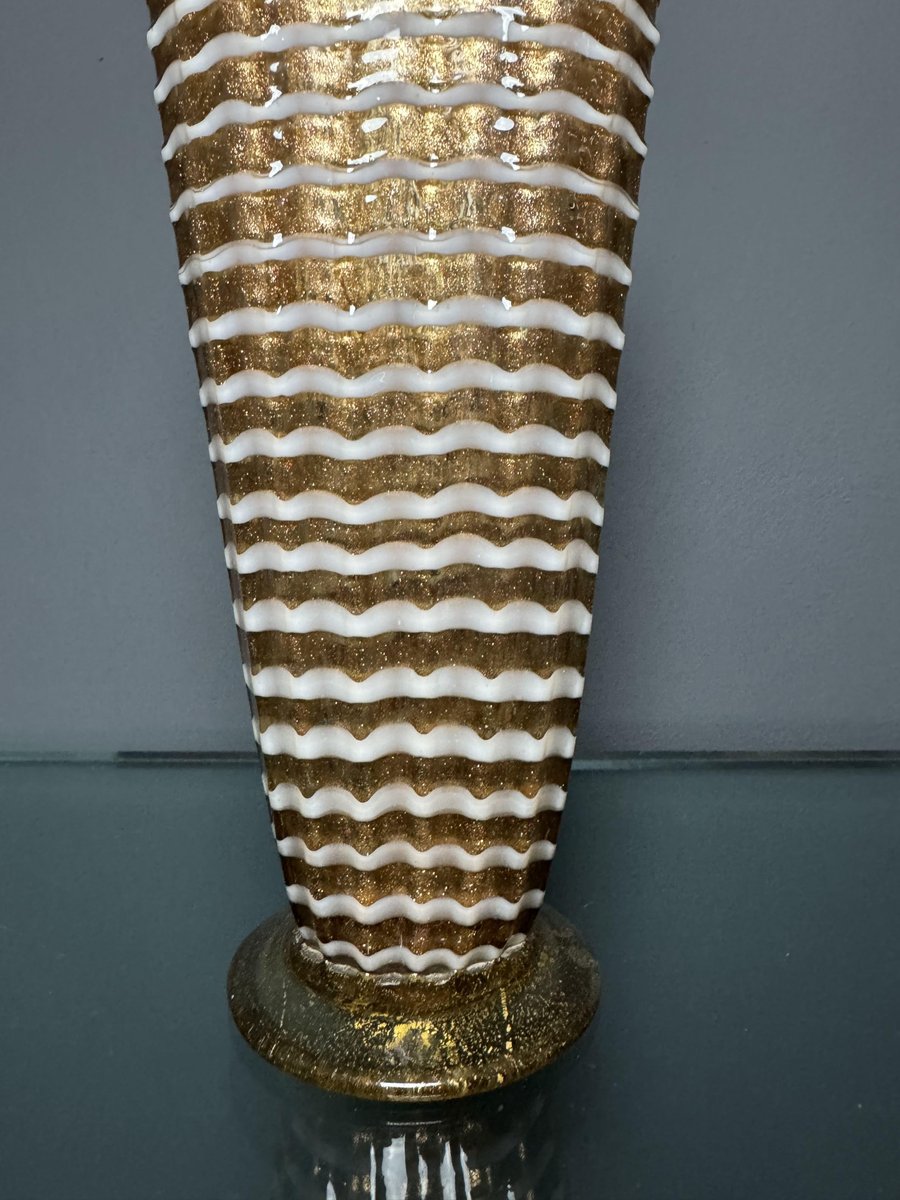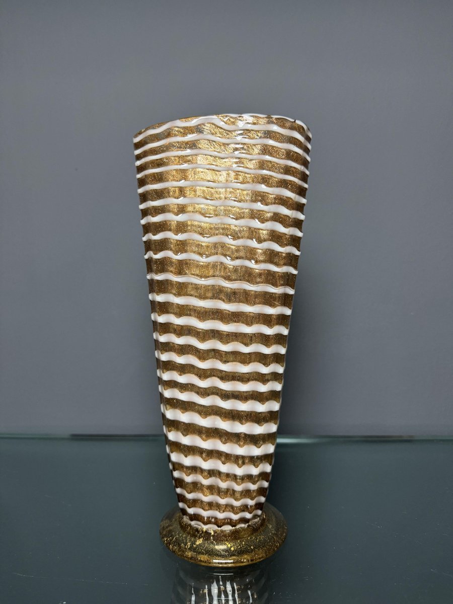 Jarrón de cristal de Murano dorado con decoración Lattimo de Ercole Barovier para Barovier & Toso, años 50