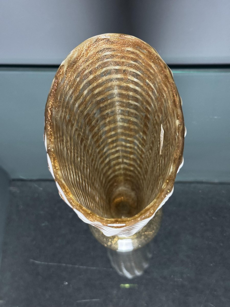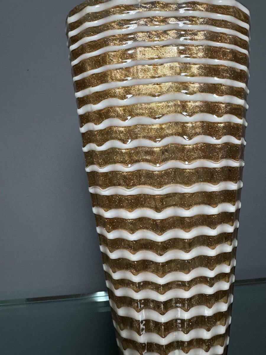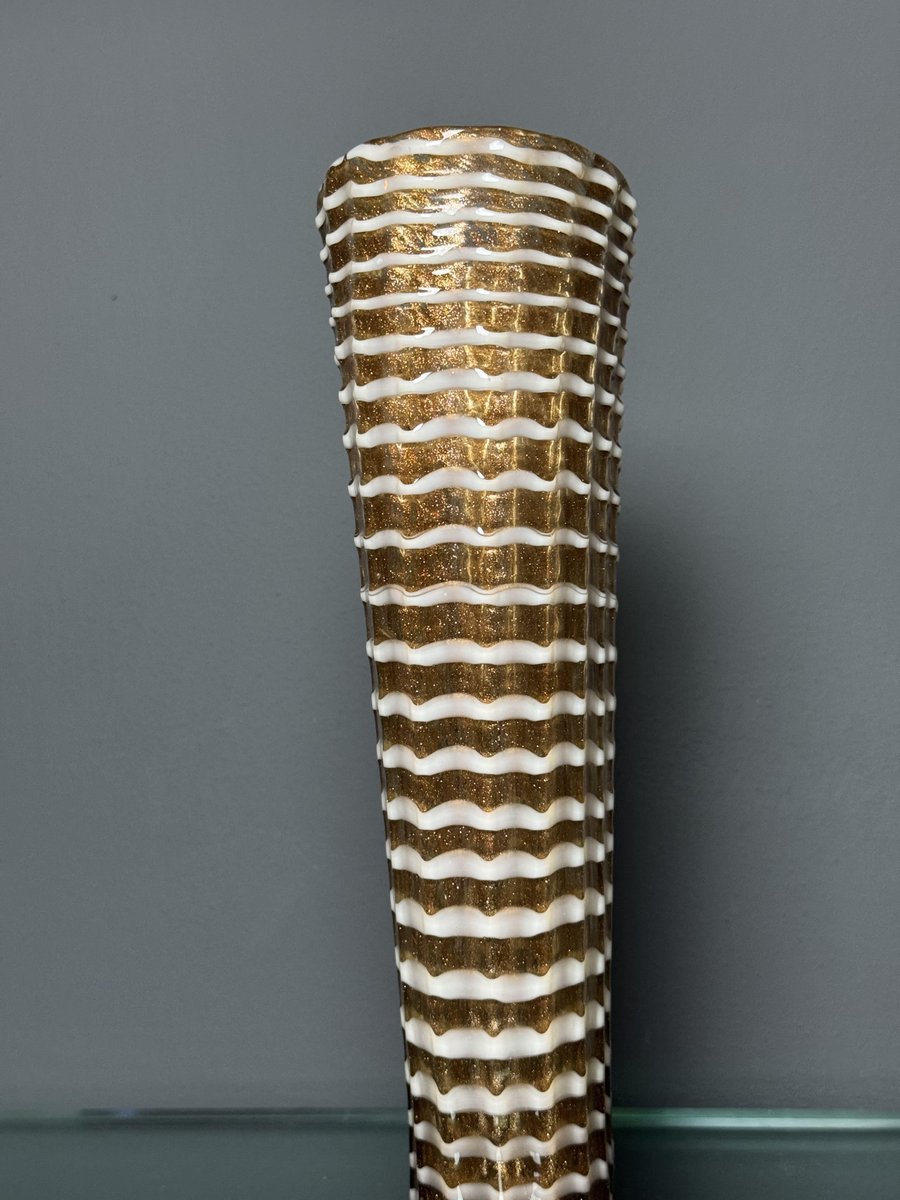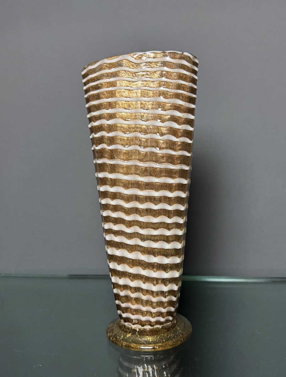 Jarrón de cristal de Murano dorado con decoración Lattimo de Ercole Barovier para Barovier & Toso, años 50