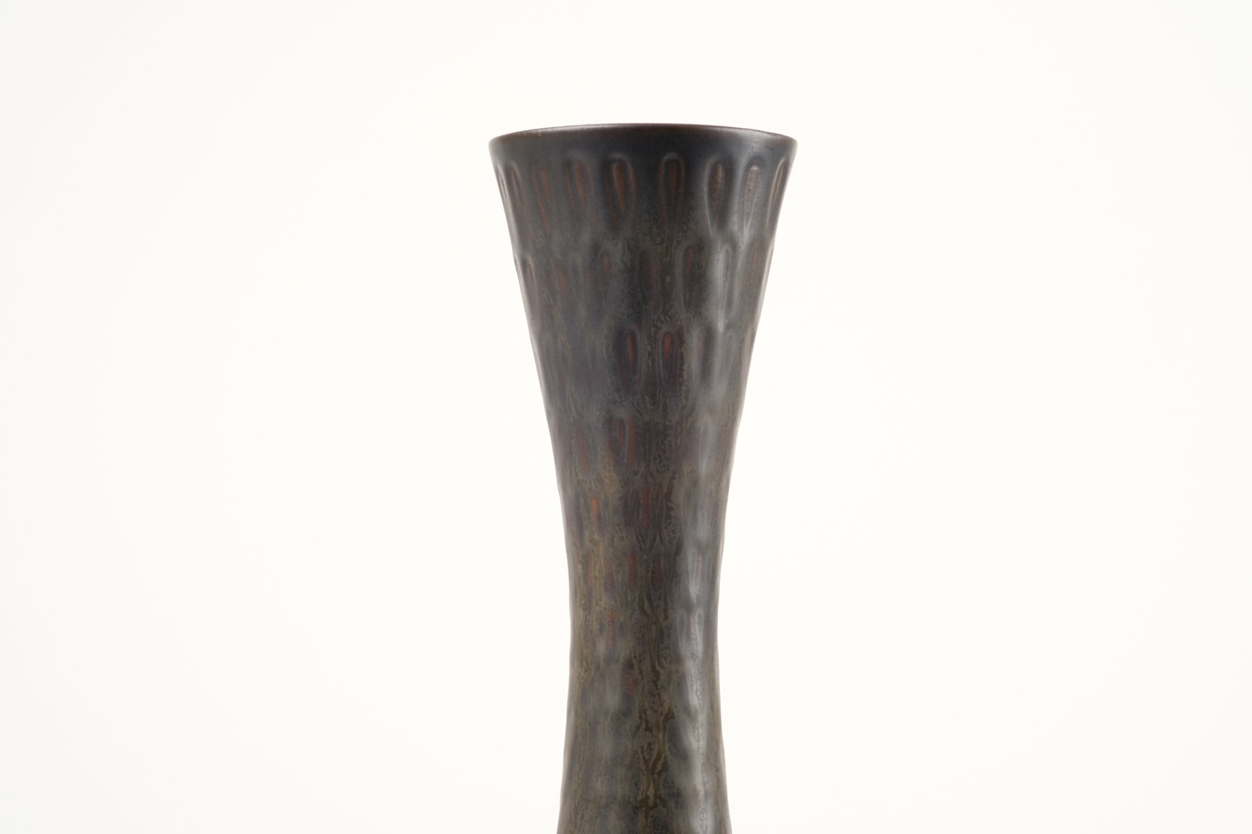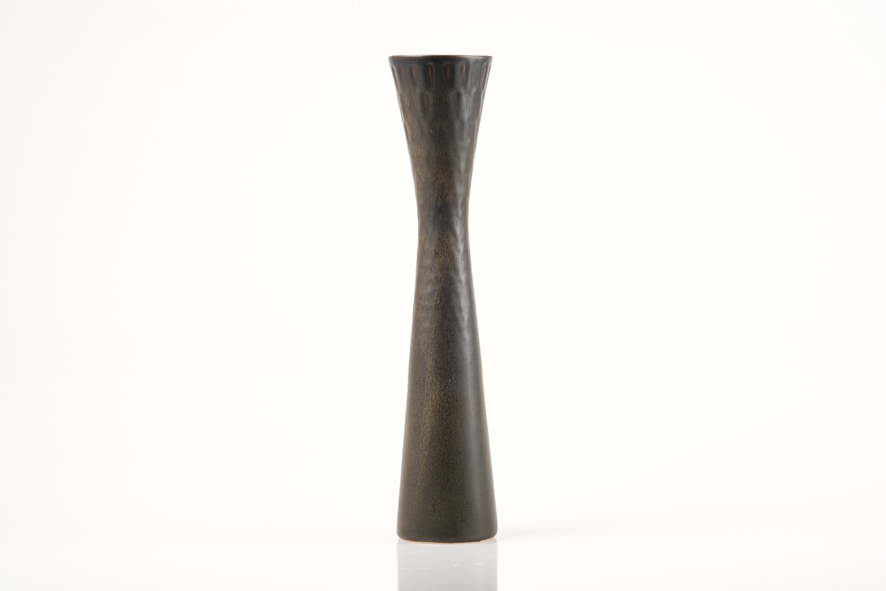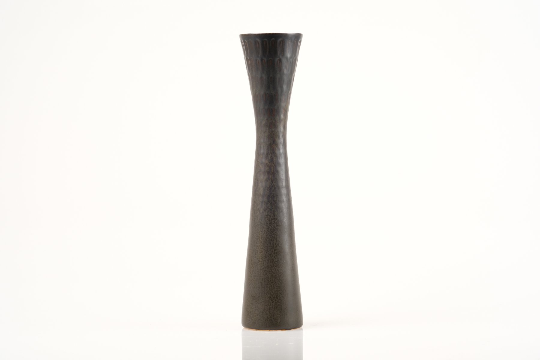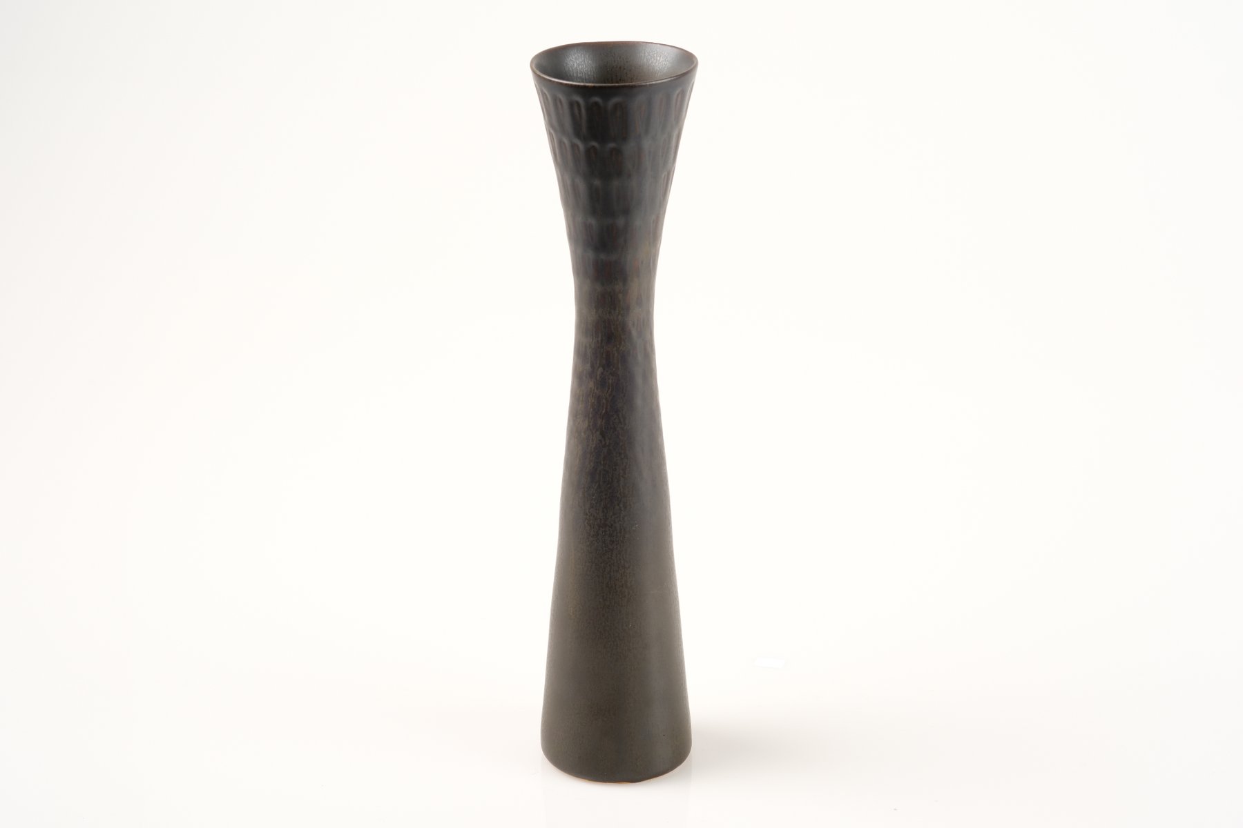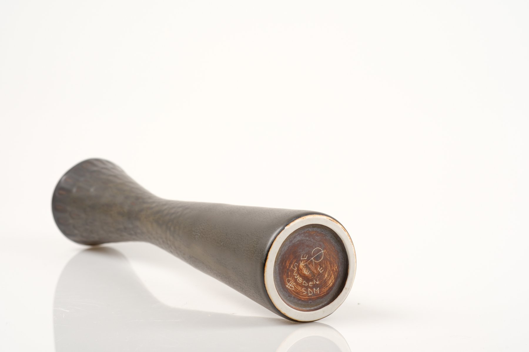 In 1960, Stålhane unveiled a new collection at Stockholm’s Galerie Blanche. Featuring dark stoneware pieces made from local clays, this collection represented a bold departure from the soft, restrained shapes of the 1950s. It has since been praised for its precient aesthetic that would influence the look of ceramics for more than a decade.