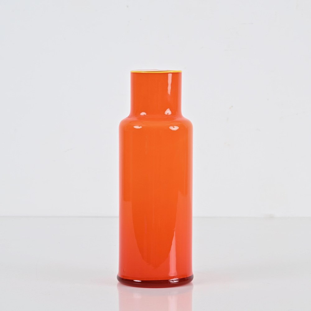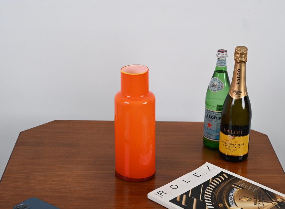 Jarrón Mid-Century de cristal de Murano naranja, Italia, años 70