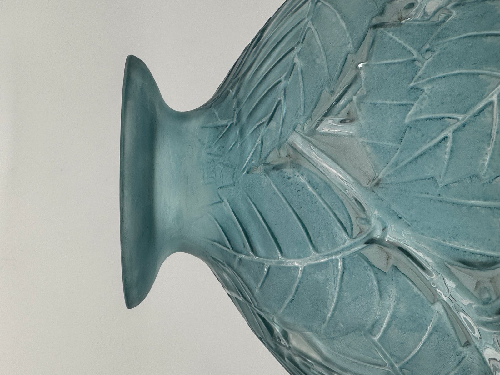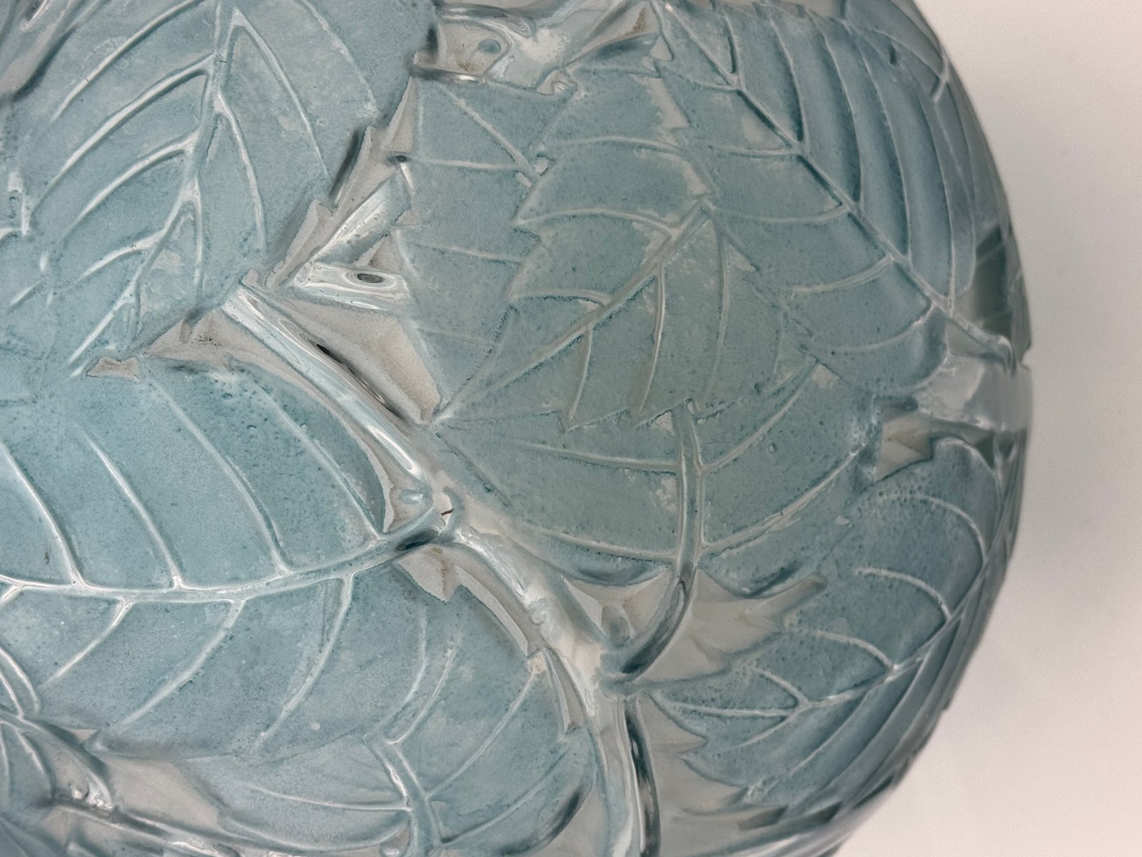 From the 1910s onward, Lalique’s aesthetic moved away from Art Nouveau and transitioned into Art Deco. In 1921, Lalique opened his own glass factory at Wingen-sur-Moder in the Alsace region, where he discarded the then-passé brightly-colored jewelry he was famous for, reinventing himself completely. Many of Lalique’s glass pieces were subject to post-manufacture touches as well—such as patinating, enameling, and frosting, which led to truly unique works of art. Over the next decade, Lalique created vases—most well-known being his Cire Perdue vases (1900-1933); automobile hood ornaments—such as Cinq Chevaux for the 5 CV Citroën (1925); the interior of the Orient Express Railroad dining cars (1927); and the cascading chandeliers in the first-class dining rooms of the Normandie ocean-liner (1935). Lalique’s designs for these luxurious, yet technologically advanced projects were hallmarks of the exuberant Art Deco period.