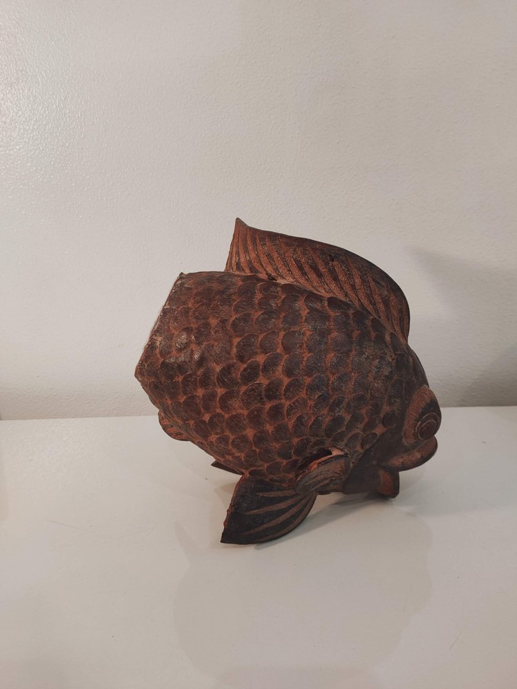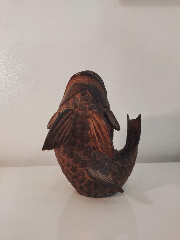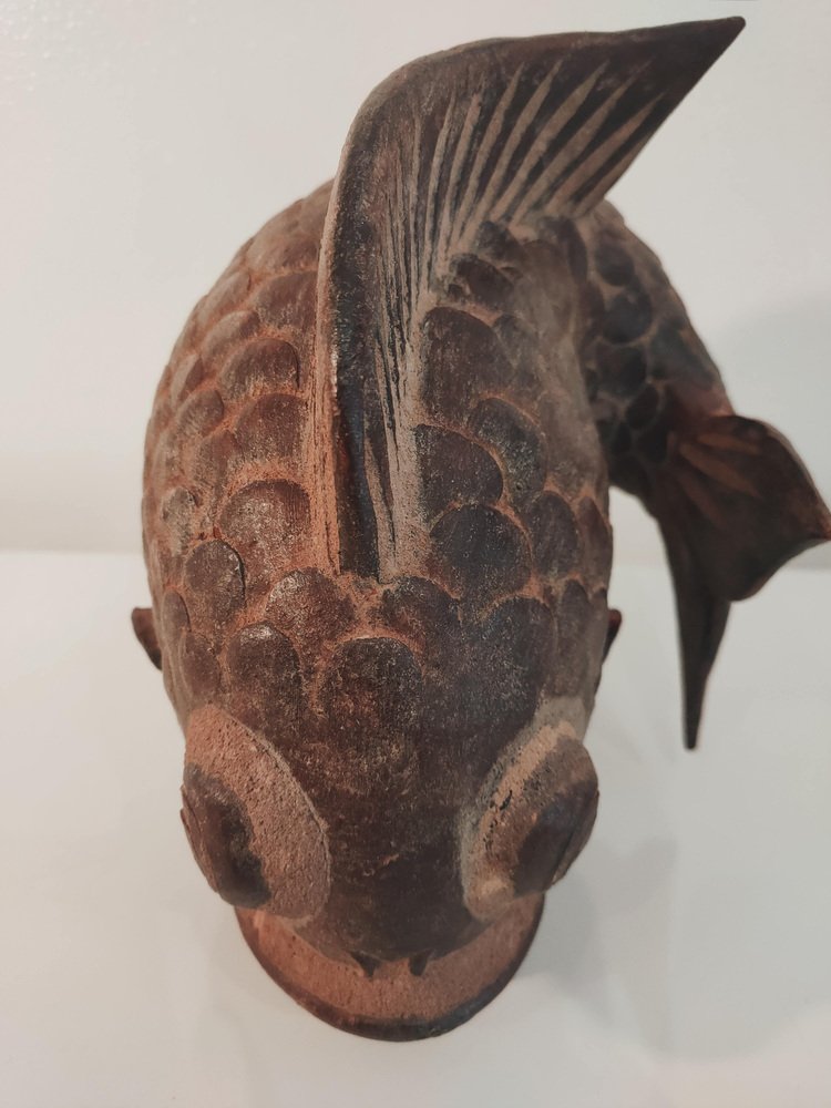 Jarrón o escultura de pez koi asiático vintage de terracota, años 60