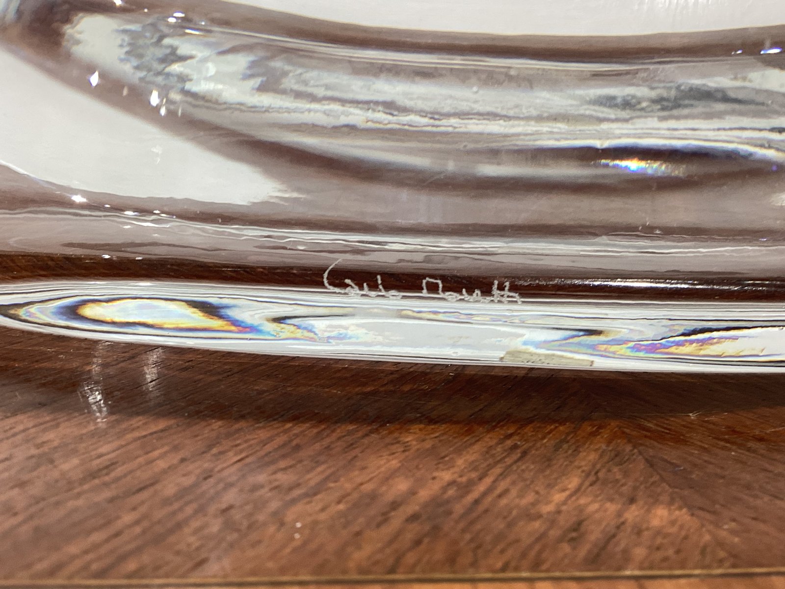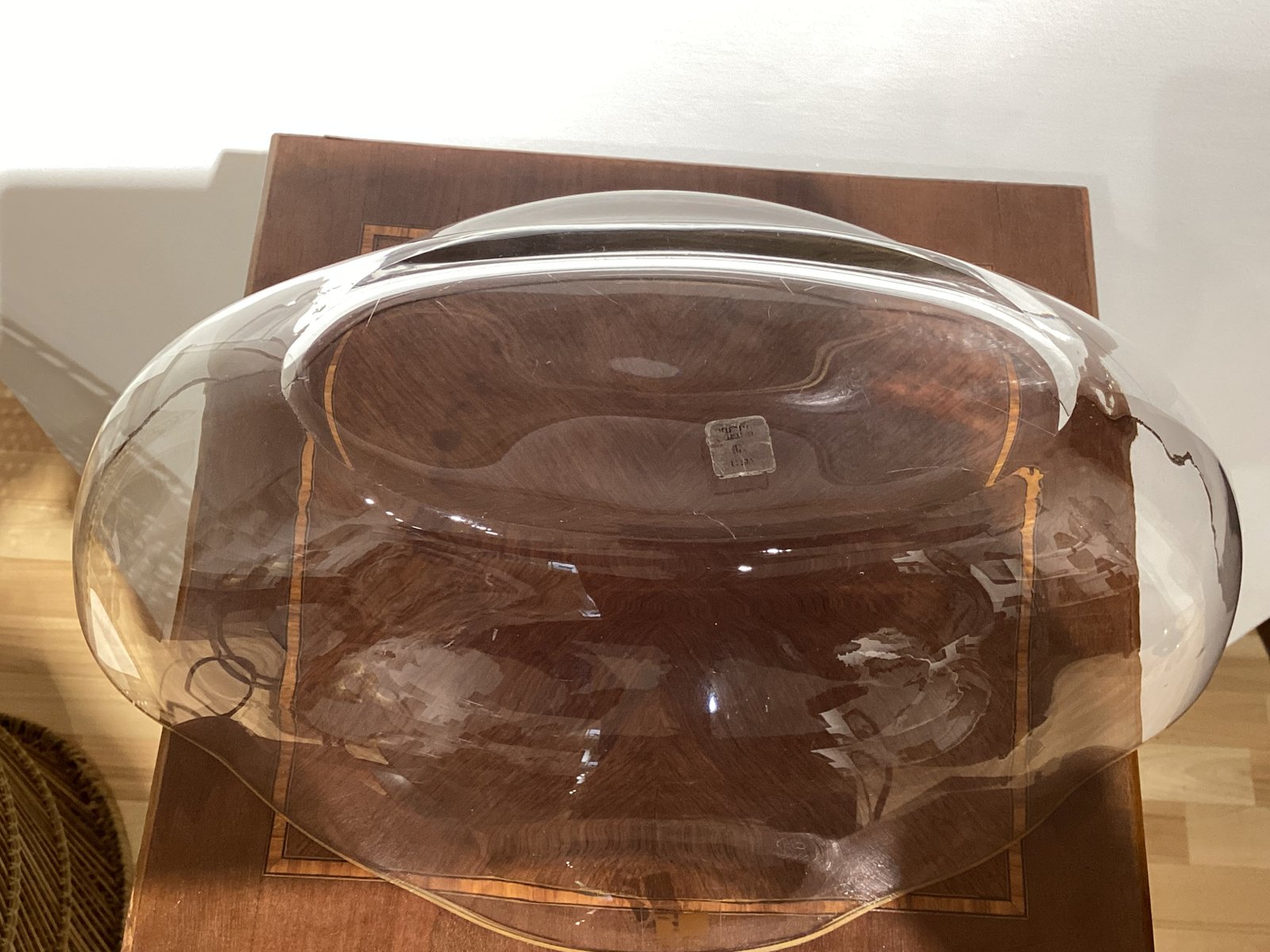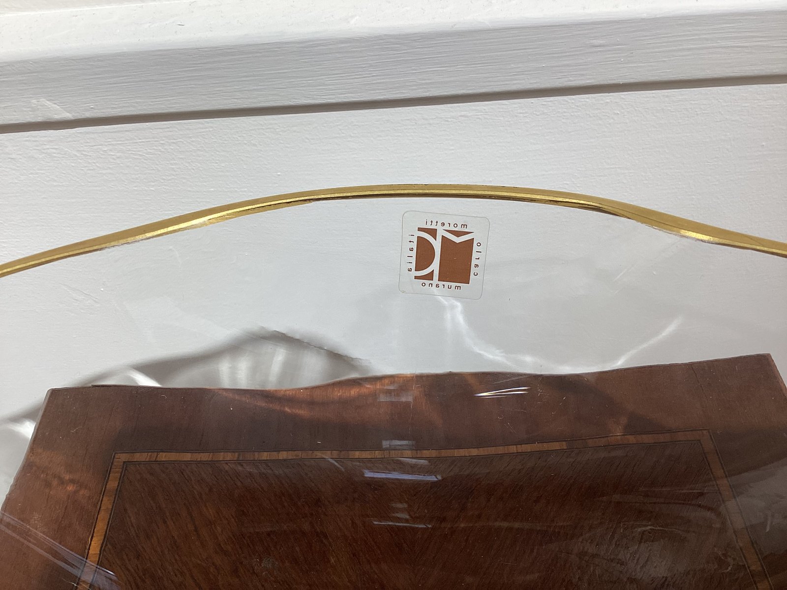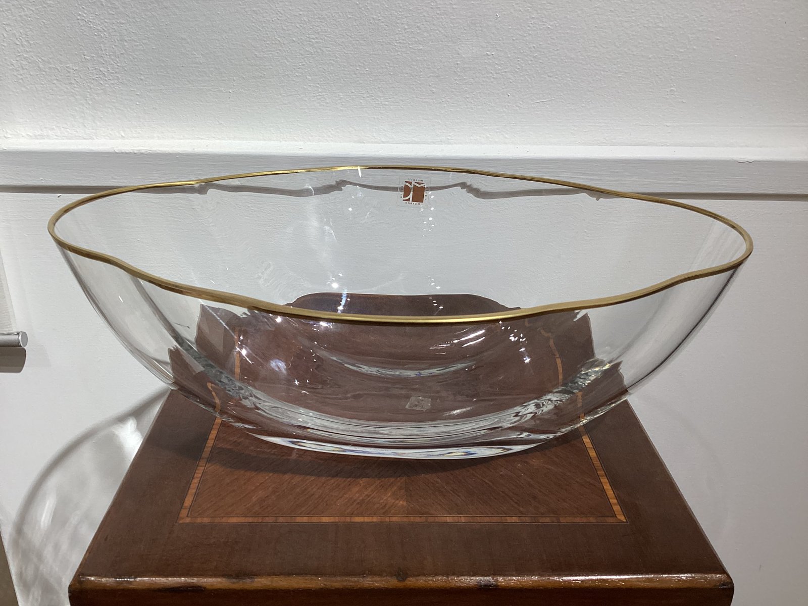 Jarrón para centro de mesa de cristal de Murano claro con borde dorado de Carlo Moretti, años 80