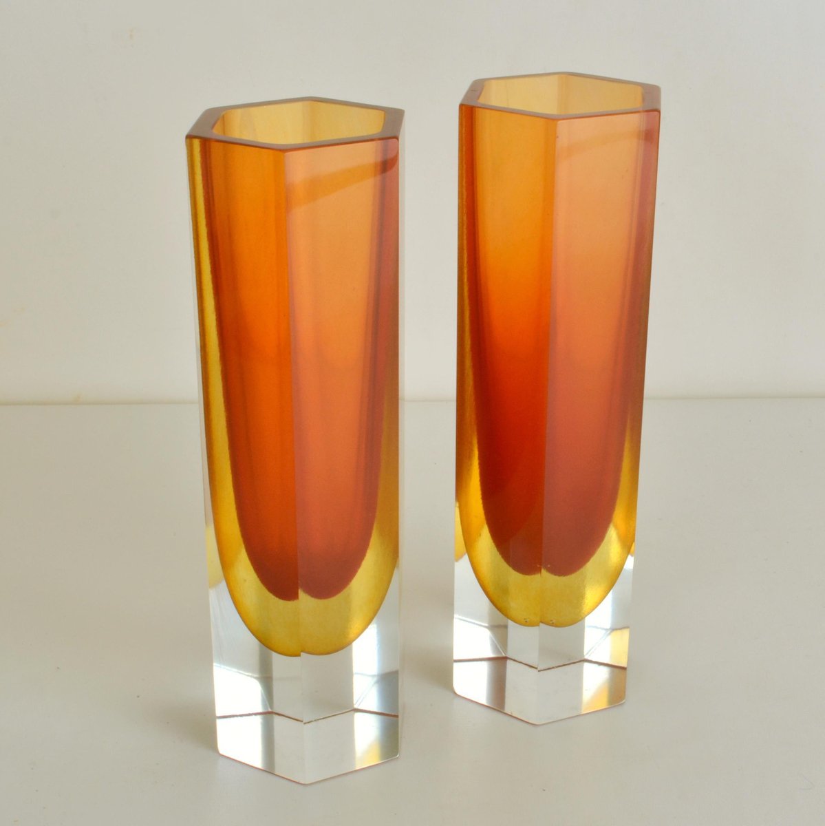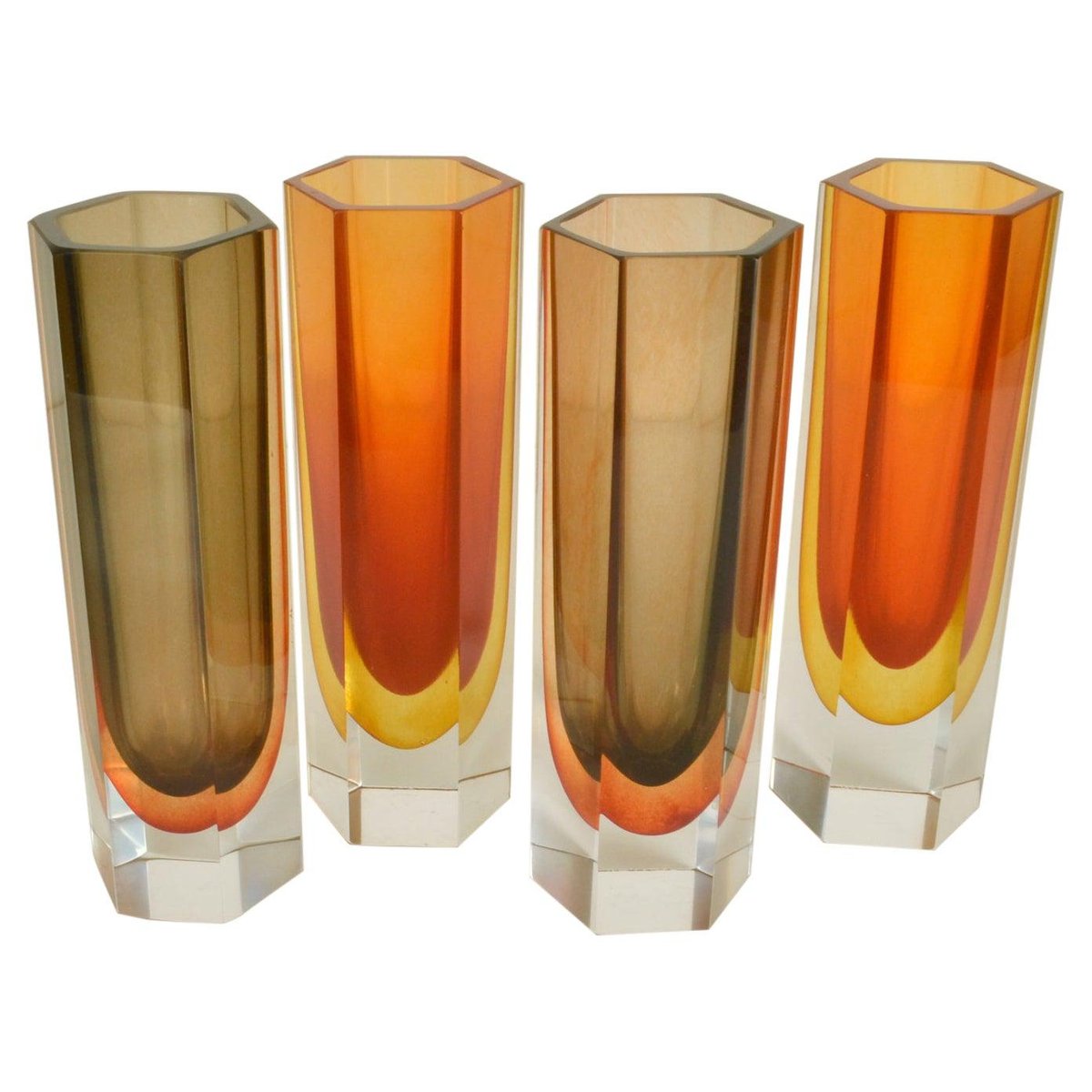 Jarrones de vidrio facetado. Juego de 4