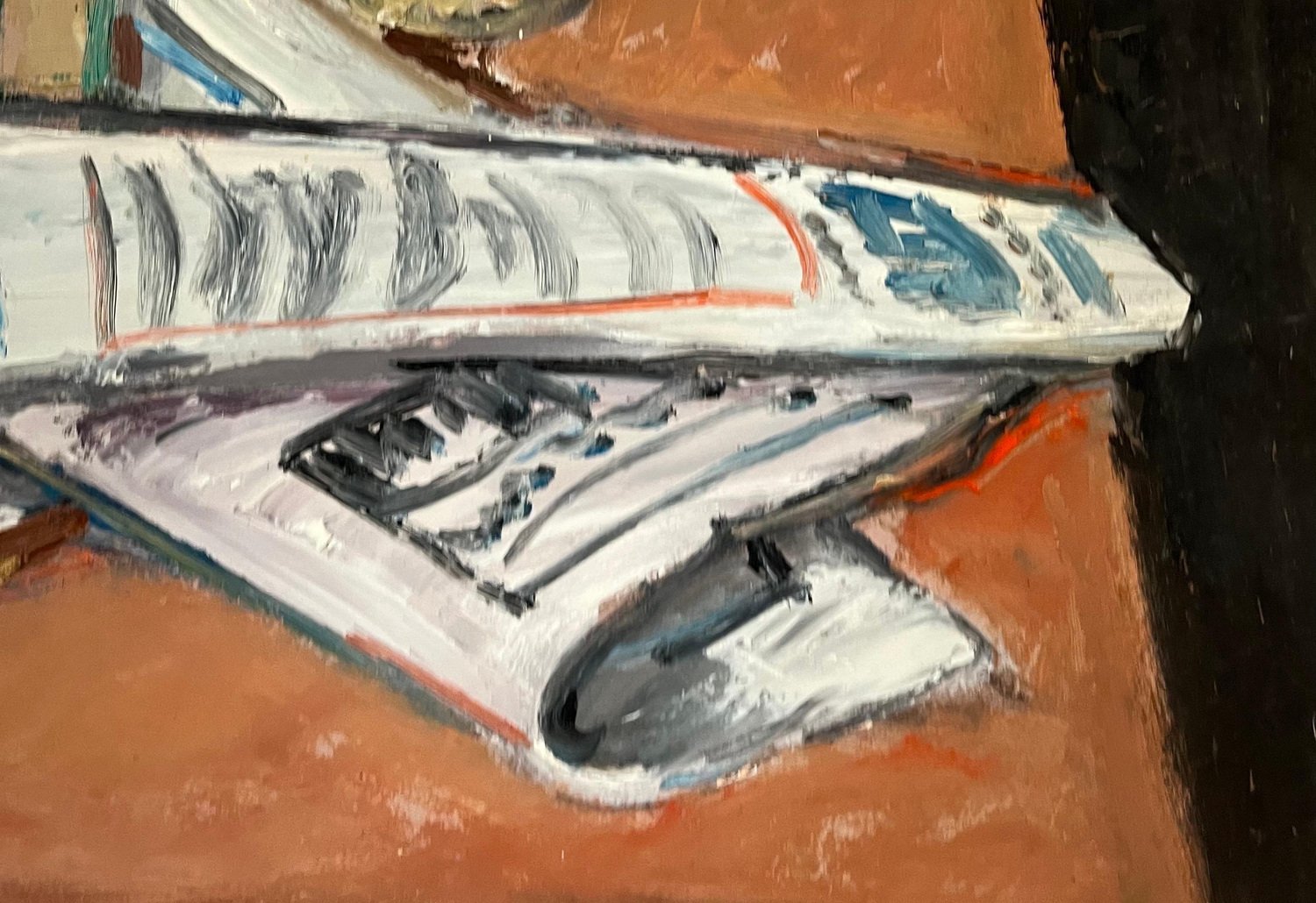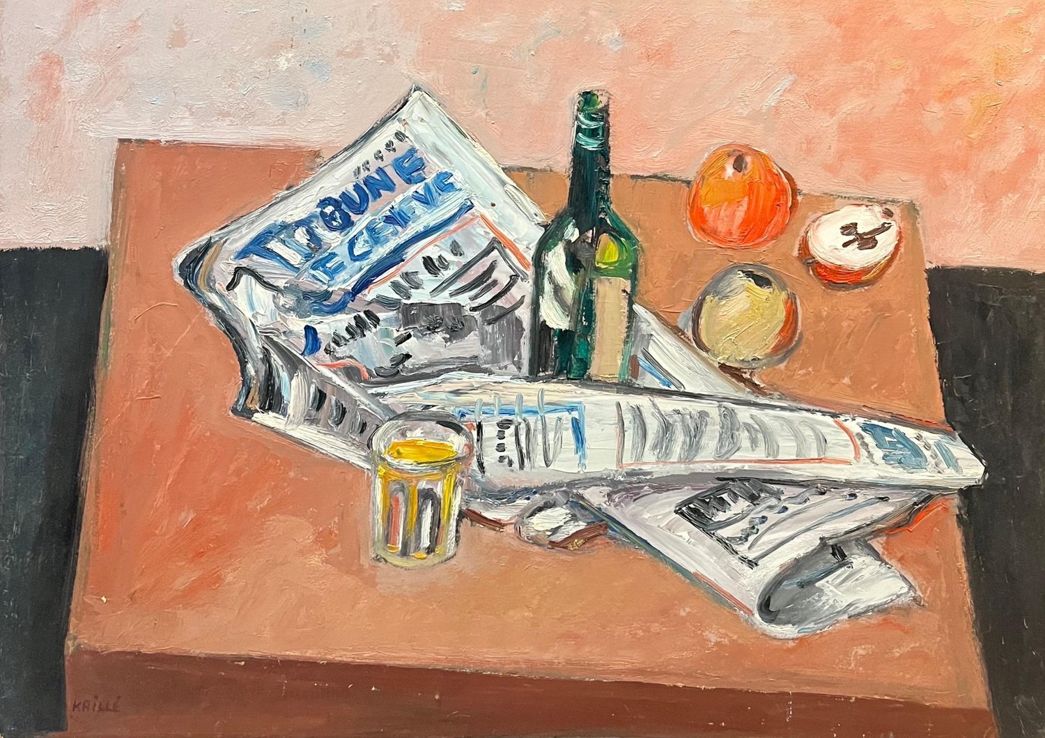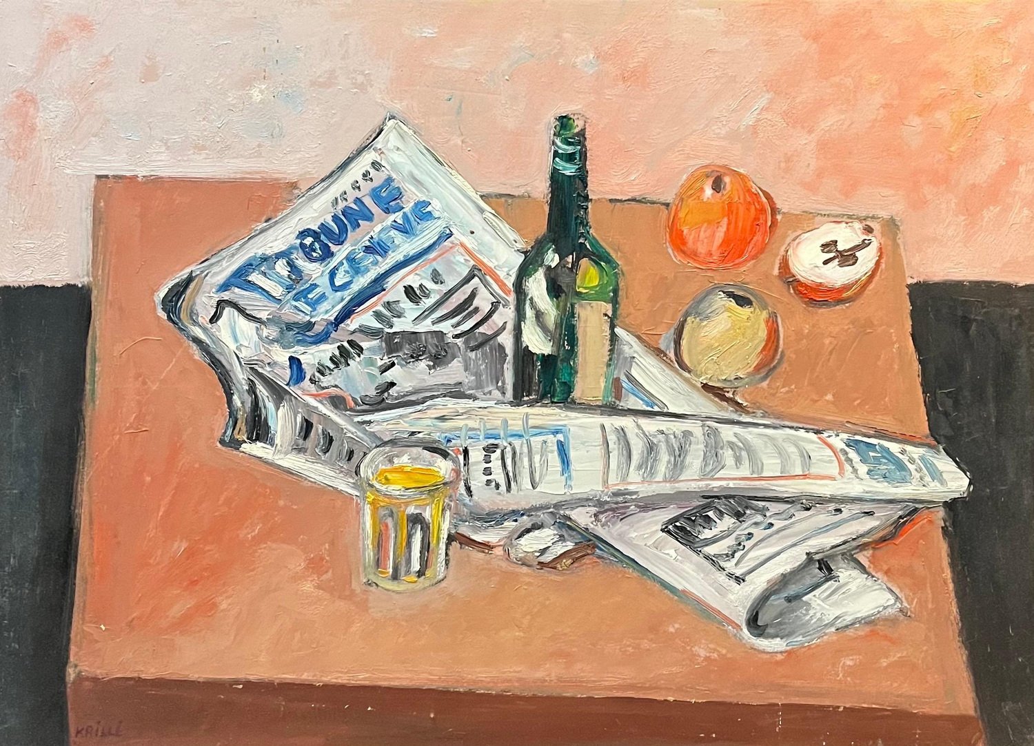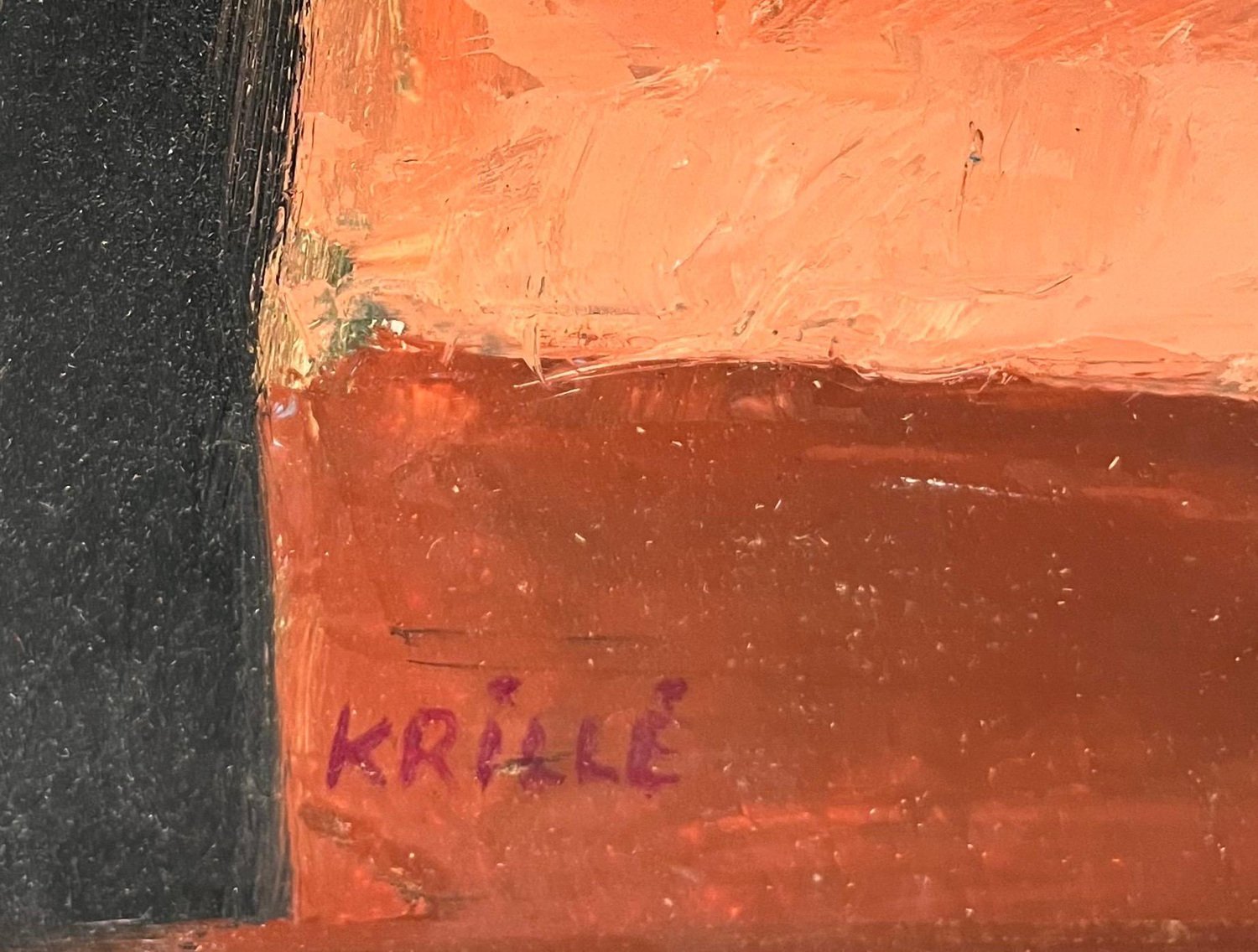 Jean Krillé’s paintings are known for their expressive use of color and dynamic, abstract forms, blending realism with abstraction in his depictions of nature. His landscapes often feature dramatic skies, with swirling clouds and sweeping brushstrokes that convey a sense of movement and energy. The use of vibrant palettes, ranging from cool blues to warm reds, varies from painting to painting, giving each piece a distinct emotional tone. The lower sections of his works typically suggest natural elements like trees, hills, or water, rendered in darker, more grounded hues. This contrast between the earth and sky creates a sense of balance, while also highlighting the tension and beauty of nature. Krillé’s art invites the viewer to experience the emotional power of natural landscapes in constant flux.