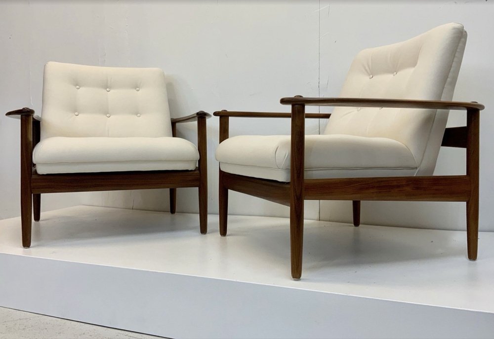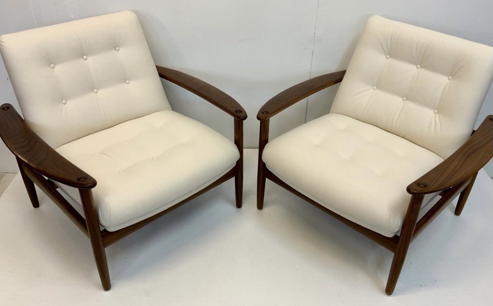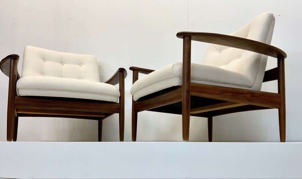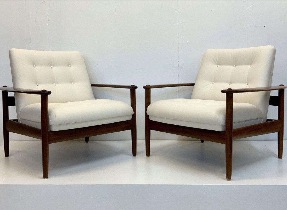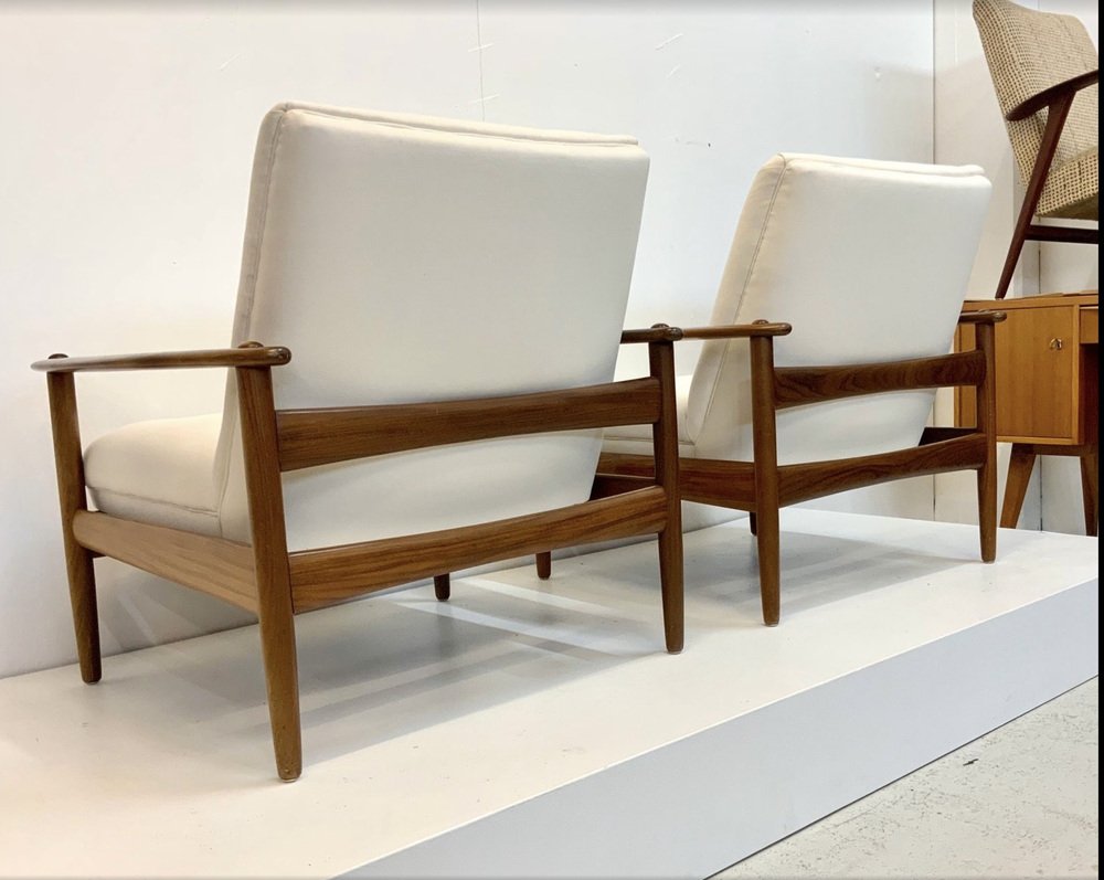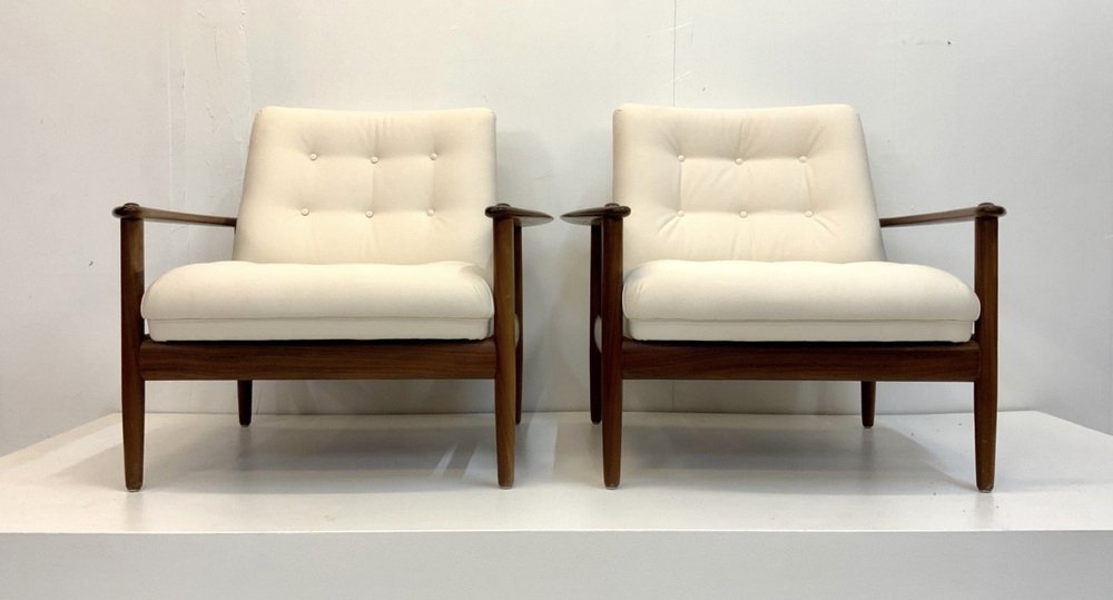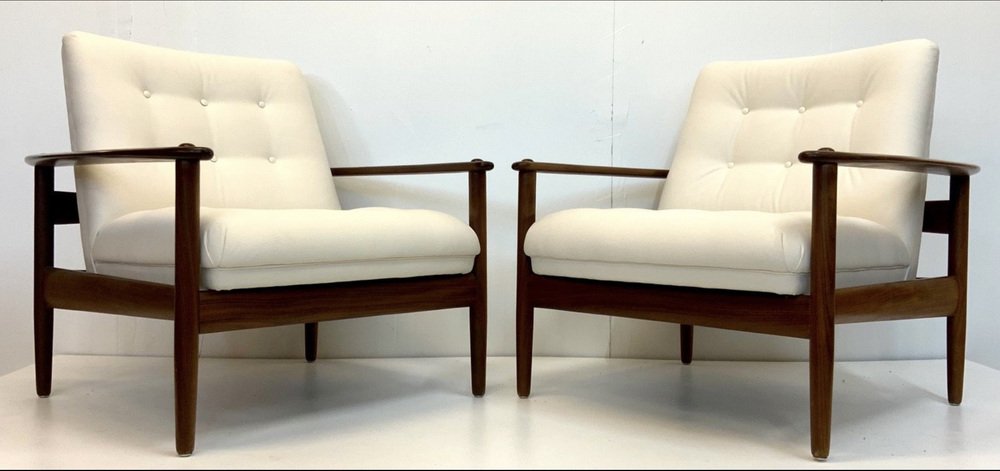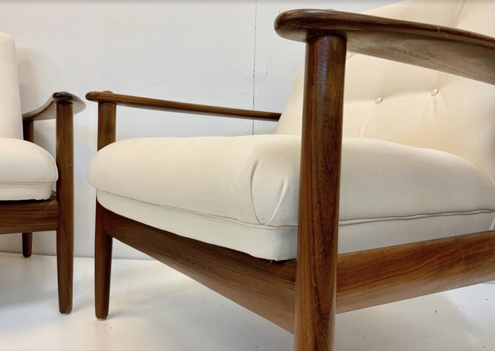 The armchairs are located in more than good, very nice and well-kept, such as part-restored vintage state, with non-serious, usual, age-related traces on the wooden surface: like some smaller surface scratches, few smaller notches / verses (mostly angular) and occasionally Age/ and usage-related color disorders. As always, the wooden surface was polished and treated with wood care.