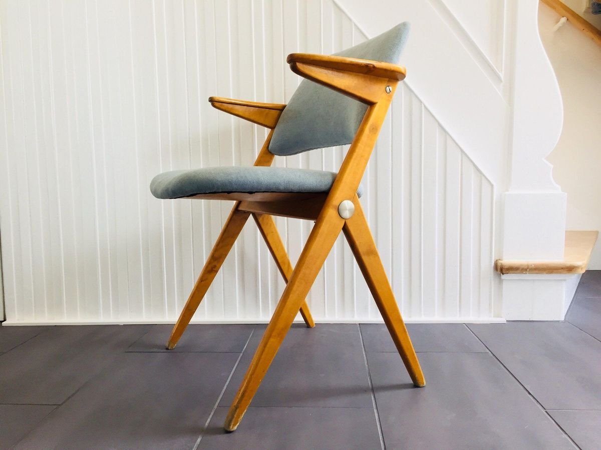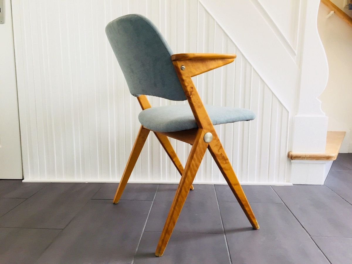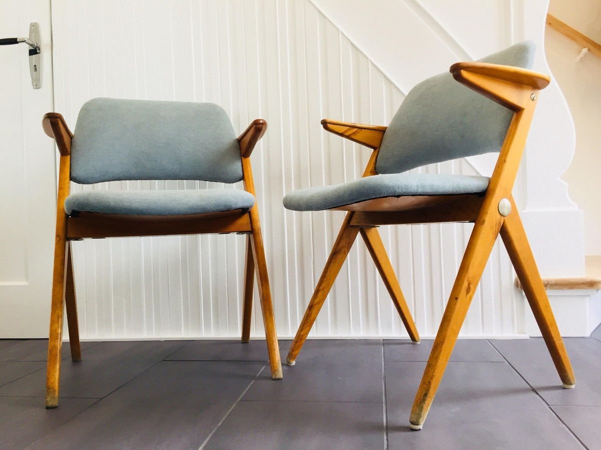Original 50s 60s! Made in Sweden! Ultra Exclusive! New related! 2x beautiful, ultra rare and original mid century chairs directly from Sweden into your STUGA! Two great retro armrest chairs of the ''Triva'' series in original condition. Extremely rare and hardly ever found in Germany! Therefore here now the unique opportunity... These wonderful chairs were manufactured in the 1950s by designer Bengt Ruda for the Nordiska companyt and today represent absolute design classics of the Scandinavian, especially the Swedish mid-century design. Similar to the design icons of the building house, their designs were groundbreaking for the coming decades. The material of the chairs is lacquered, solid and beautifully marbled beech wood with newly-upholstered mint green-light blue seat surfaces. Overall very stable and super cozy. Perfect design paired with optimum utility value. Really unbelievable great chairs that complement your STUGA perfectly. Fit great for Danish teak furniture and the straight forms of the 50s and 60s. Height approx. 74 cm Seat height approx. 45 cm Width about 56 cm Traces of use on the wood, especially on the legs, are naturally present.