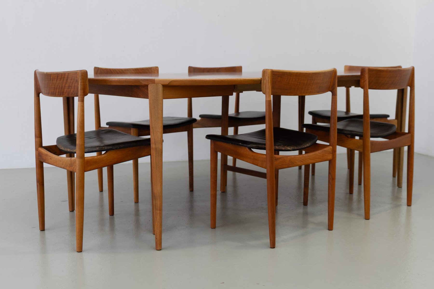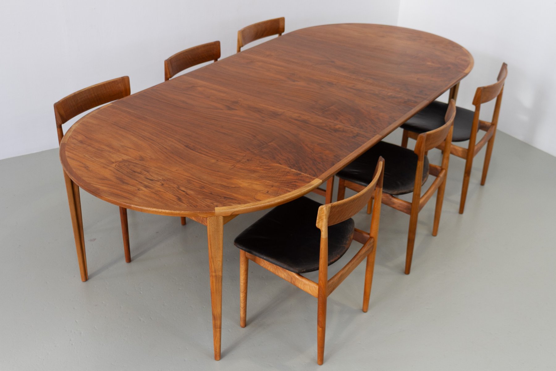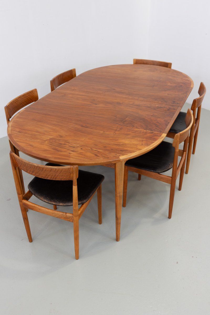 Conjunto de comedor danés de nogal diseñado por Henry Rosengren Hansen para Brande Møbelfabrik/Møbelindustri, década de 1960.