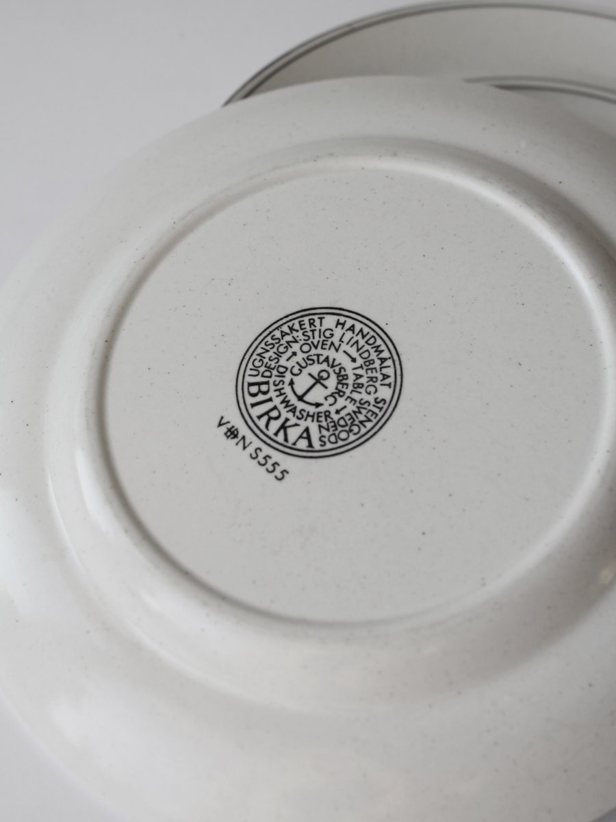 Juego de platos Birka de gres de Stig Lindberg para Gustavsberg, años 60. Juego de 6