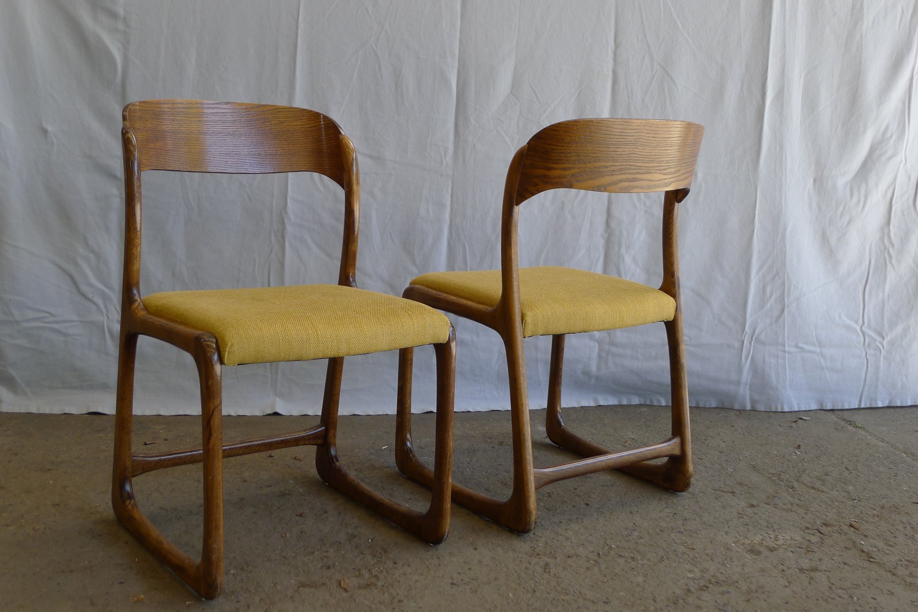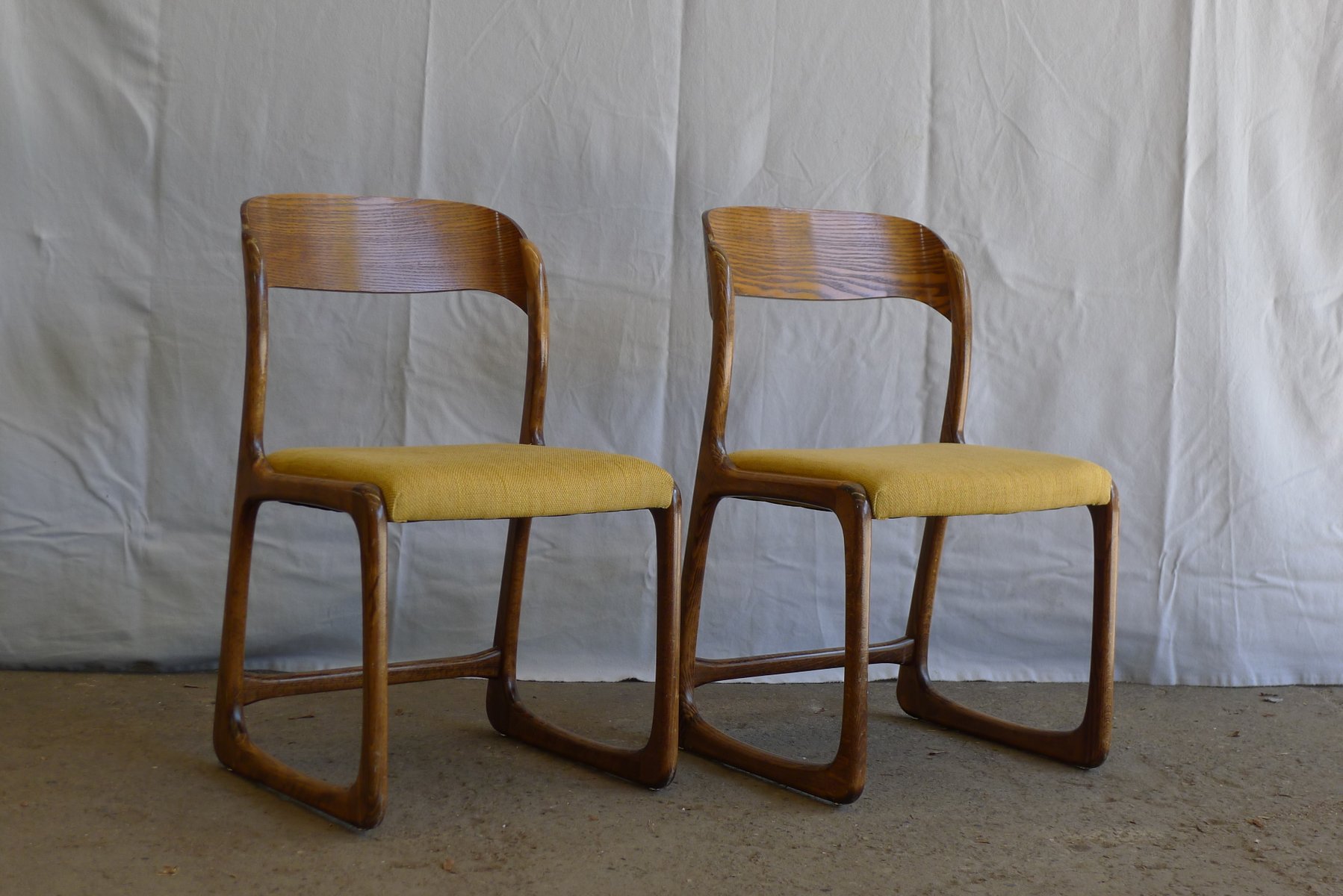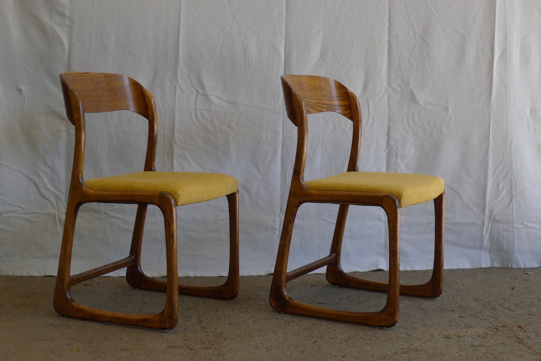 Juego de sillas de comedor Traineau o trineo francesas vintage de fresno de Emile & Walter Baumann, años 60