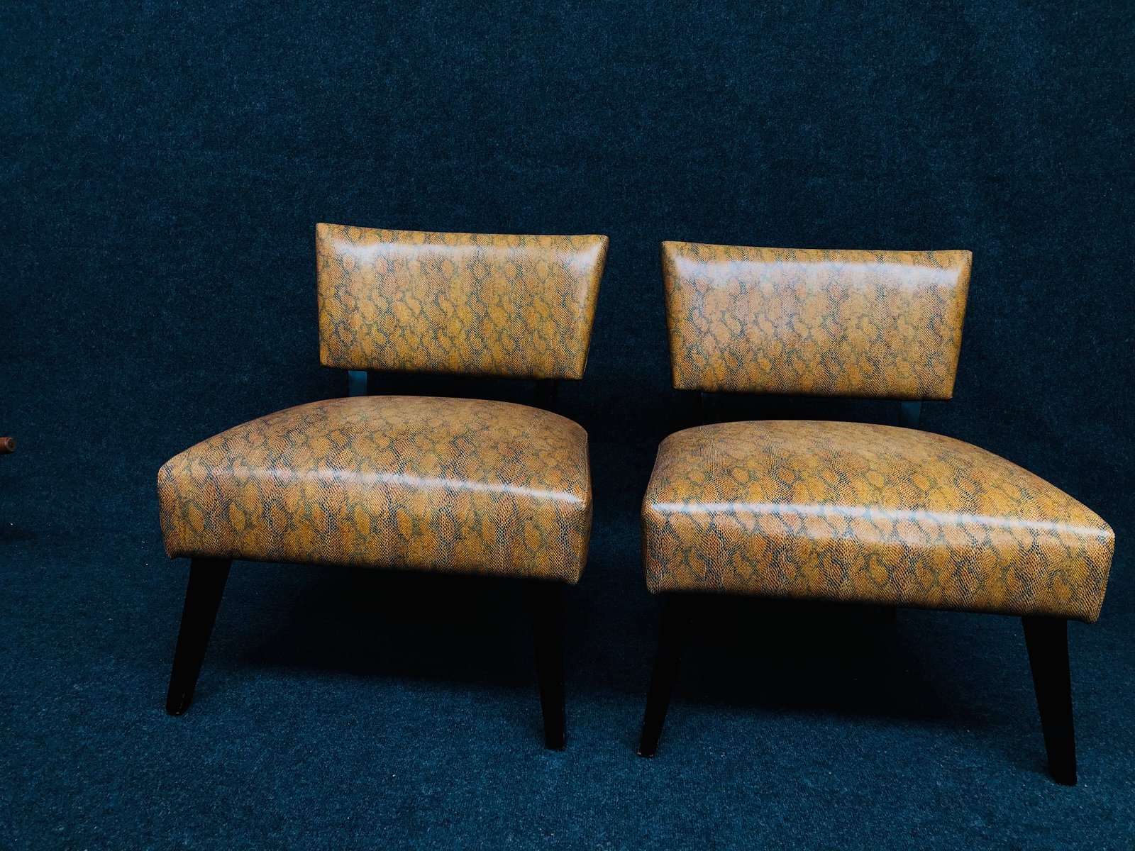 Juego de sillones de cuero de imitación de serpiente, años 80