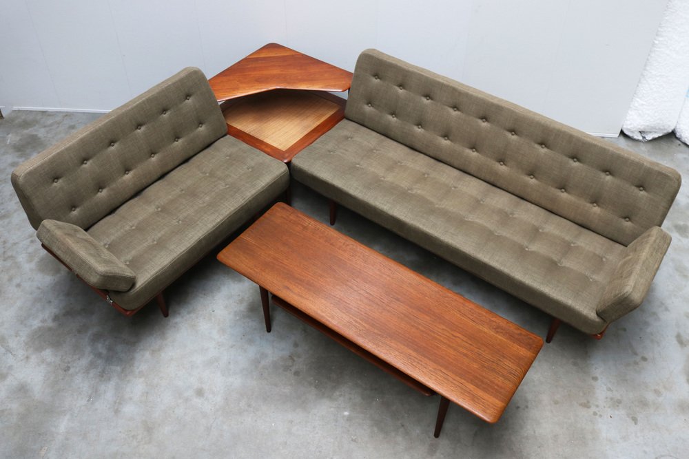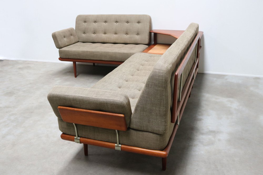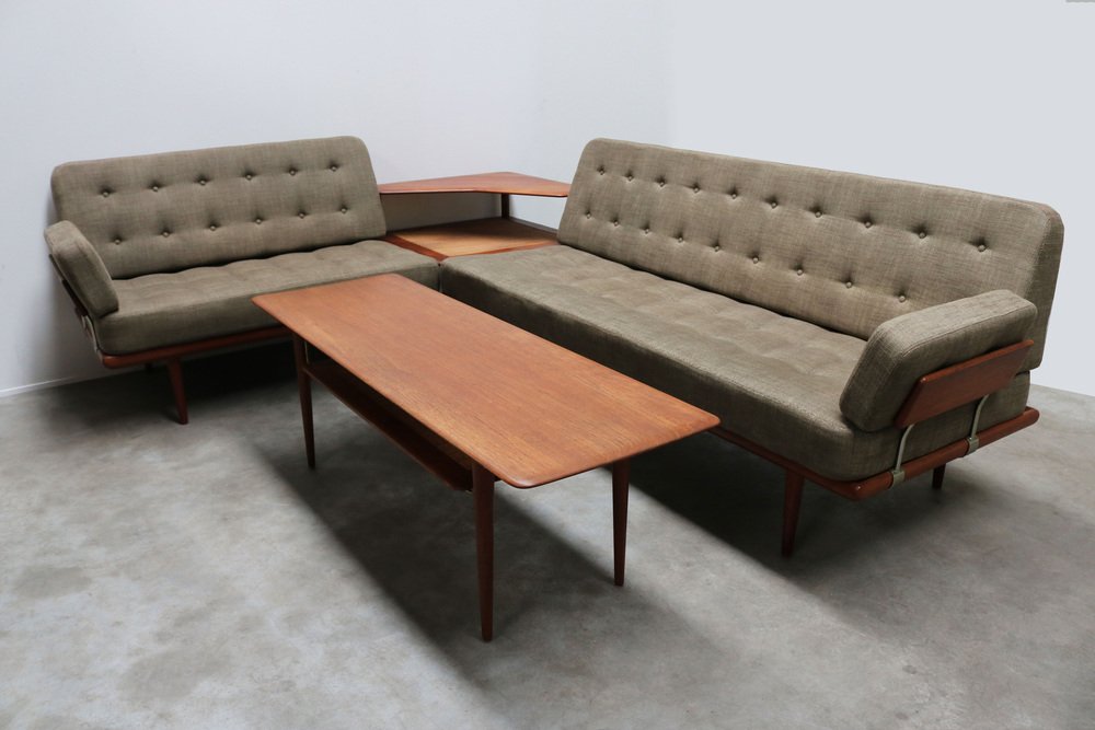 Mattresses may have been the company's first focus, but by 1952 France & Daverkosen had built a large furniture factory in Hillerød, just outside of Copenhagen, and was fast becoming one of most successful Danish furniture companies dedicated to mass production rather than traditional artisanal methods. Seating that features loose cushions and light, teak frames became France & Daverkosen's signature.