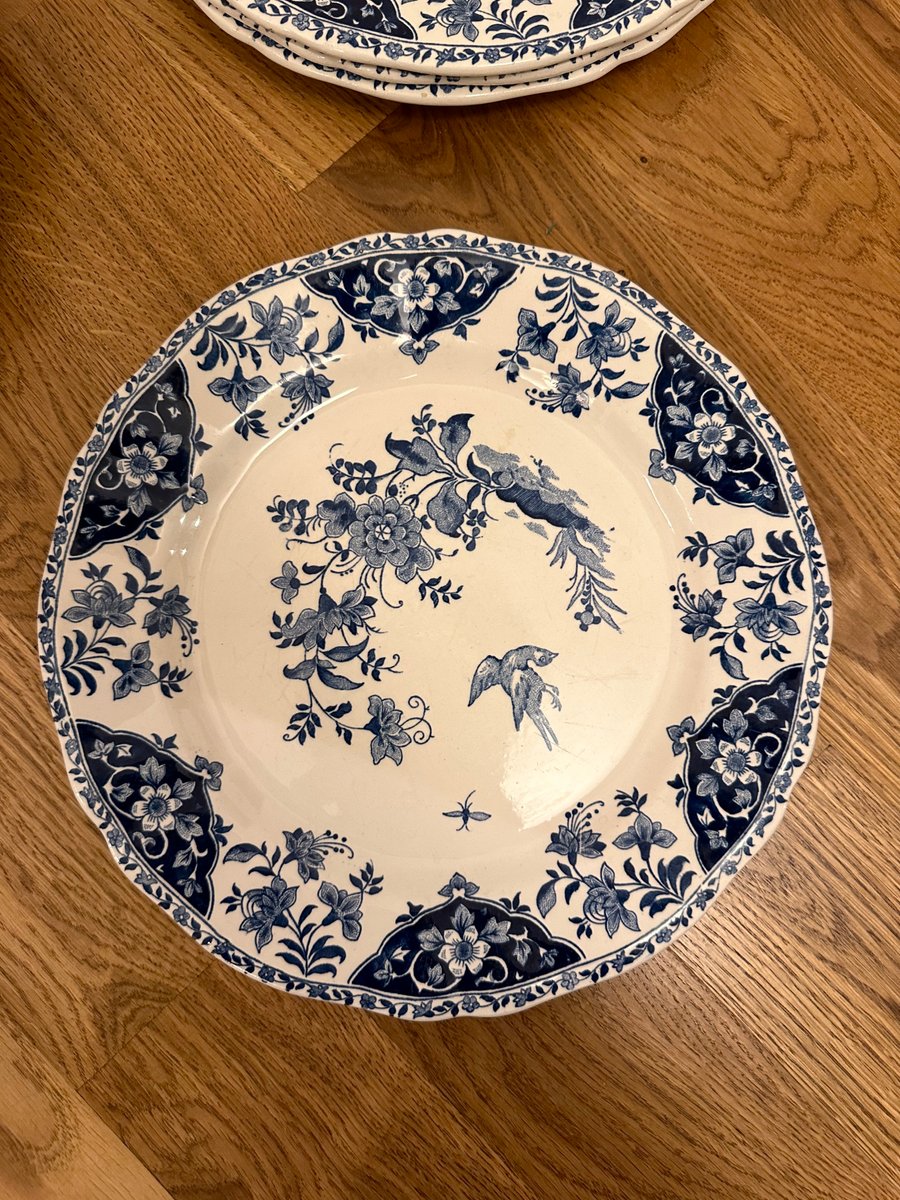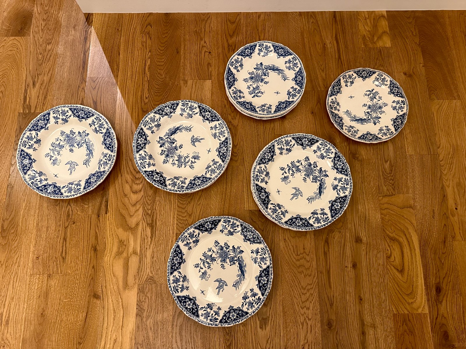 Juego de vajilla francesa en Delft azul de Gien. Juego de 12