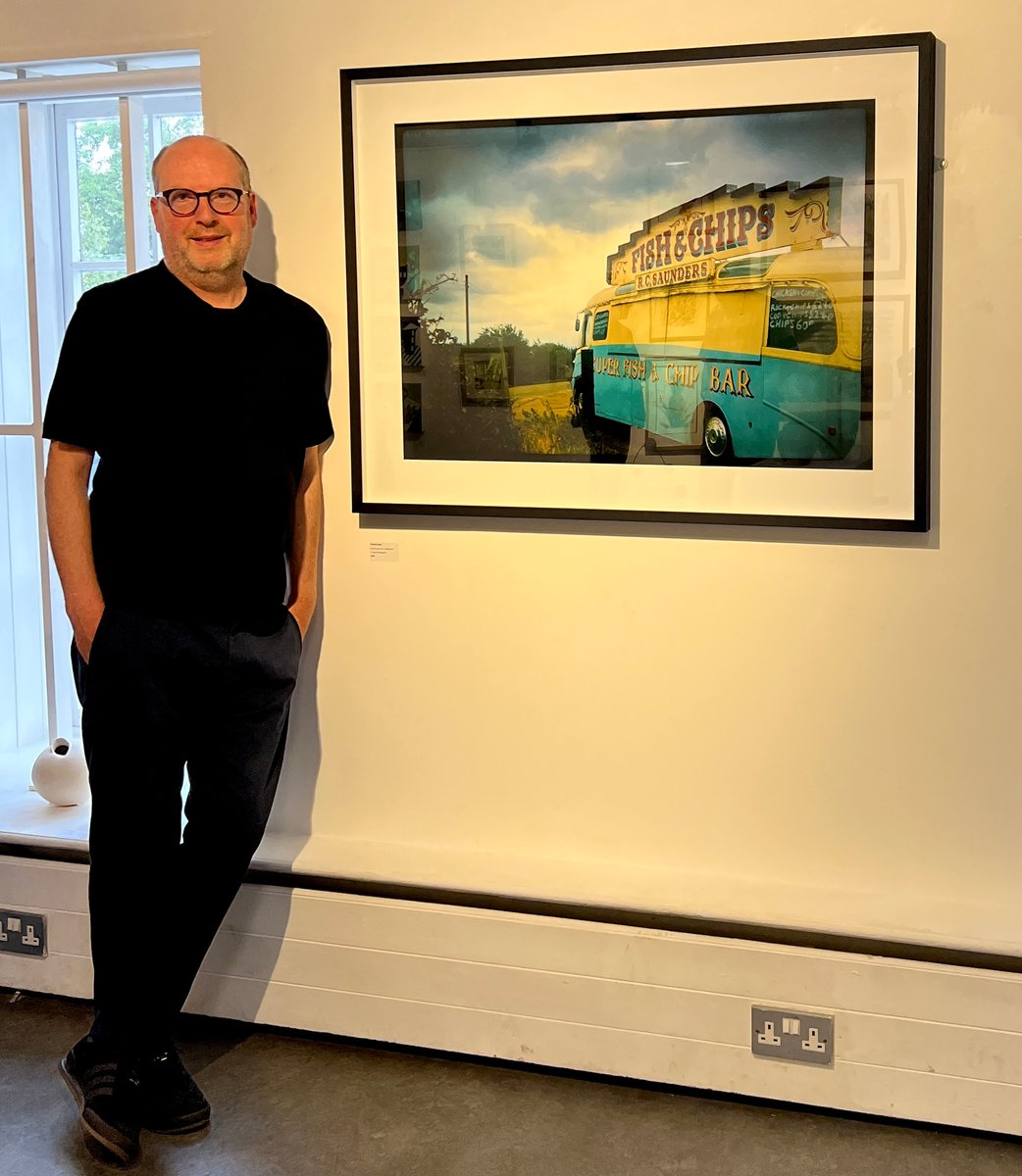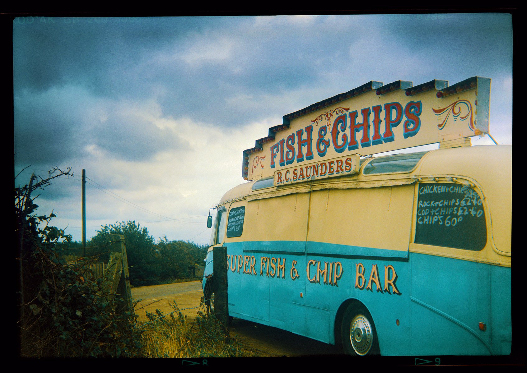 Un sombrío cielo de Fenland sirve de telón de fondo a una clásica furgoneta británica de fish & chips, fotografiada en Haddenham. La tipografía y la propia furgoneta tienen un divertido aire de feria, contrario a los tonos apagados de esta obra de arte. Forma parte de la serie de Richard Heeps, 'A View of the Fens from the Car with Wings'.