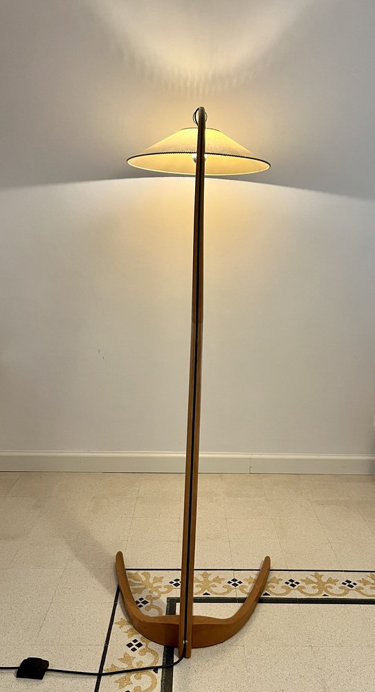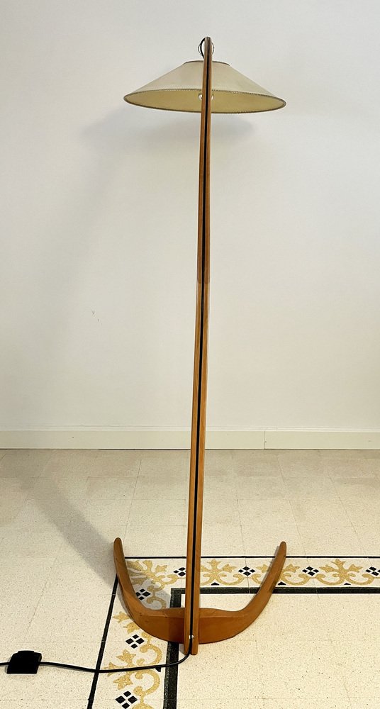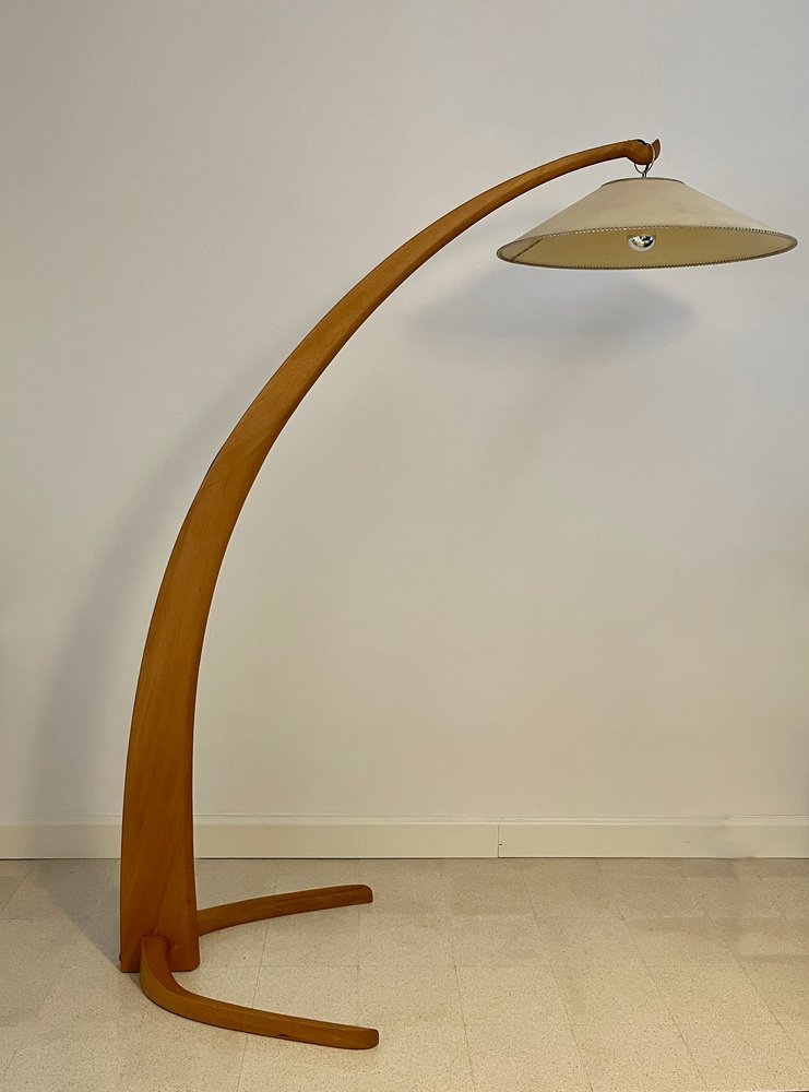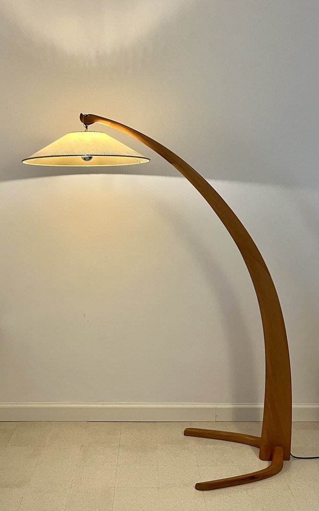 Lámpara arqueada de madera de haya, años 50