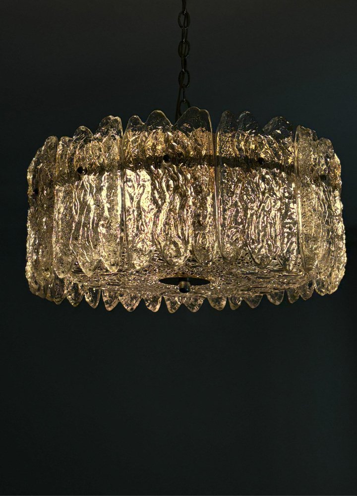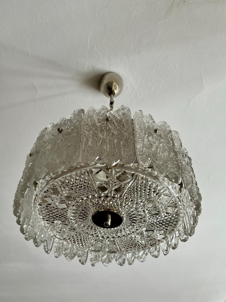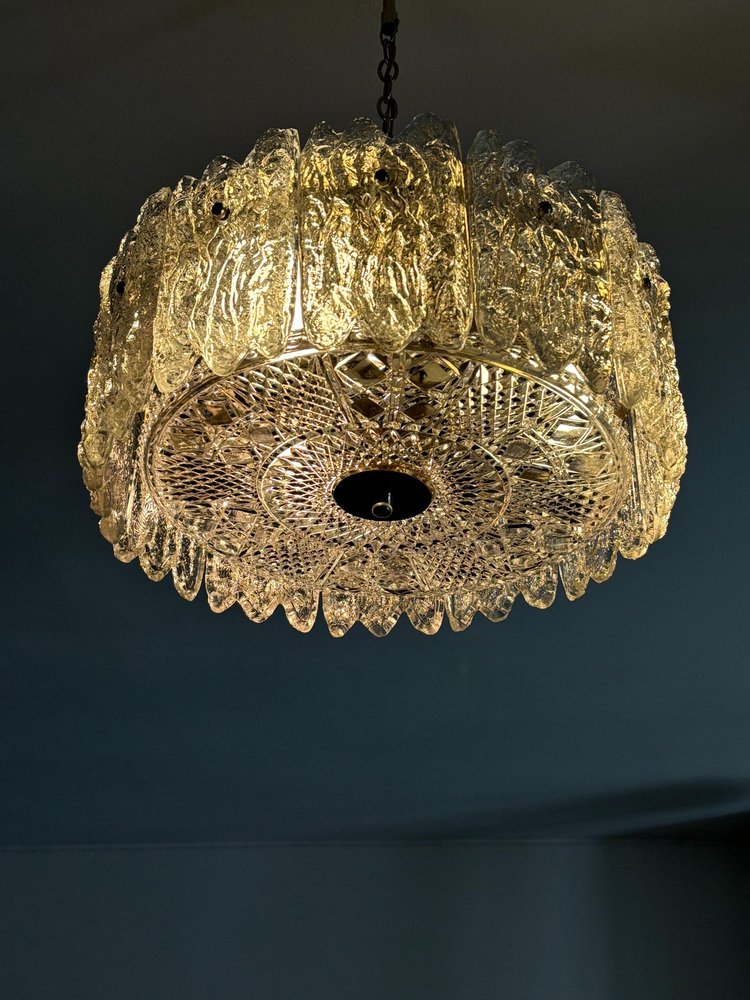 Lámpara colgante con elementos de cristal de Carl Fagerlund para Orrefors, Suecia, años 60