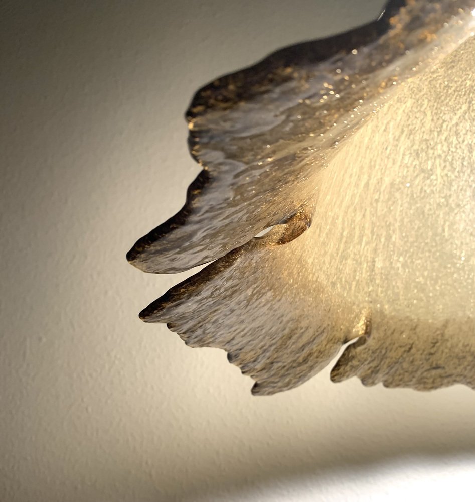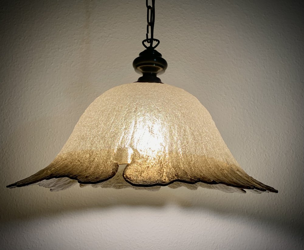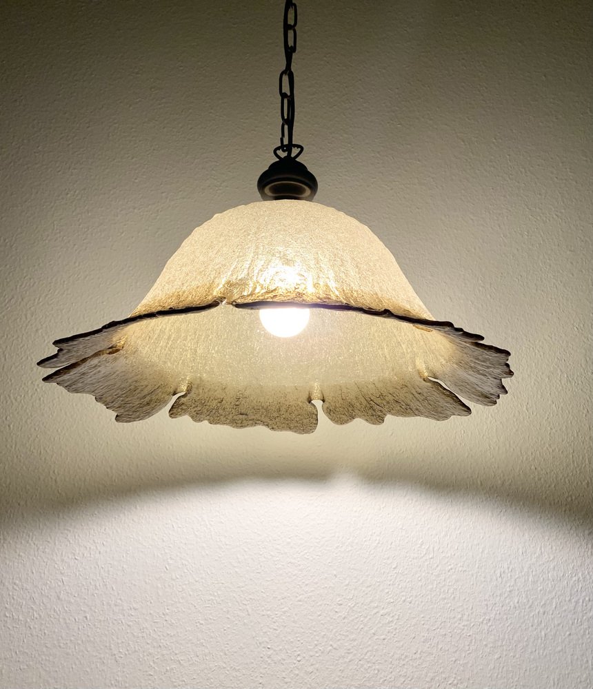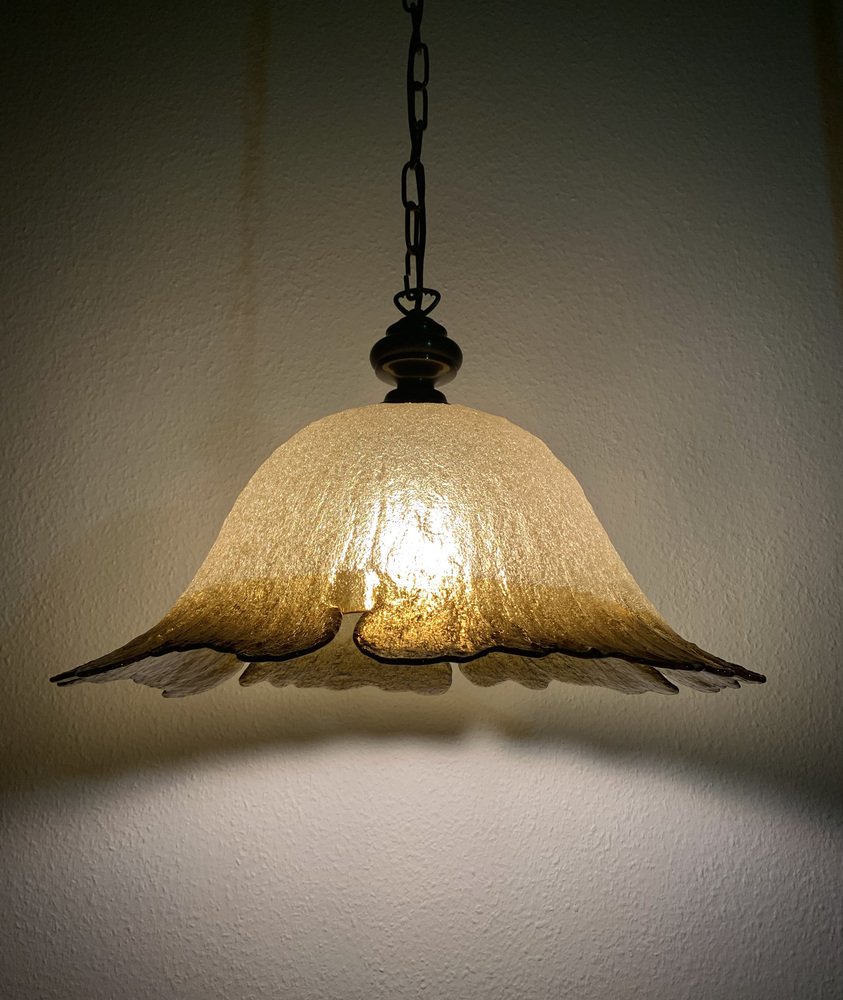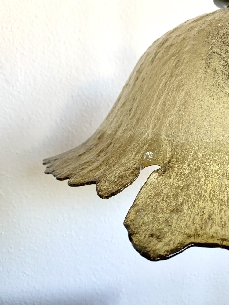 Produced in the 1970s by Peill + Putzler, this model (70244) takes inspiration from a daylily flower. Often called a “Fazzoletto” lamp, it shares similarities with the iconic Fazzoletto vase by Fulvio Bianconi for Venini (1948). This style became popular in the late 1960s and early 1970s.