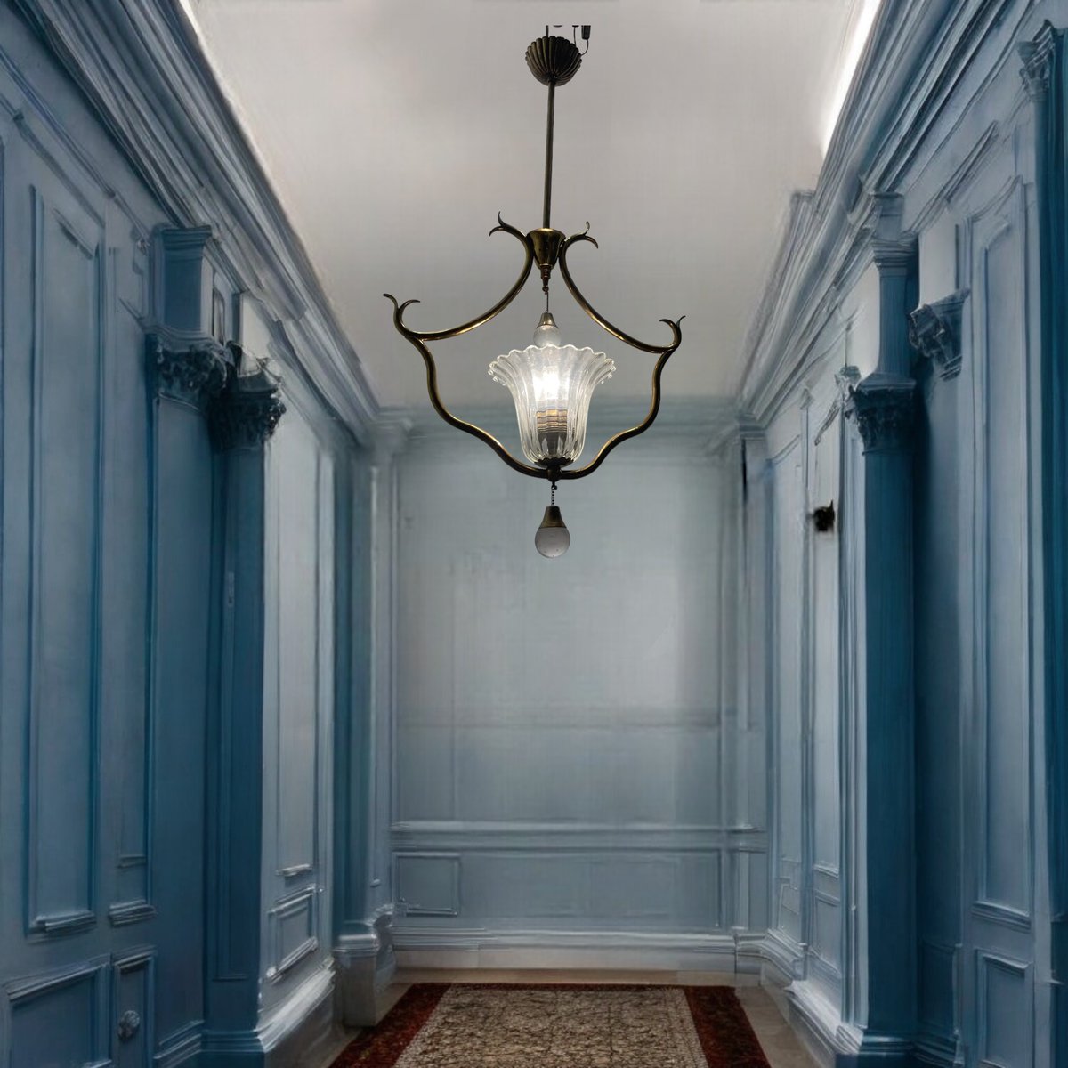 Lámpara colgante de cristal de Murano de Ercole Barovier, años 50