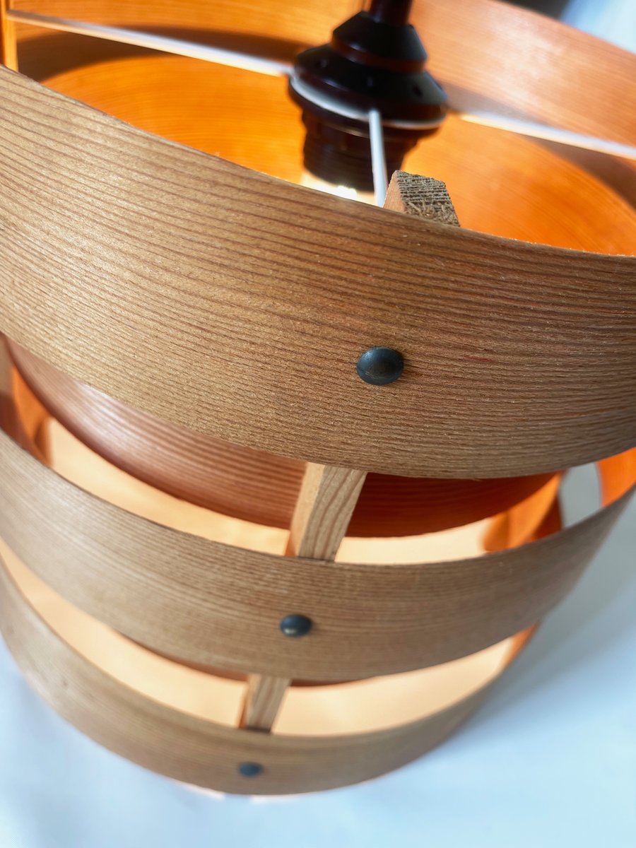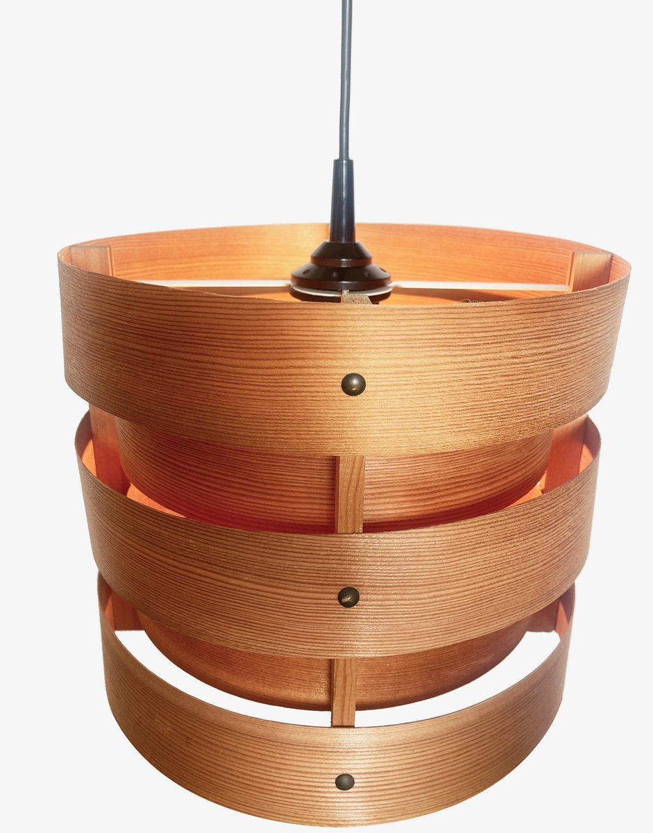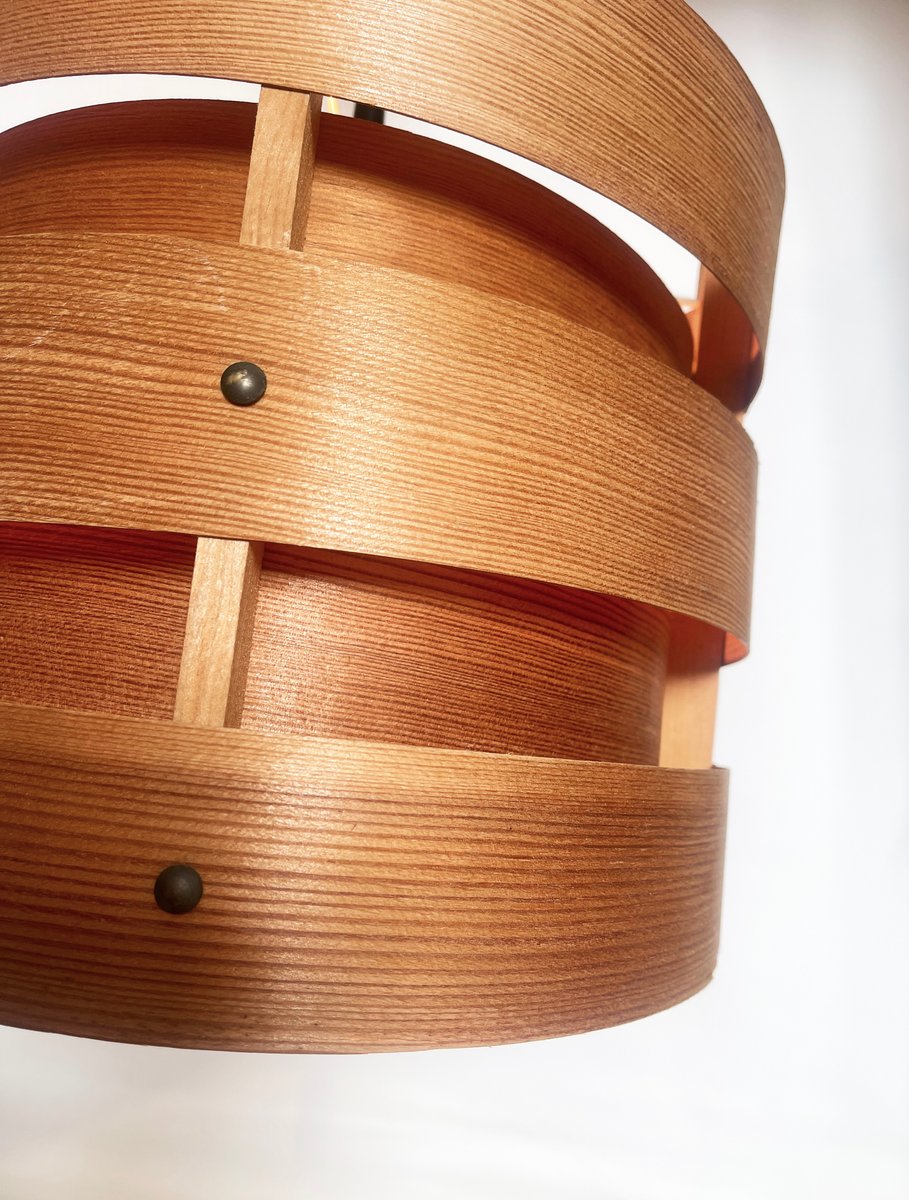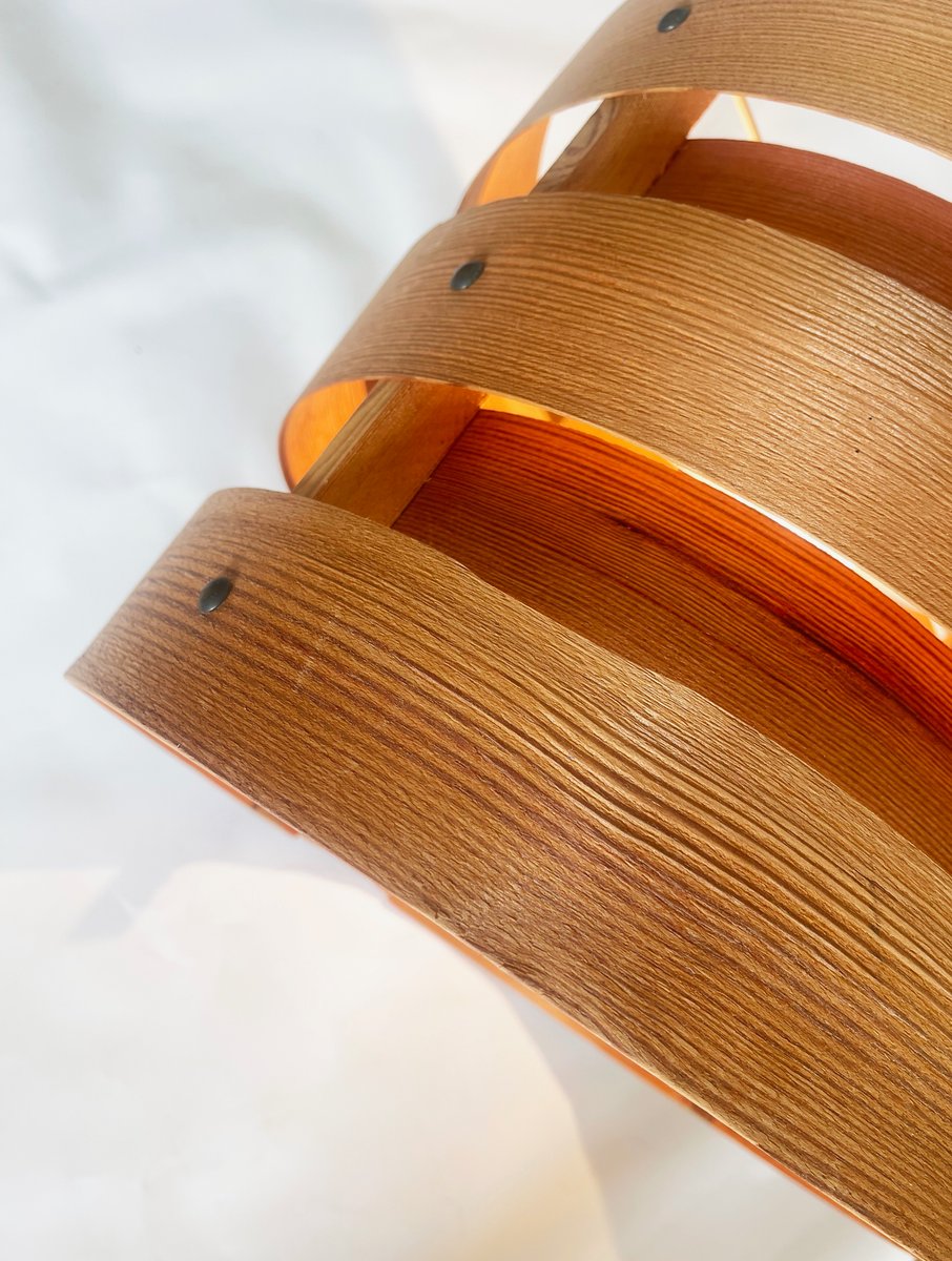 Preciosa lámpara colgante de chapa de madera, escandinava, posiblemente sueca. original de los años sesenta.