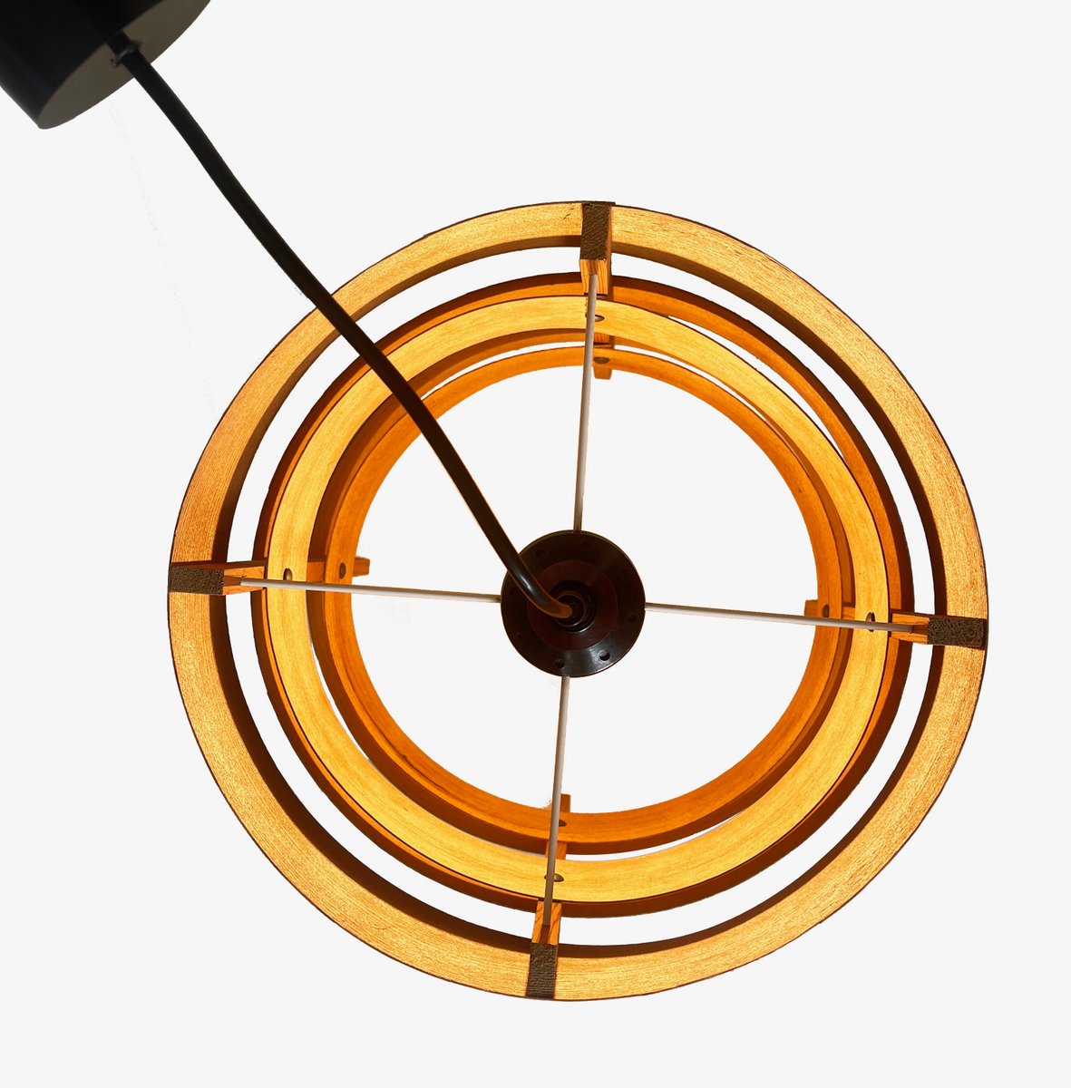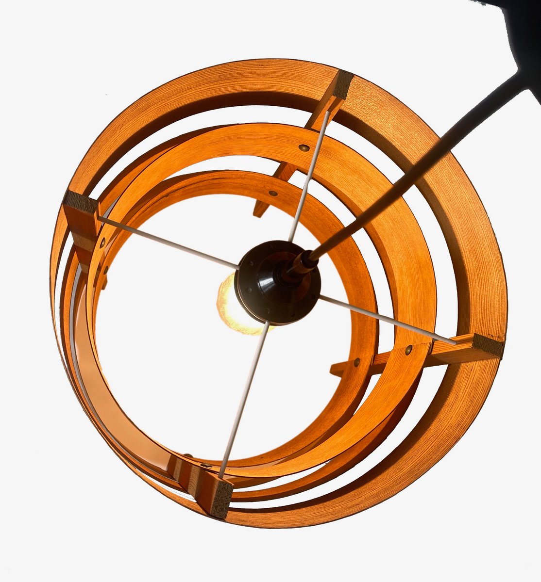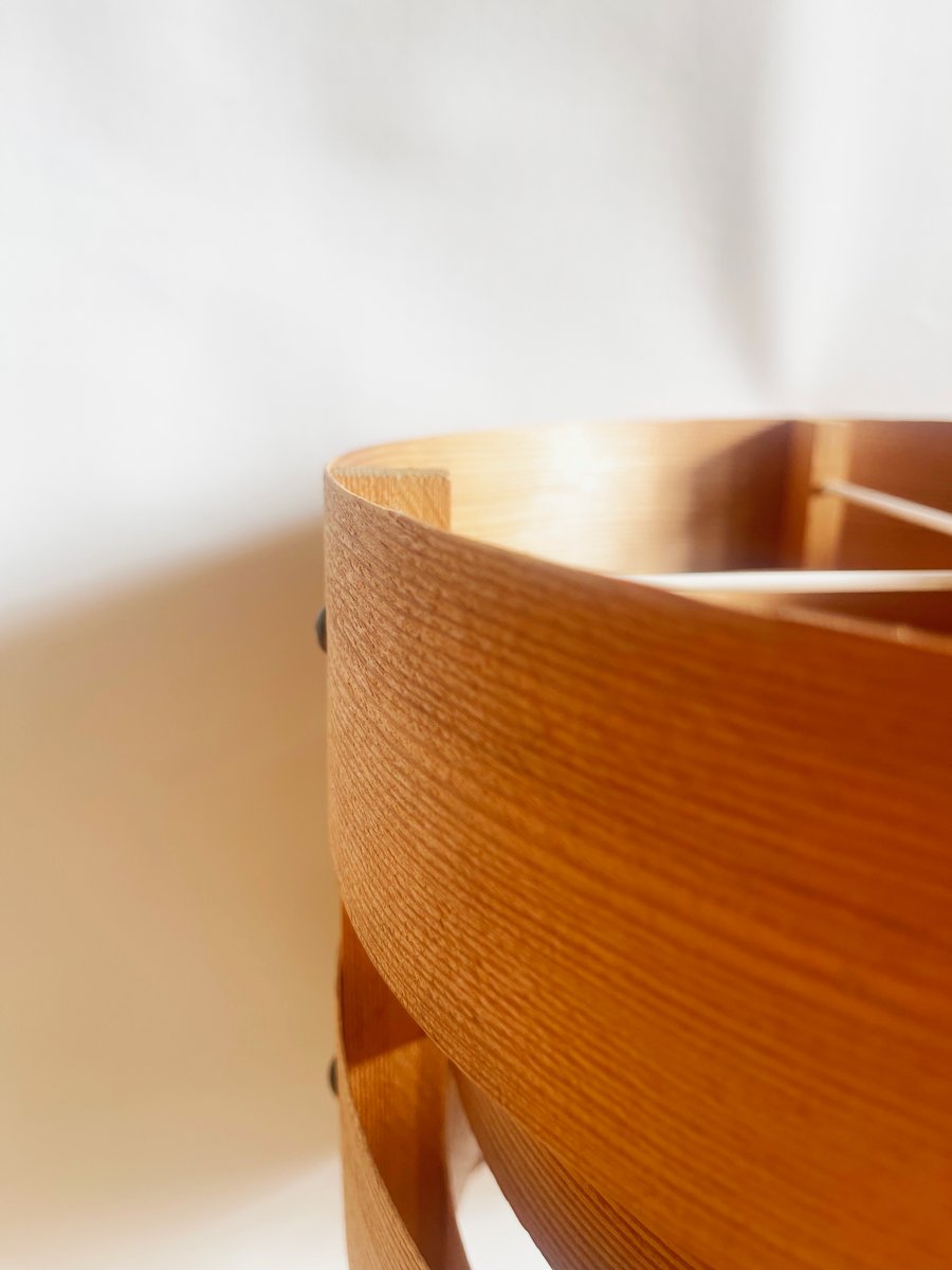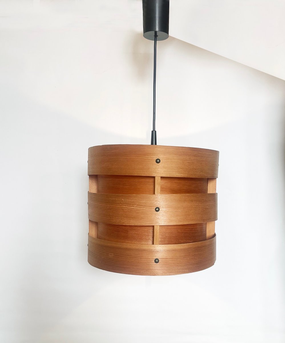 Preciosa lámpara colgante de chapa de madera, escandinava, posiblemente sueca. original de los años sesenta.