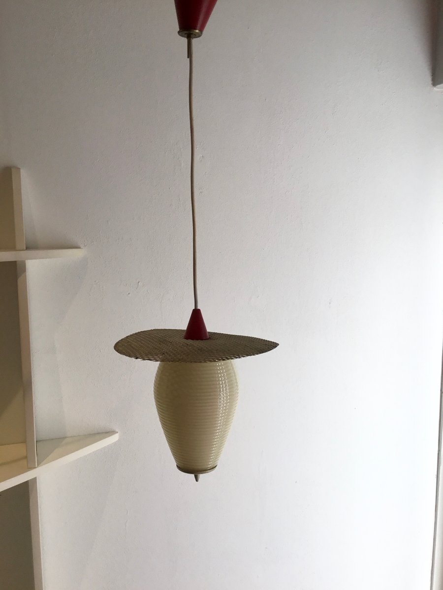 After the war, Matégot established Parisian workshop, dedicated to experimental, handcrafted furniture and objects. His designs explored a variety of materials, like metal, glass, Formica, woods, textiles, and leather. His most successful designs incorporated metal tubing and perforated sheet metal, with a technique he patented and named Rigitulle in 1952. He developed a machine that could bend and fold sheet metal like a piece of fabric, which was used to create a number of distinctive designs, such as the Java Table Lamp, Soumba Tables, Bagdad Lamp, Satellite Pendants, and Nagasaki Chairs. After few years, Matégot opened a second workshop, called Société Matégot, in Casablanca, where he was able to broaden his production to include small