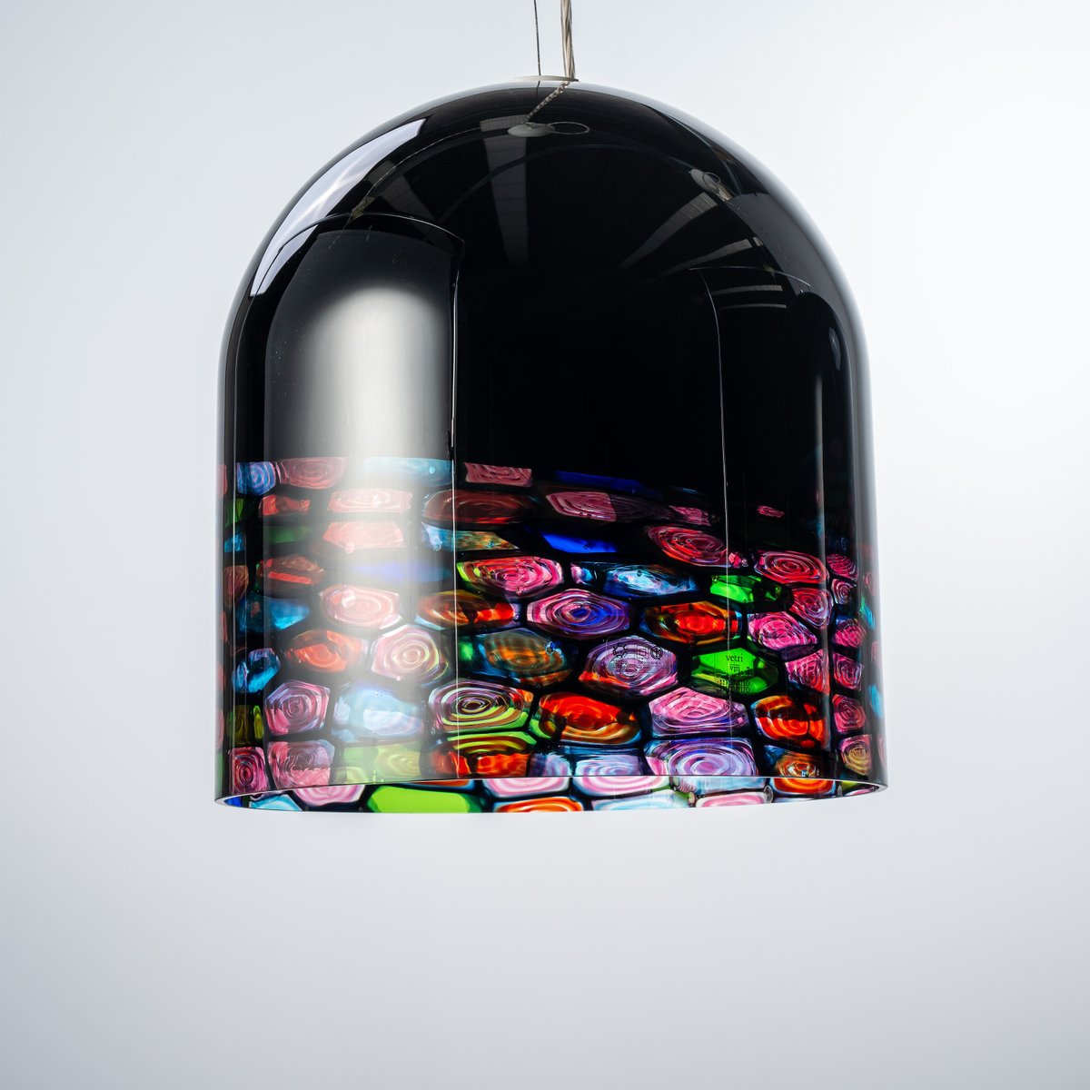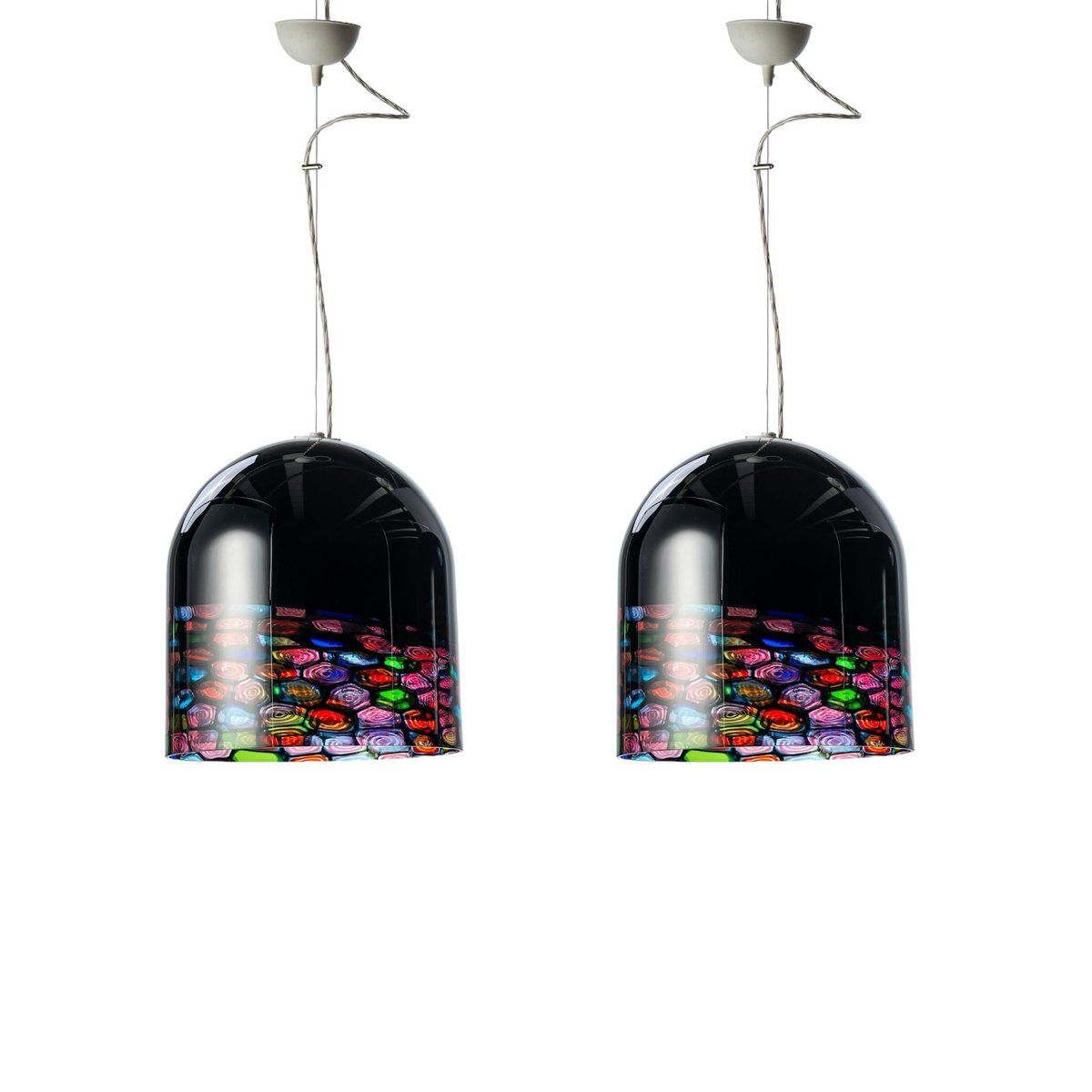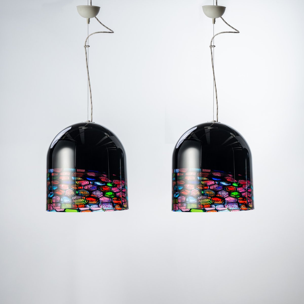 Lámpara colgante Leucos de vidrio policromado de Noti Massari, 1980. Juego de 2