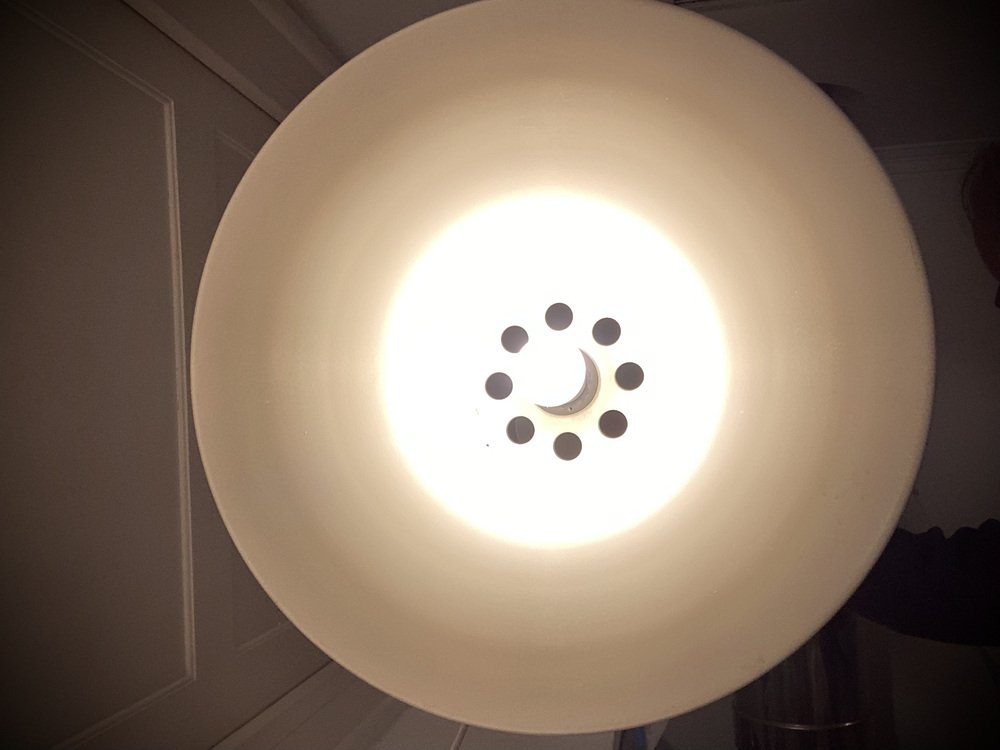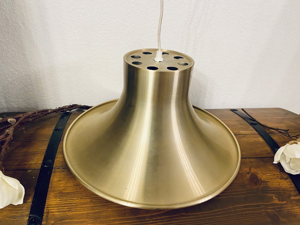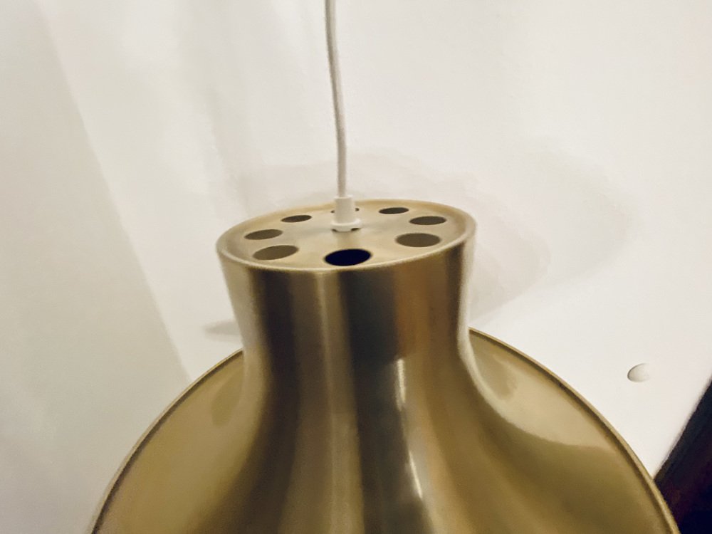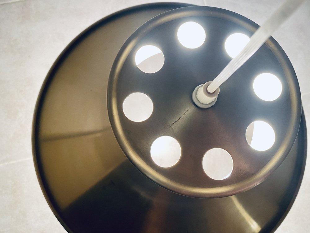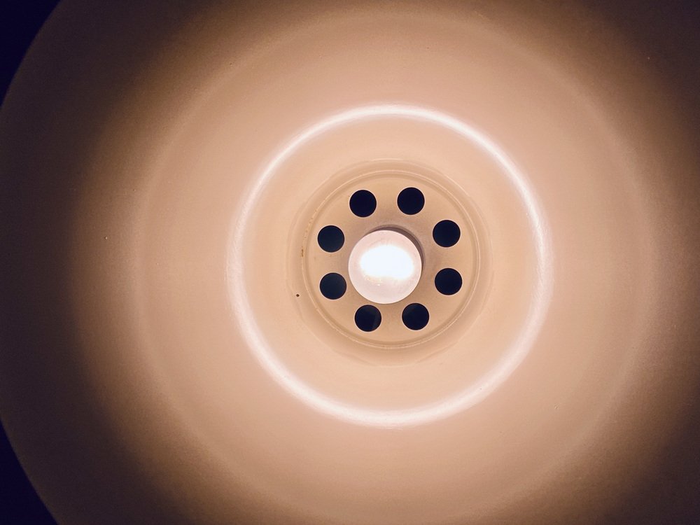 In the postwar era, Scandinavian designer-architects explored new ways in which they could defuse and redirect light. Lindkvist falls into the category of designers producing minimalist, sculptured Space Age table lamps, wall lights, and pendants, especially in copper, aluminum, brightly-colored glass, and plastic. In fact, much like Poul Henningsen’s PH Lamp Series (from 1925) for Louis Poulsen, Lindkvist created a series of layered shades—known officially as concentric parabolic-section cowls—to spread the light while concealing the lightbulb for his appropriately named Trava Lamp (1960s), meaning 'Stack' in English. This glare-free approach was perfect for the reduction of the harsh, glaring bulbs available at the time of production.