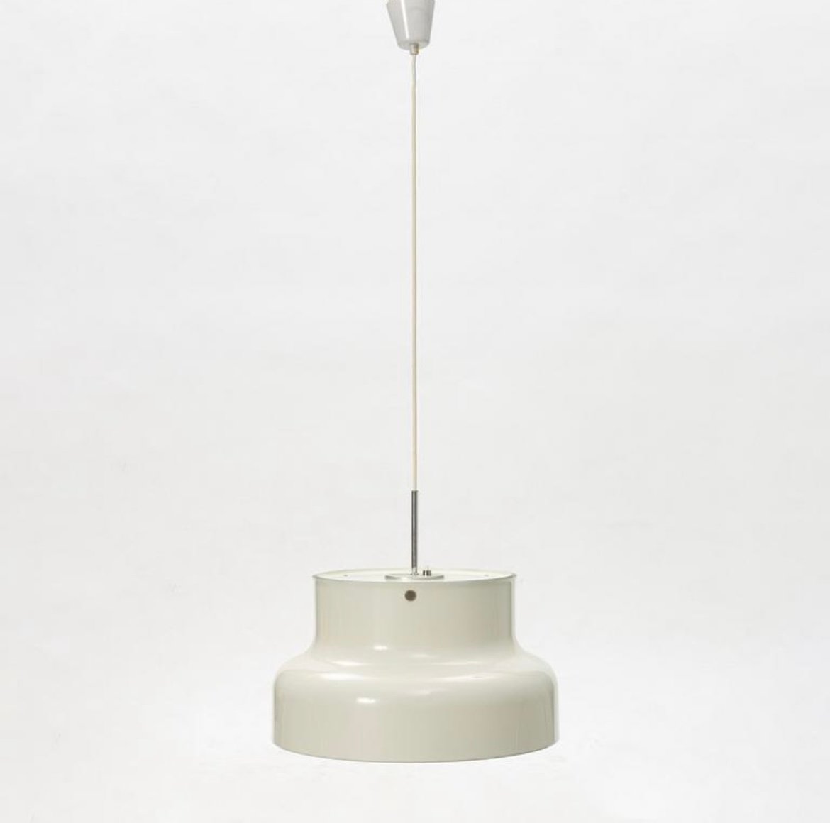 For Ateljé Lyktan, Pehrson designed the classic pendulous Bumling ceiling lamp (1968). Bumling, which means ‘boulder’ in Swedish, was first exhibited at a lighting fair in Gothenburg. The bulbous lamp was over half a meter wide and bright green. The lamp was originally produced as a Family in six different sizes and a wide array of colors. The lighting fixture was an instant success in Sweden and internationally. Demand was so high, Ateljé Lyktan had to subcontract the production of additional lamps. In 1970, after a lighting exhibition in Copenhagen, Pehrson was asked to present a lighting proposal for the 1972 Olympic Games in Munich. Pehrson developed an indoor lighting concept based on the 591 Simris table lamp and the 781 Simris floor lamp (both 1964). In 1972, Ateljé Lyktan supplied 16,300 lamps to the Olympic Village in Munich, which was the largest order in the company’s history. In 1974, Pehrson sold Ateljé Lyktan to the Swedish company Fagerhult, but remained CEO, Artistic Director, and Marketing Manager throughout the 1970s.