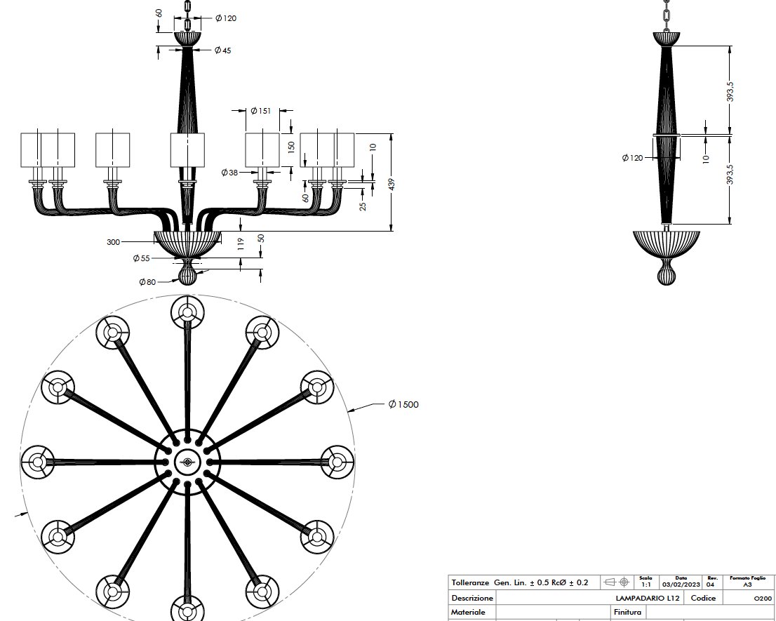 Lámpara de araña Art Déco de cristal de Murano, 2004