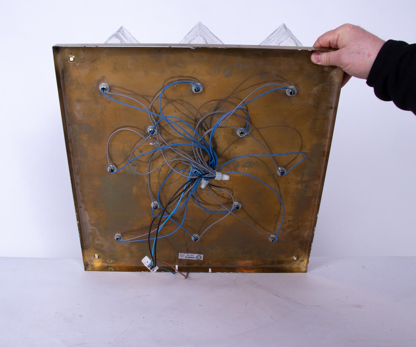 Lámpara colgante Quadriedri de cristal de Murano y latón de Venini, Italia, años 70