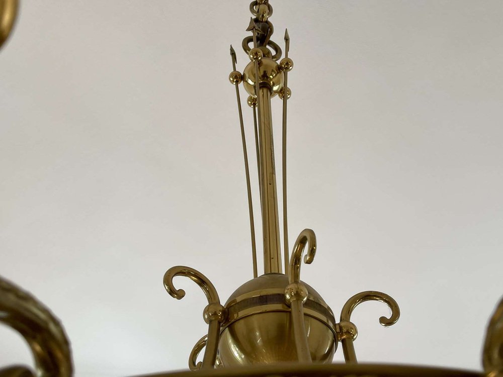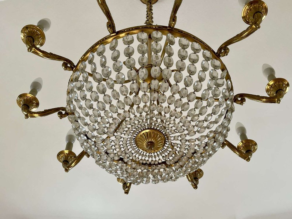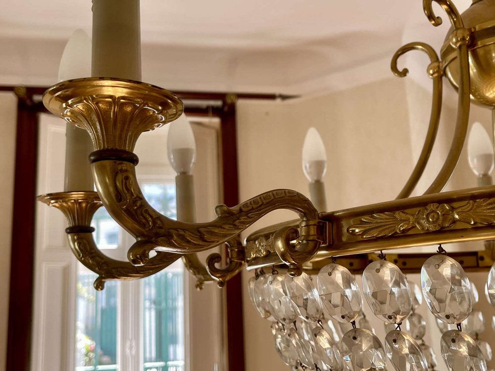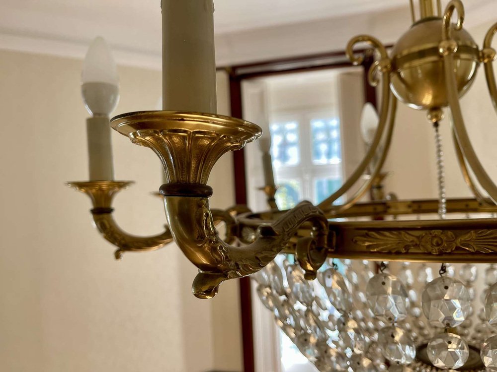 Lámpara de araña de 10 luces de bronce y cristal tallado, años 60