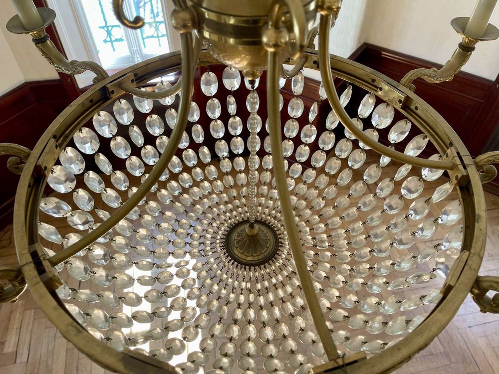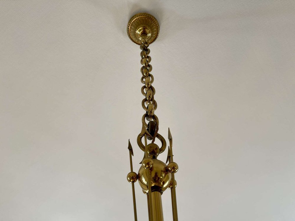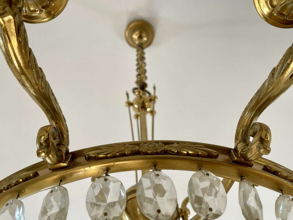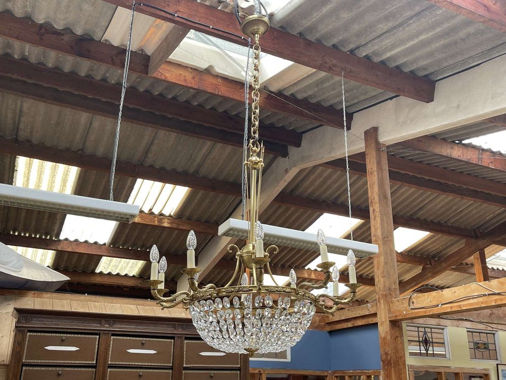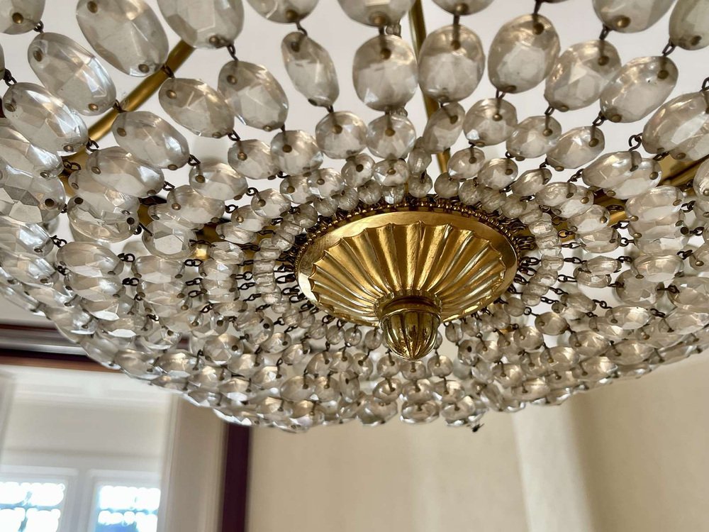 Lámpara de araña de 10 luces de bronce y cristal tallado, años 60