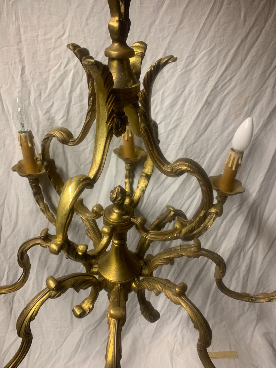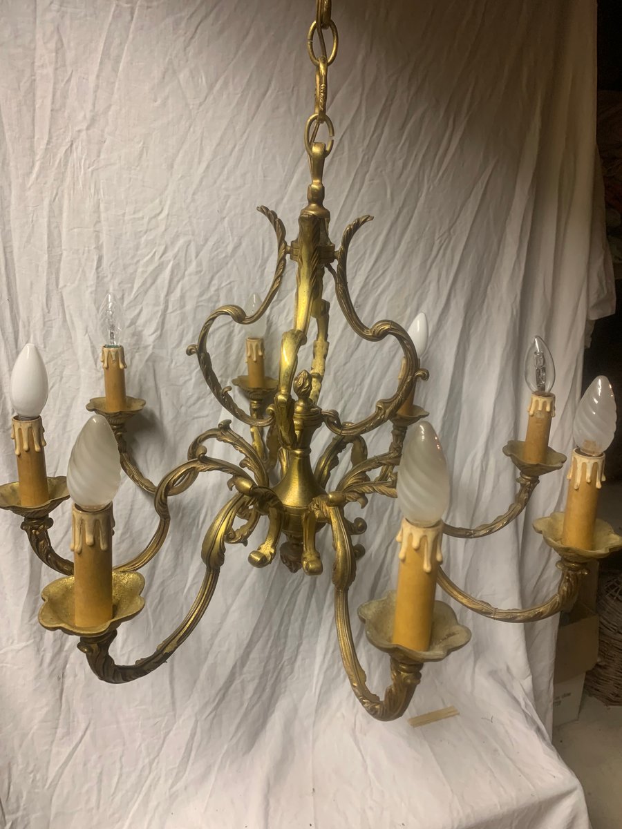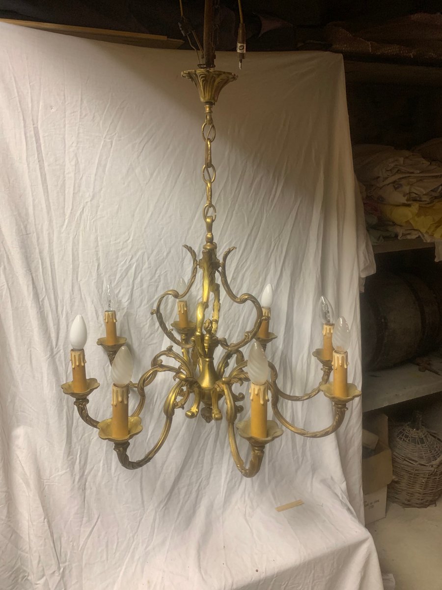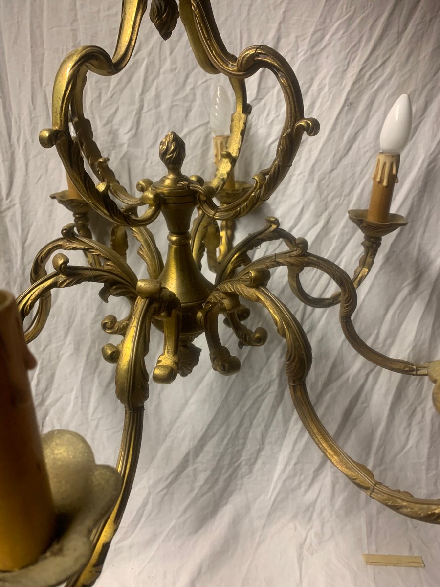 Lámpara de araña de bronce con ocho brazos, años 20