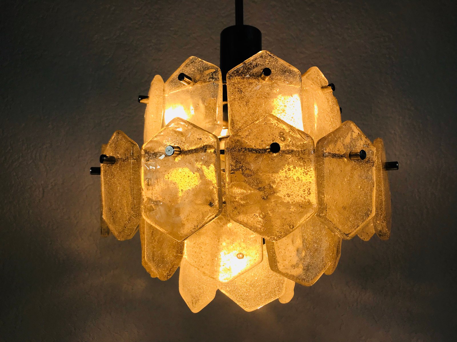Plafón Mid-Century de hierro y vidrio burbuja de Glashütte Limburg, años 60