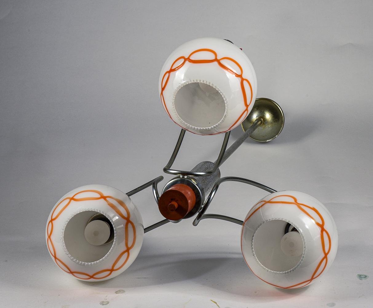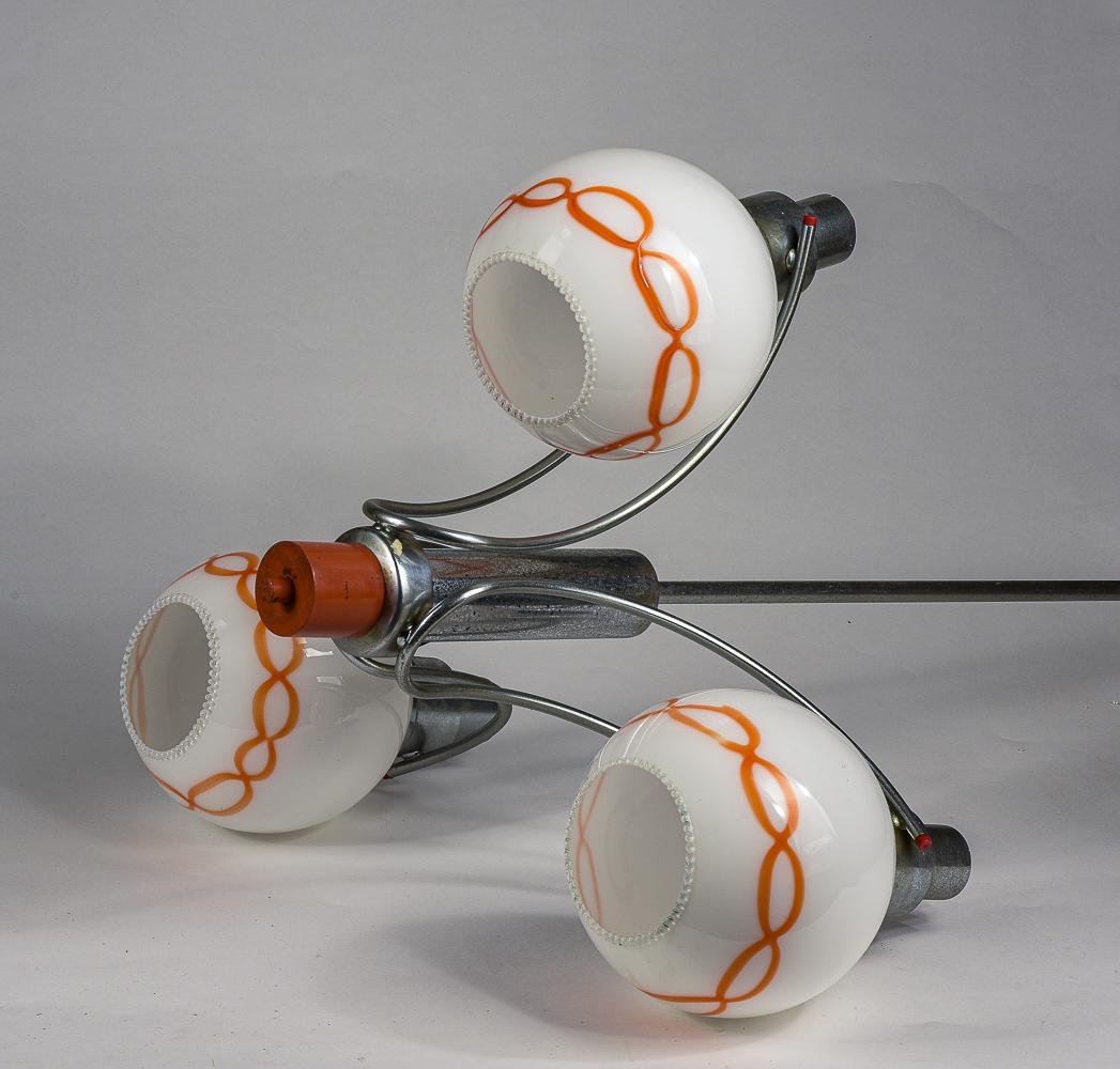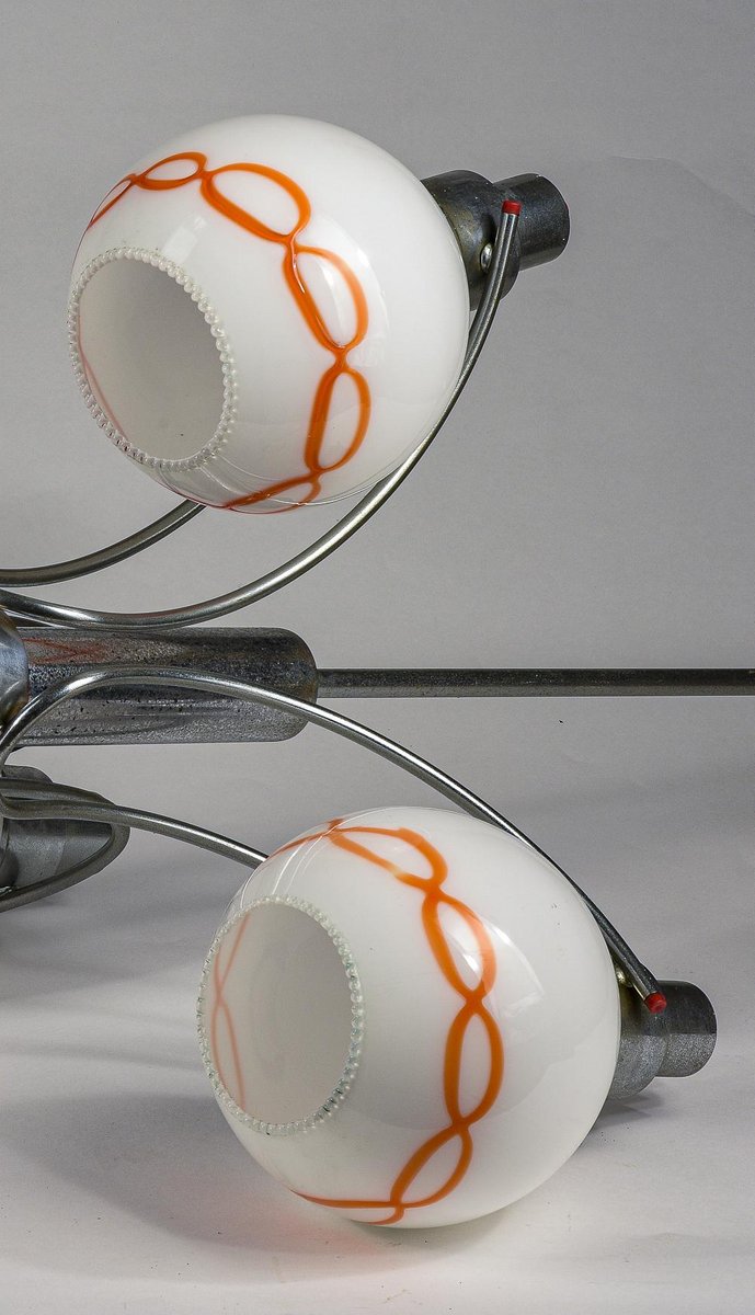 Lámpara de araña de vidrio blanco y naranja, años 70