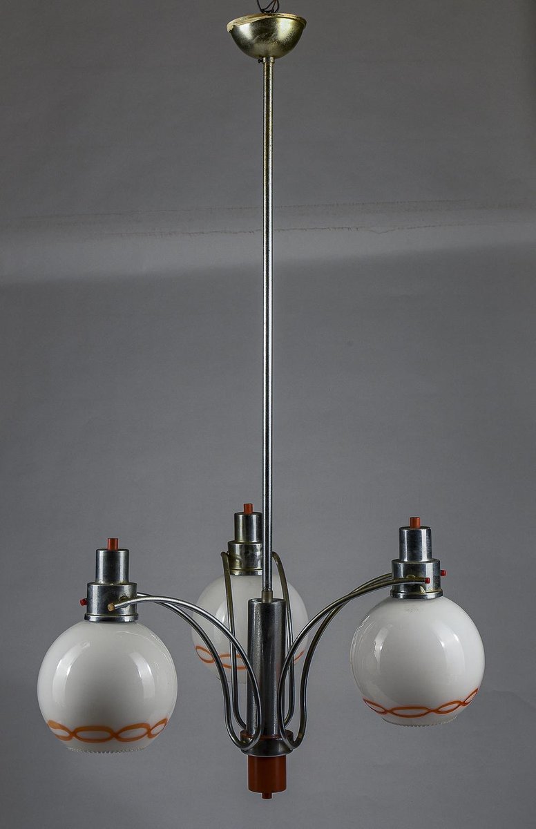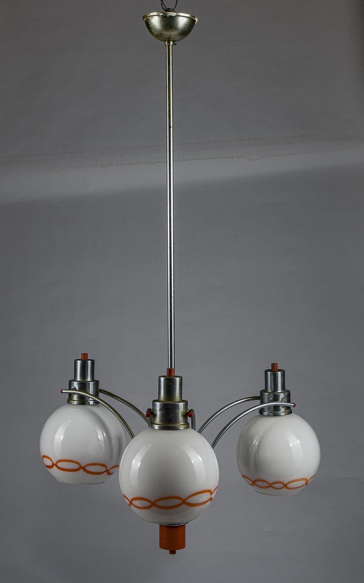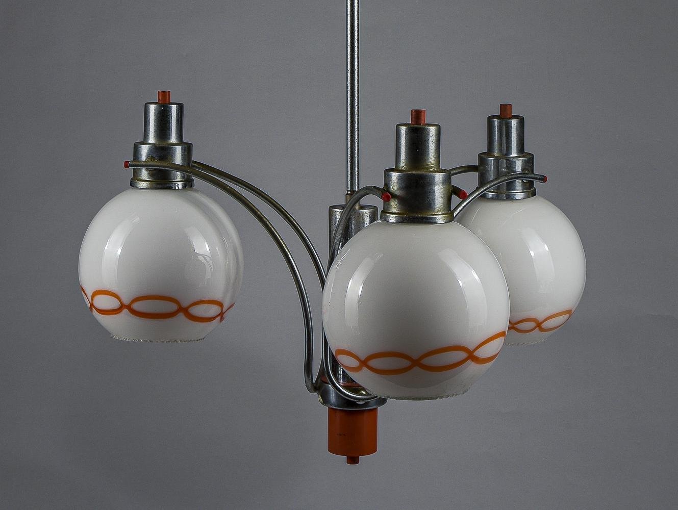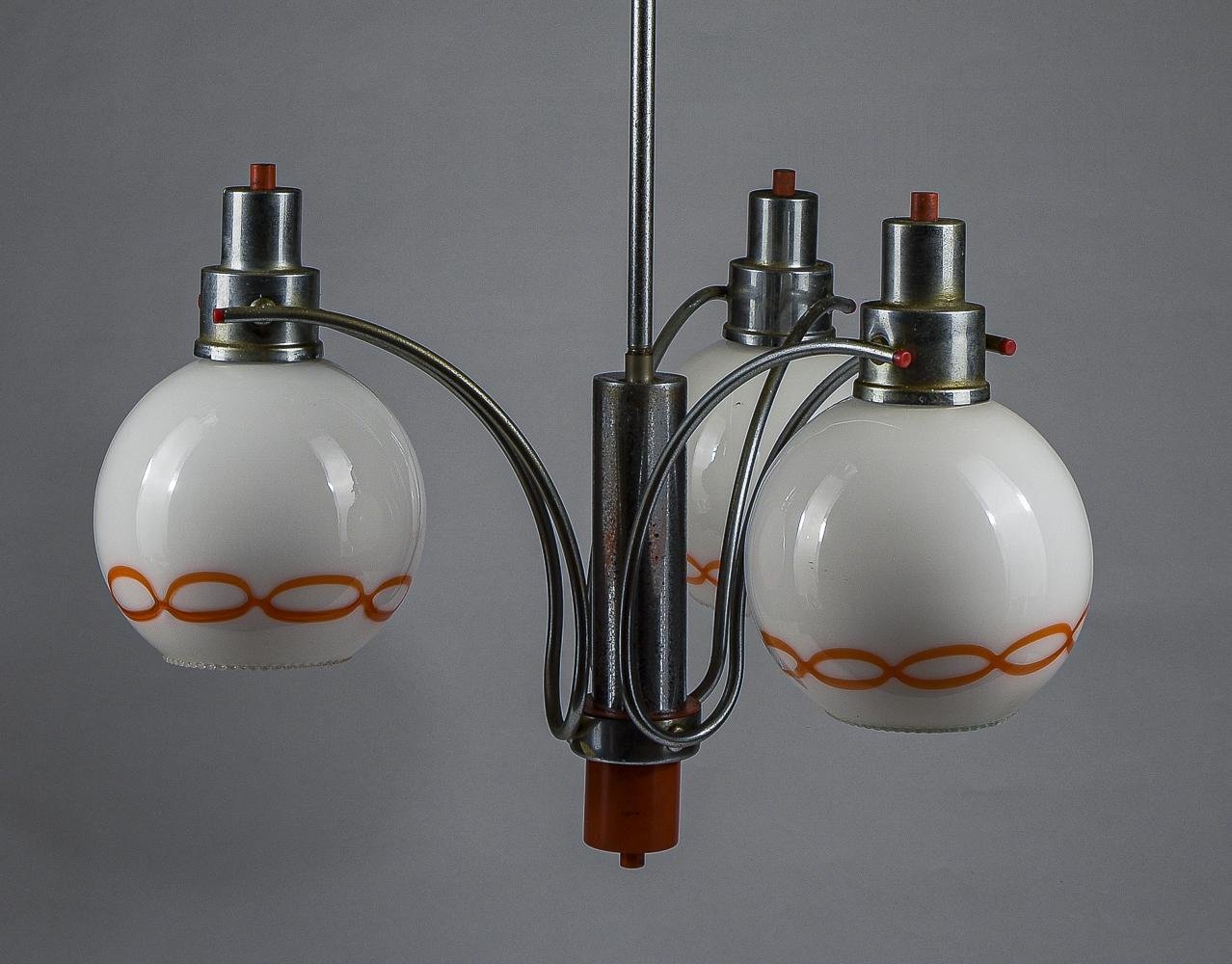 Lámpara de araña de vidrio blanco y naranja, años 70
