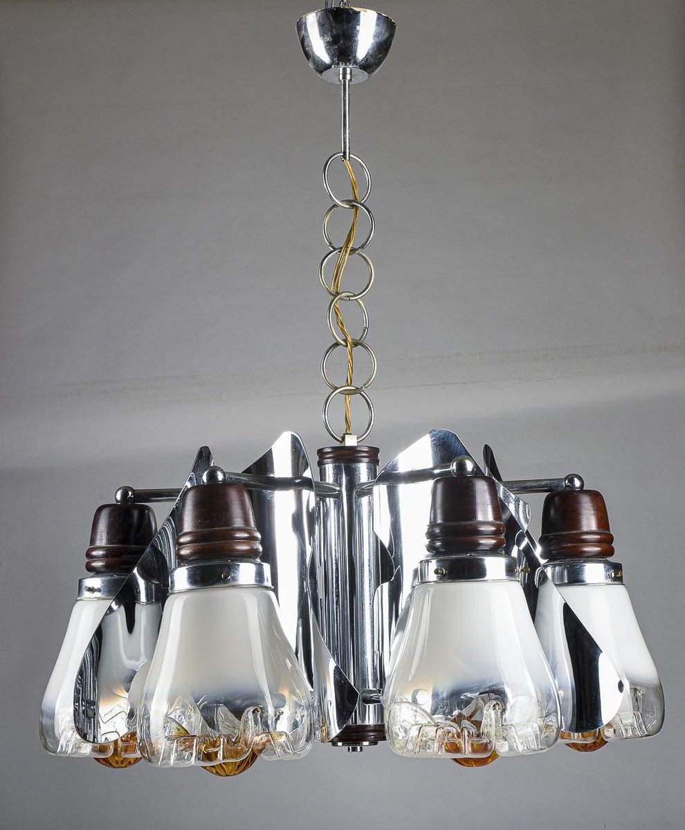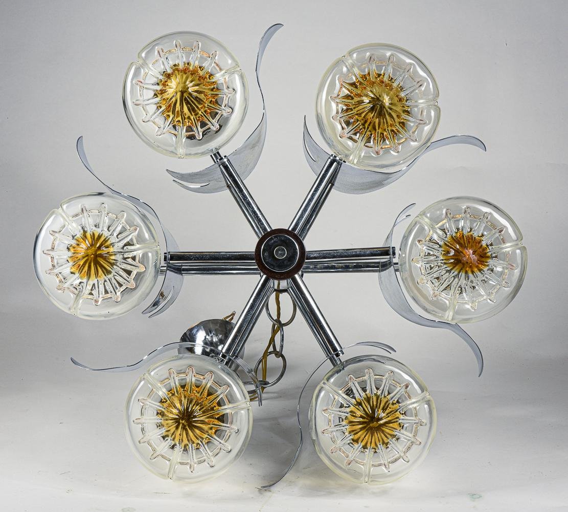Lámpara de araña era espacial de cristal de Murano de Mazzega, años 60-70