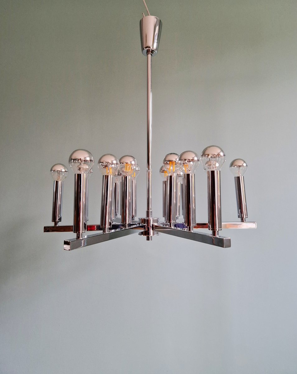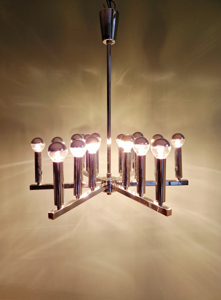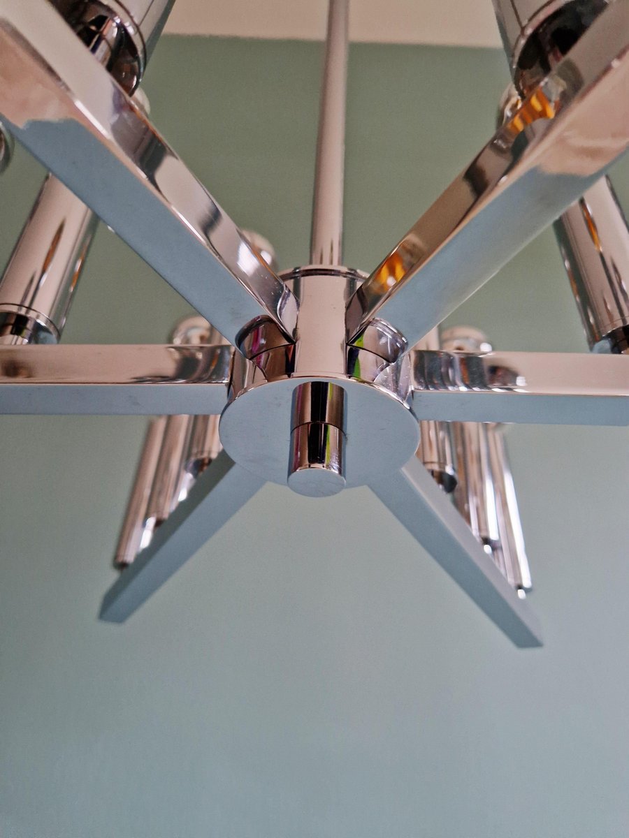 Lámpara de araña era espacial de metal cromado, años 70