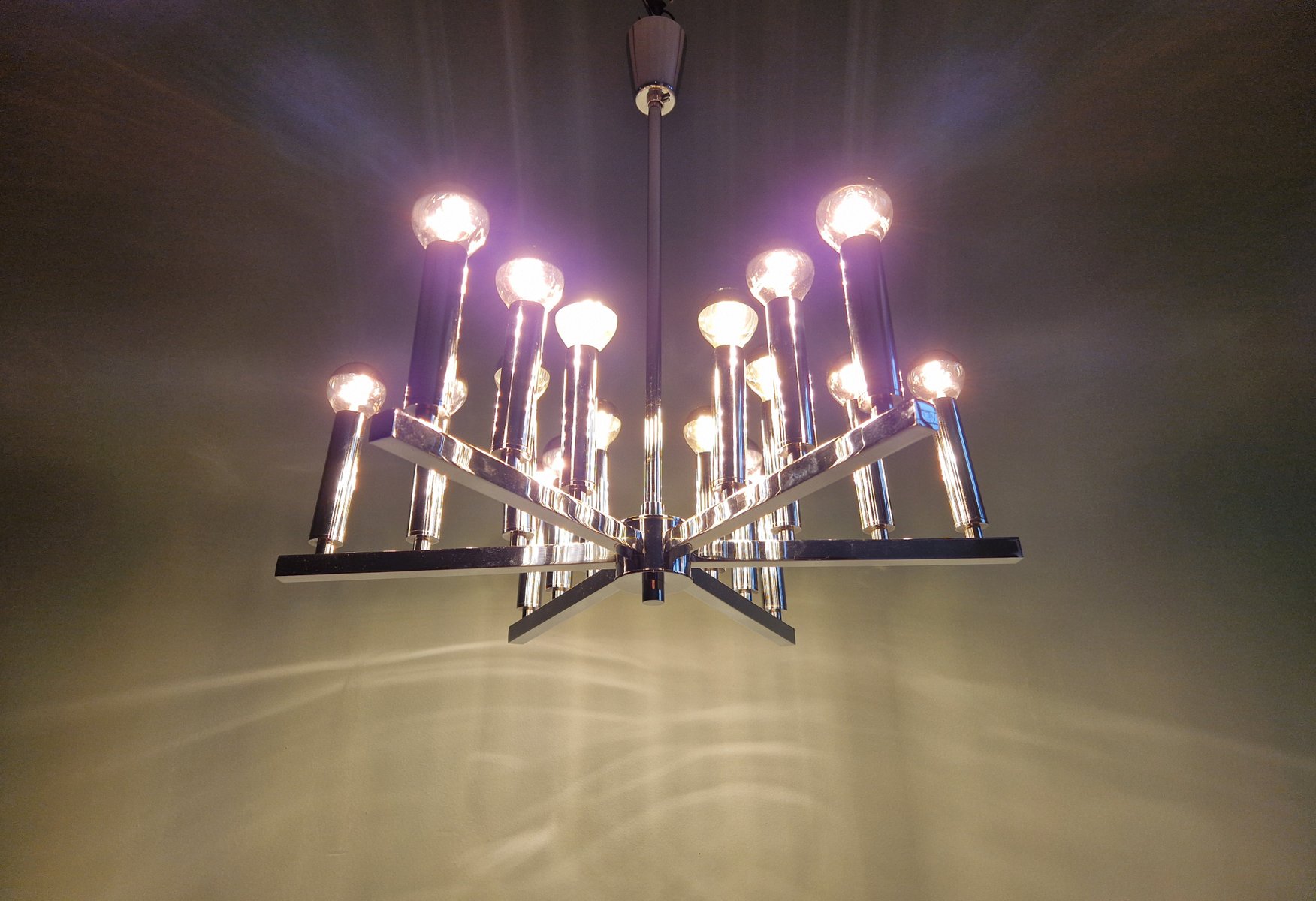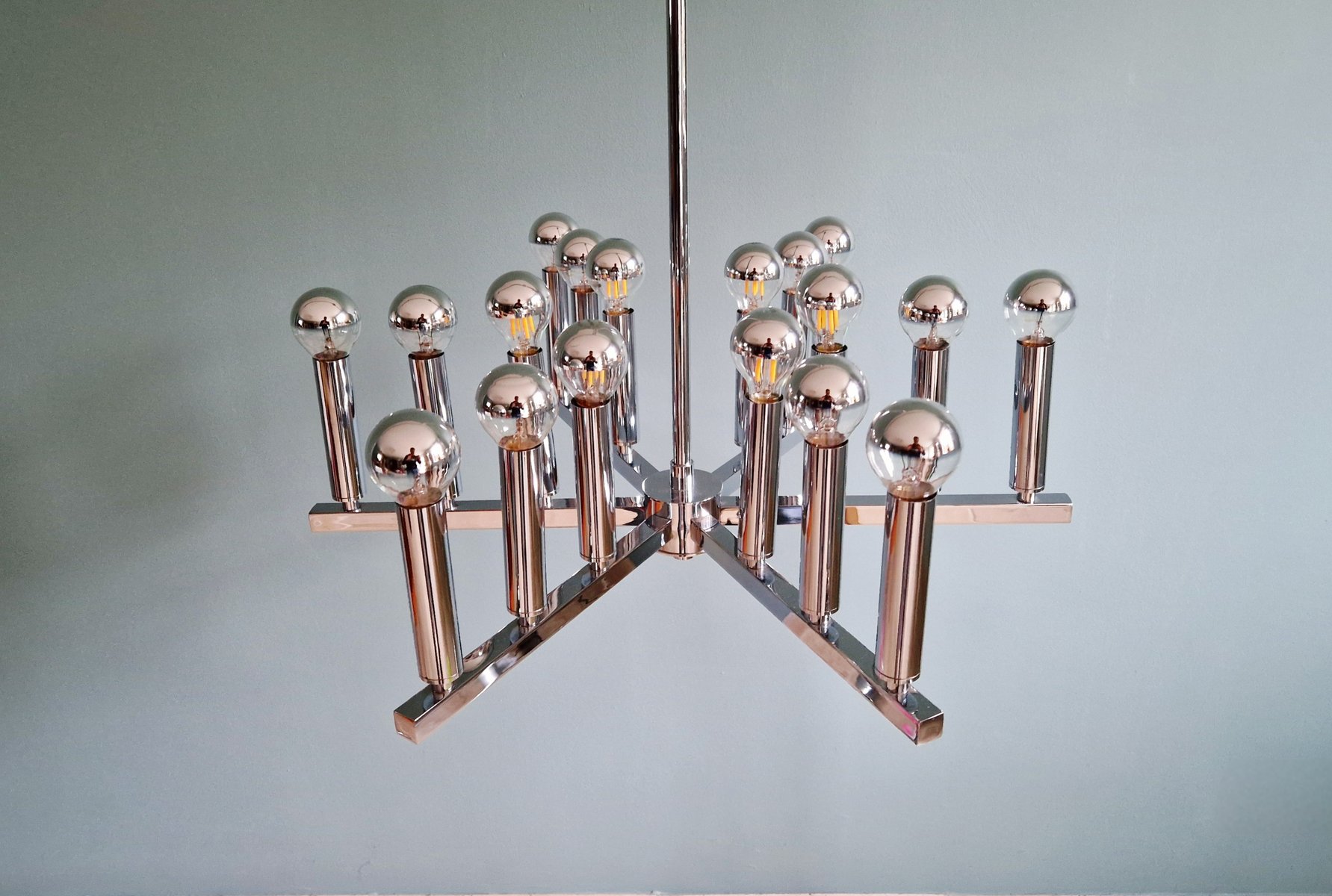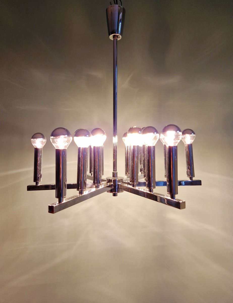 Lámpara de araña era espacial de metal cromado, años 70