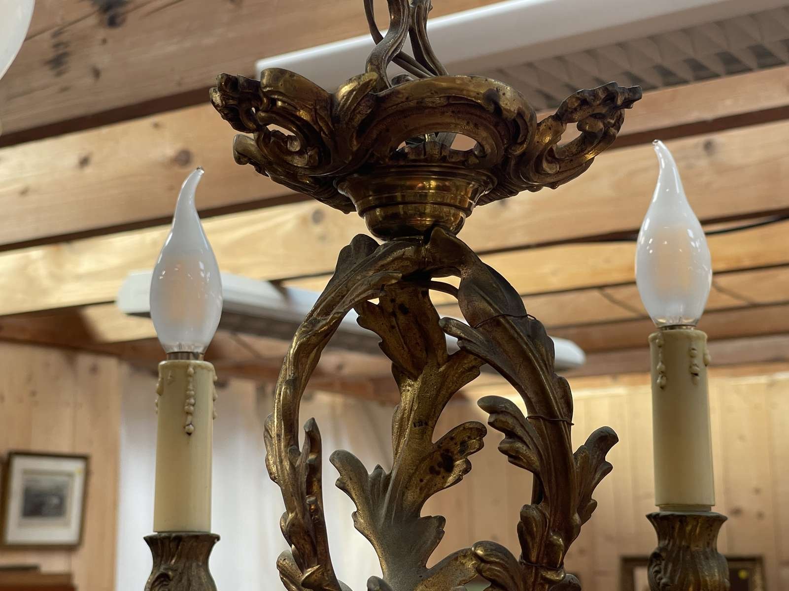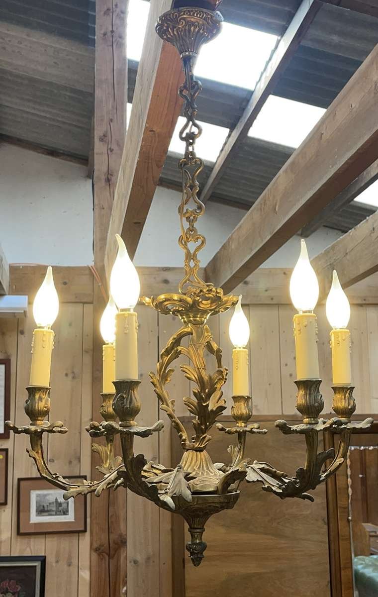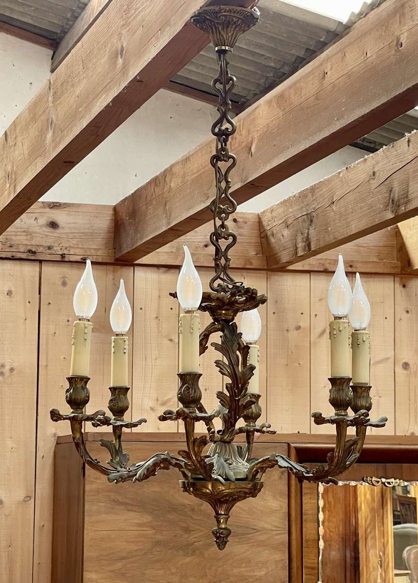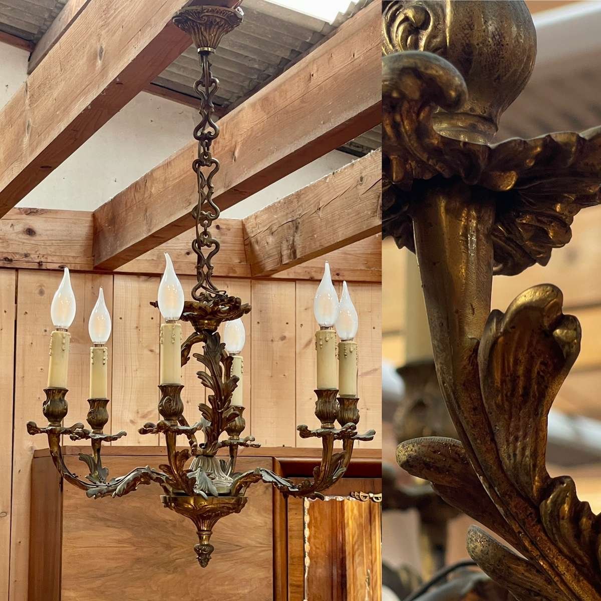 Lámpara de araña estilo Luis XV de bronce con seis luces, años 50