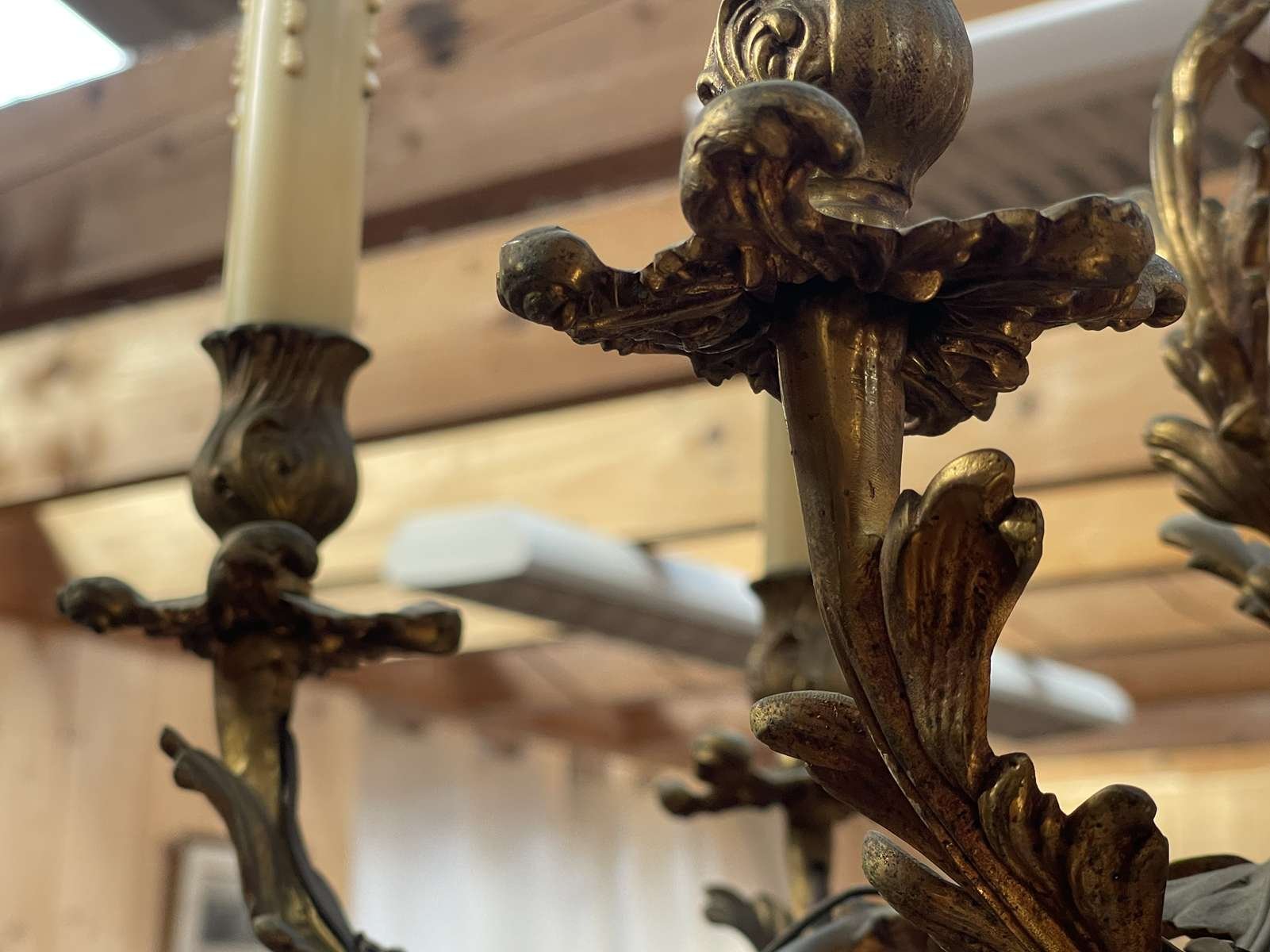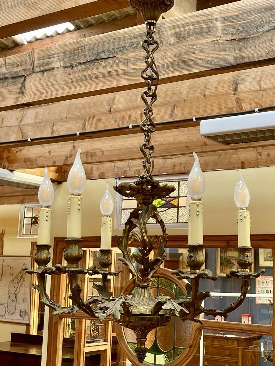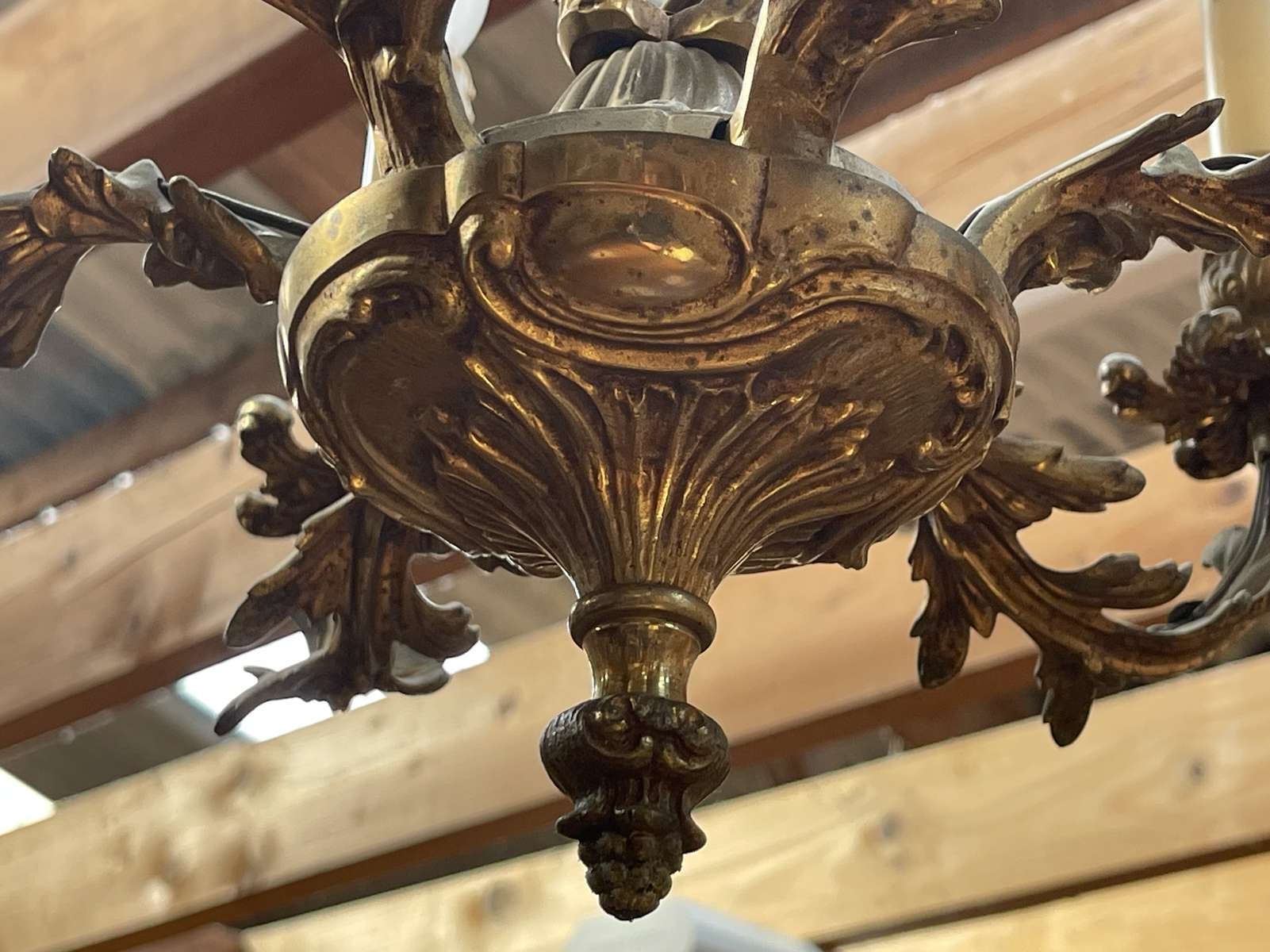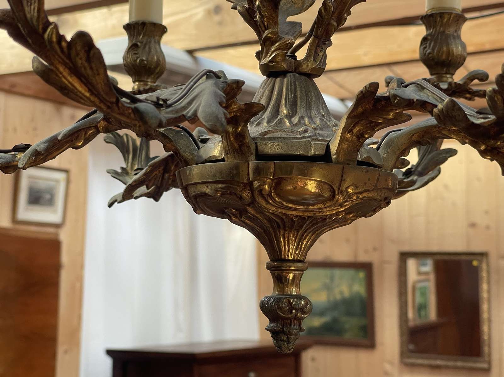 Lámpara de araña estilo Luis XV de bronce con seis luces, años 50