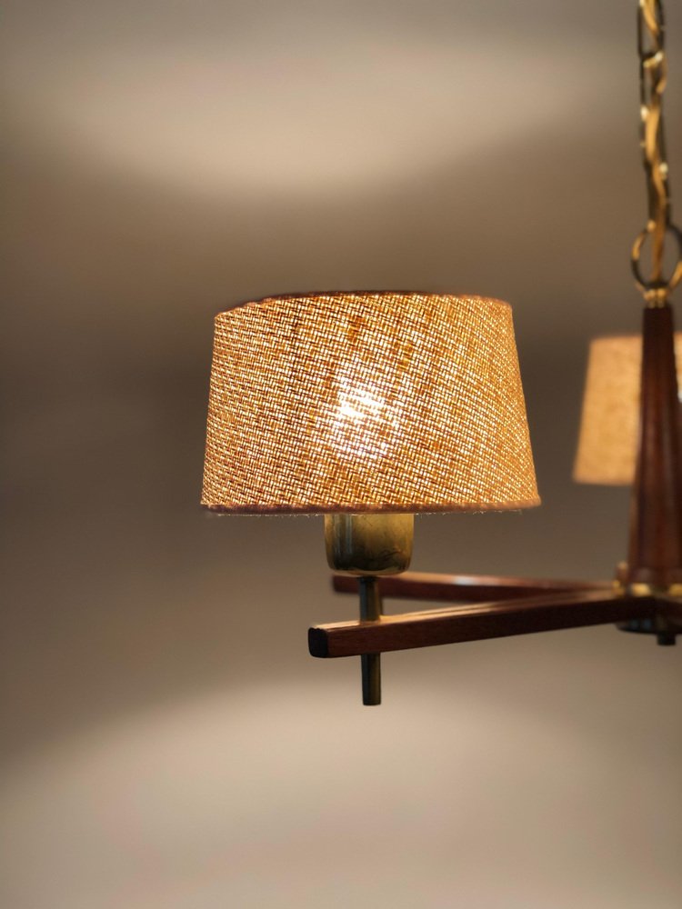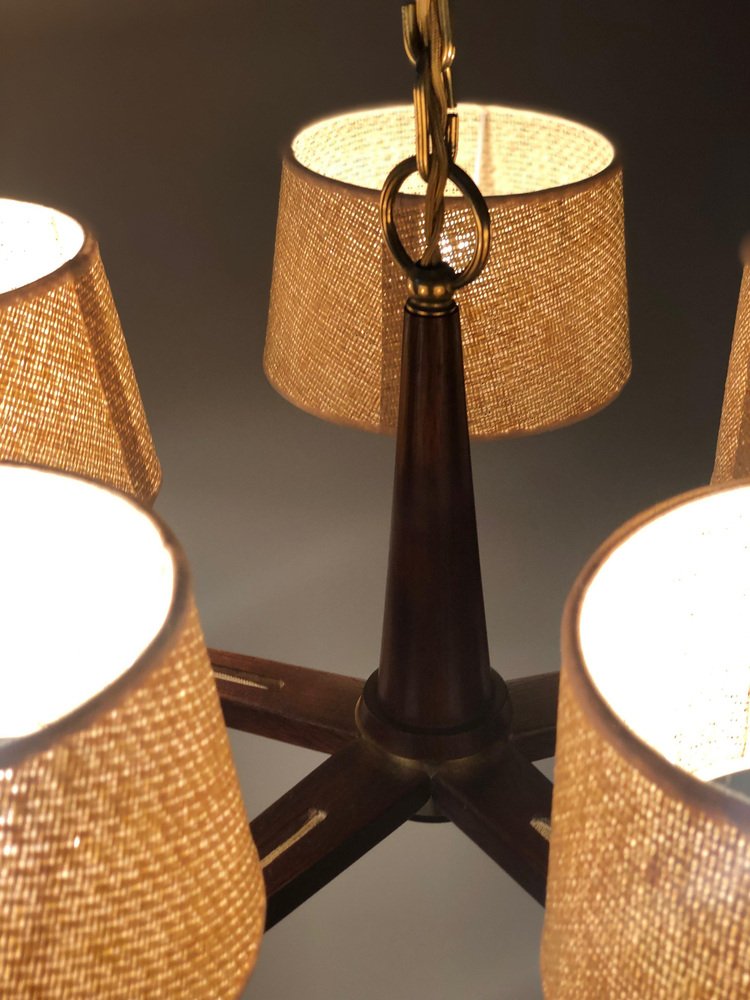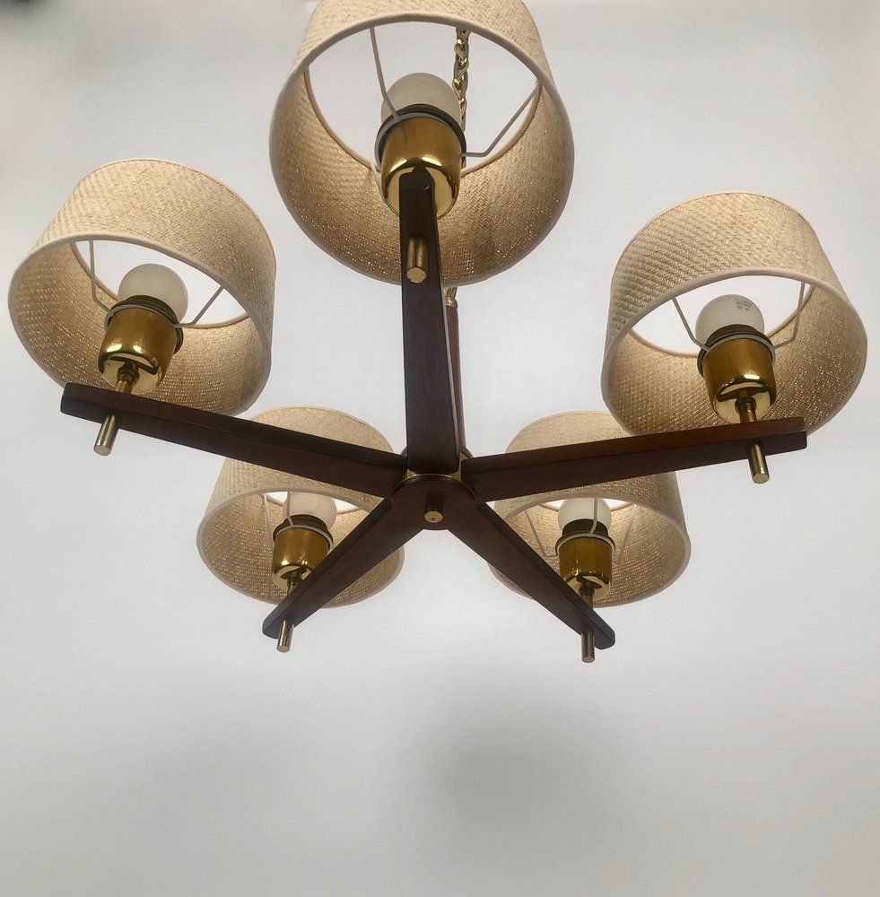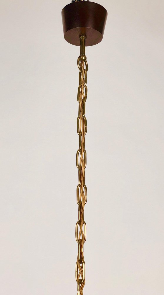 Lámpara de araña de latón con pantallas de fibra de vidrio de Rupert Nikoll, Austria, 1962
