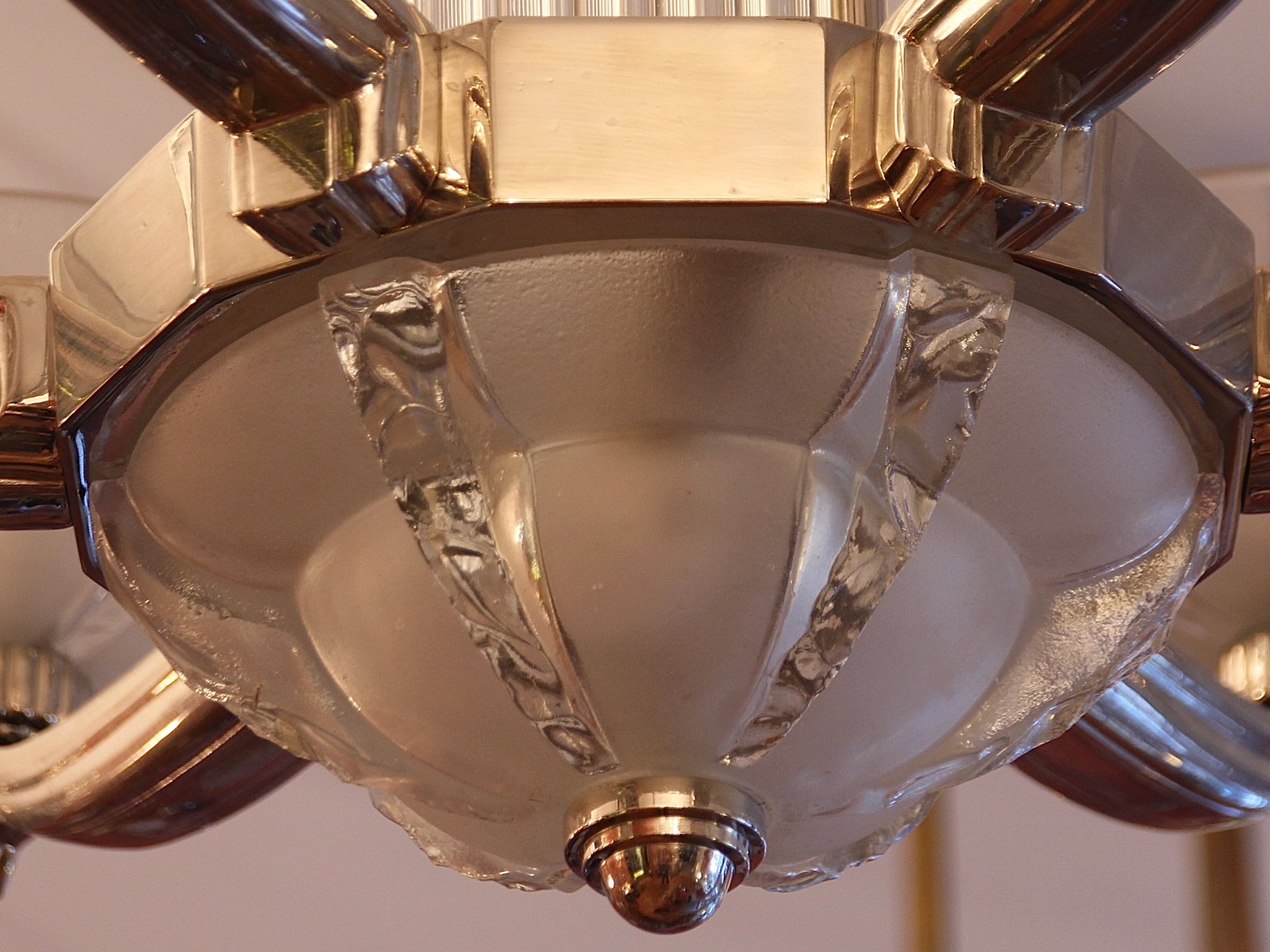 Lámpara de araña francesa de seis brazos de Petitot para Atelier Petitot, años 30